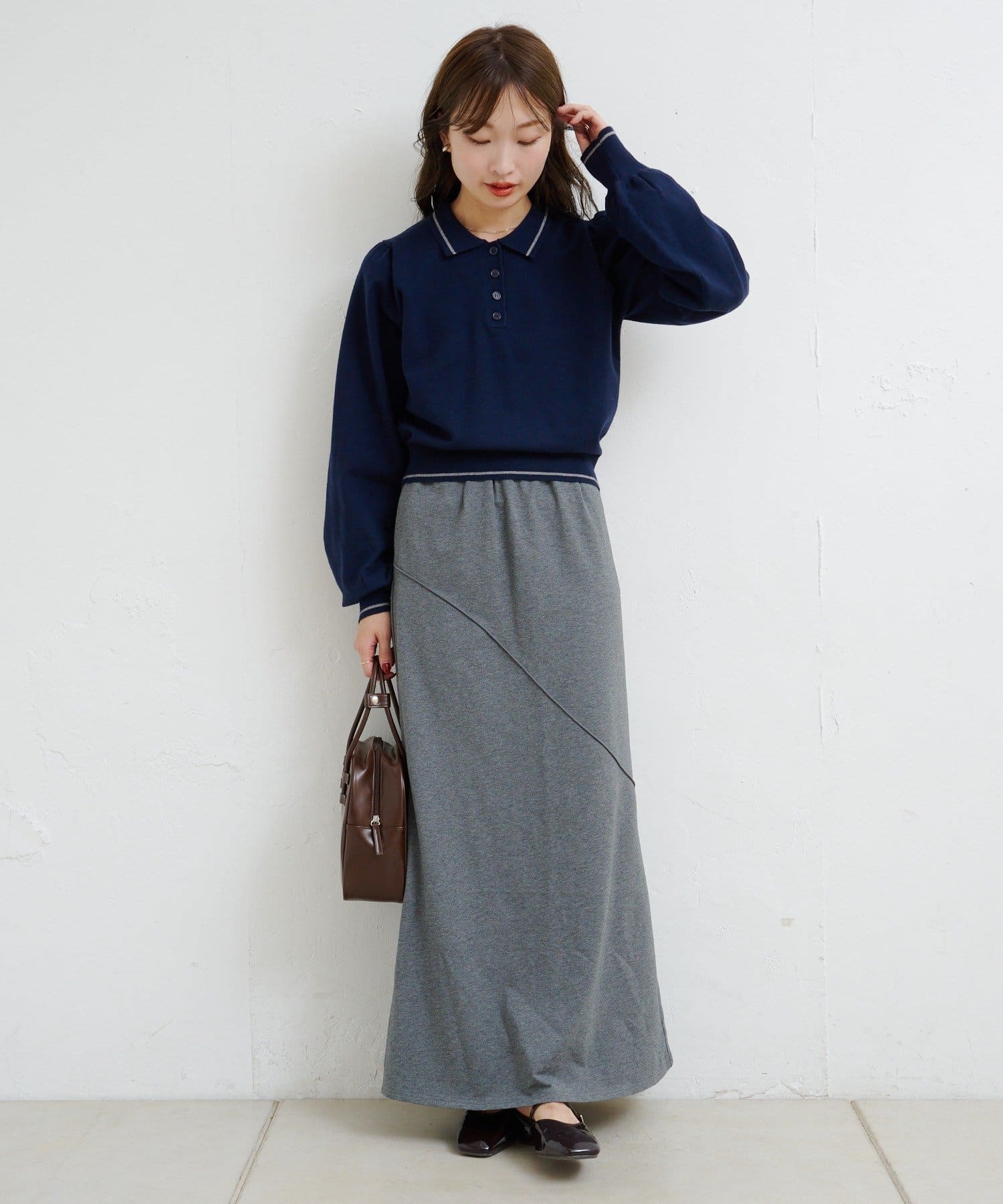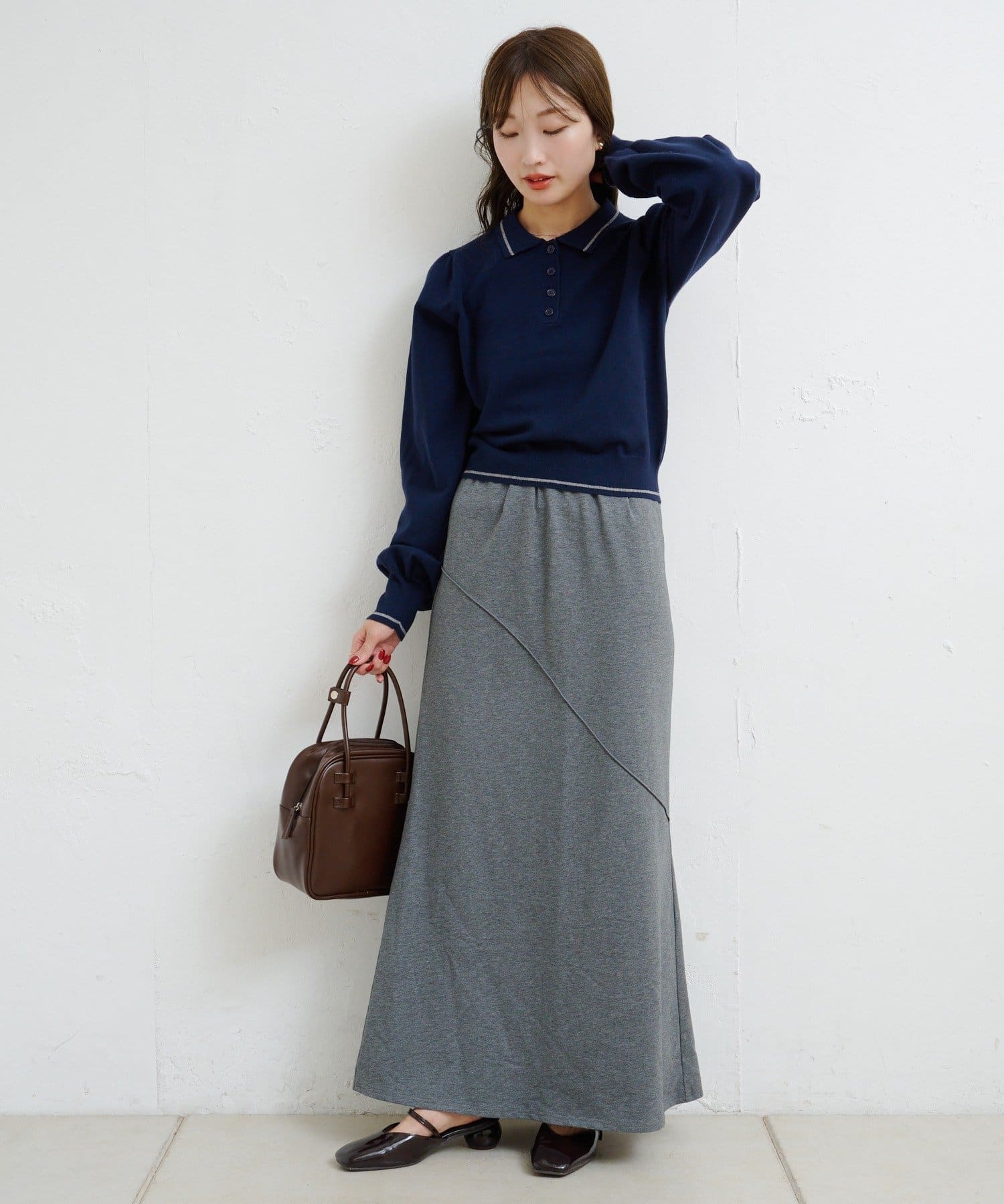 ほんのりゆとりのあるシルエットとリブ切替が、女性らしいメリハリを演出します。