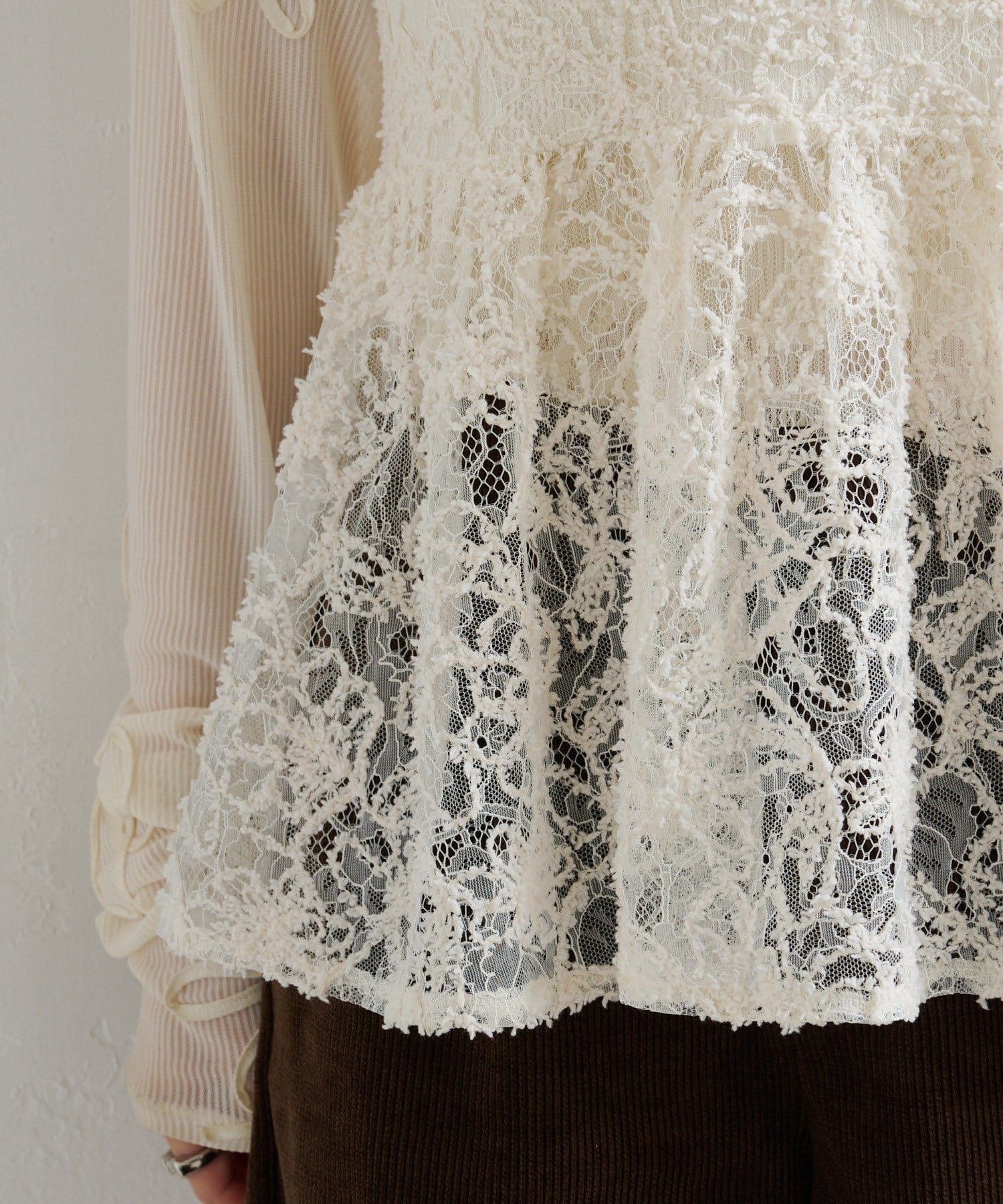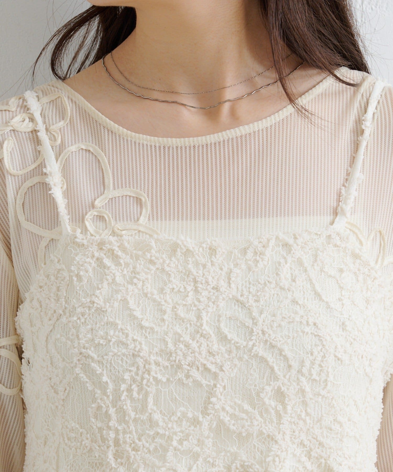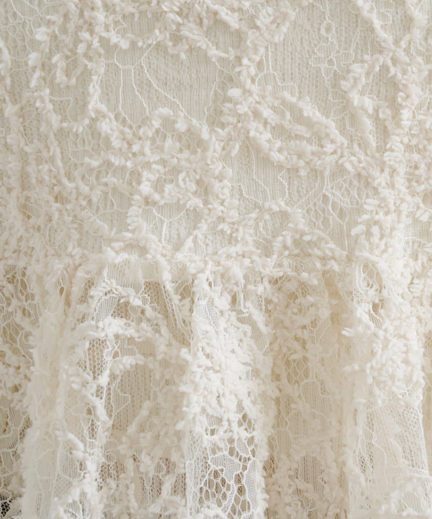 ふんわりとした毛足のあるフェザーライクレース素材。