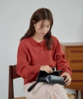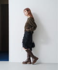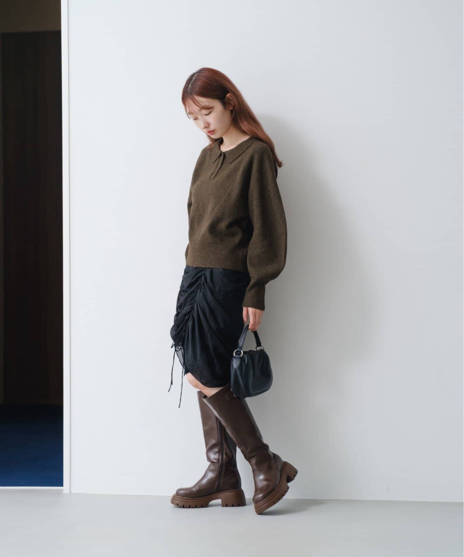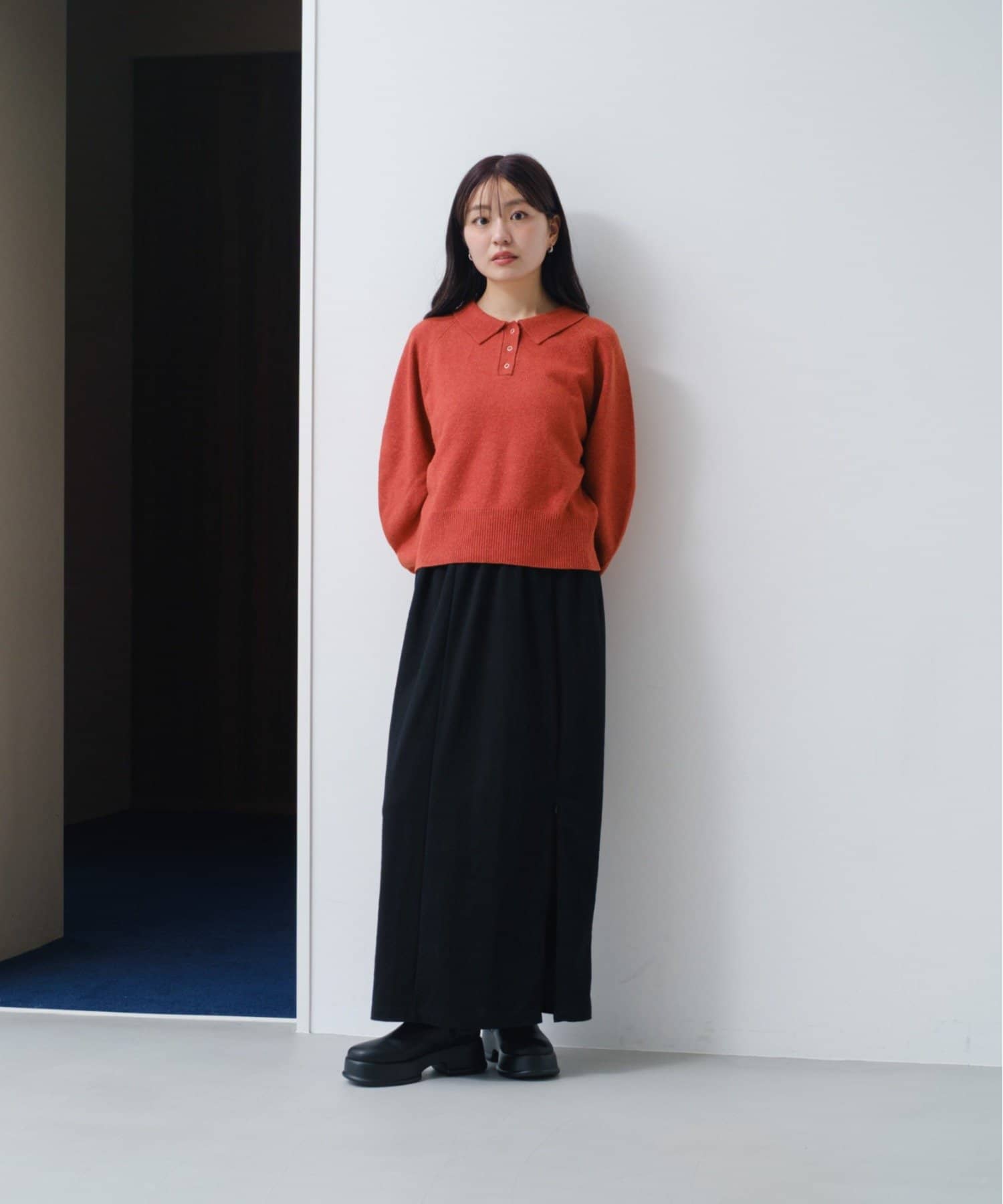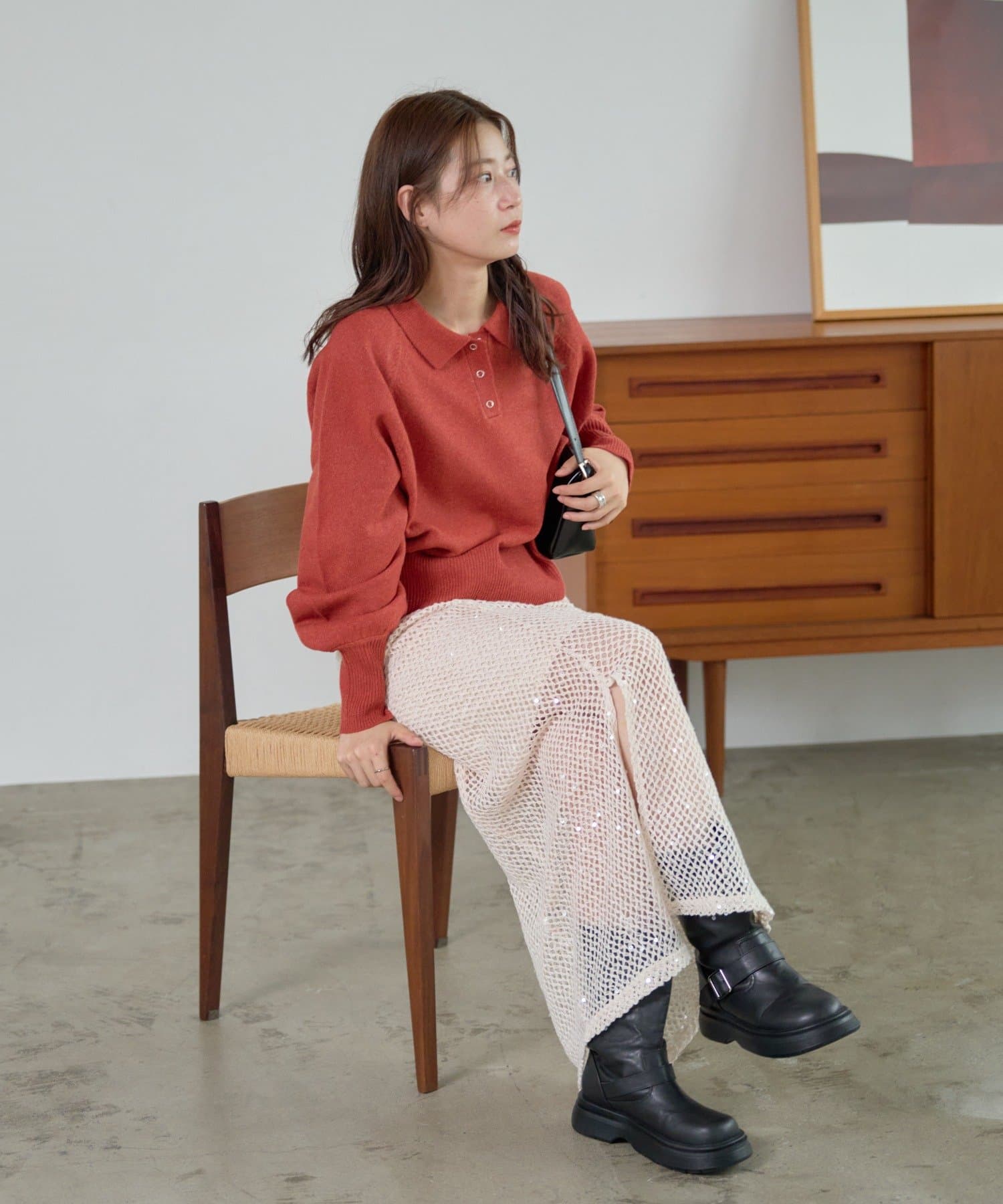 ボリューム感のある袖が女性らしい印象のカーブスリーブポロニット。