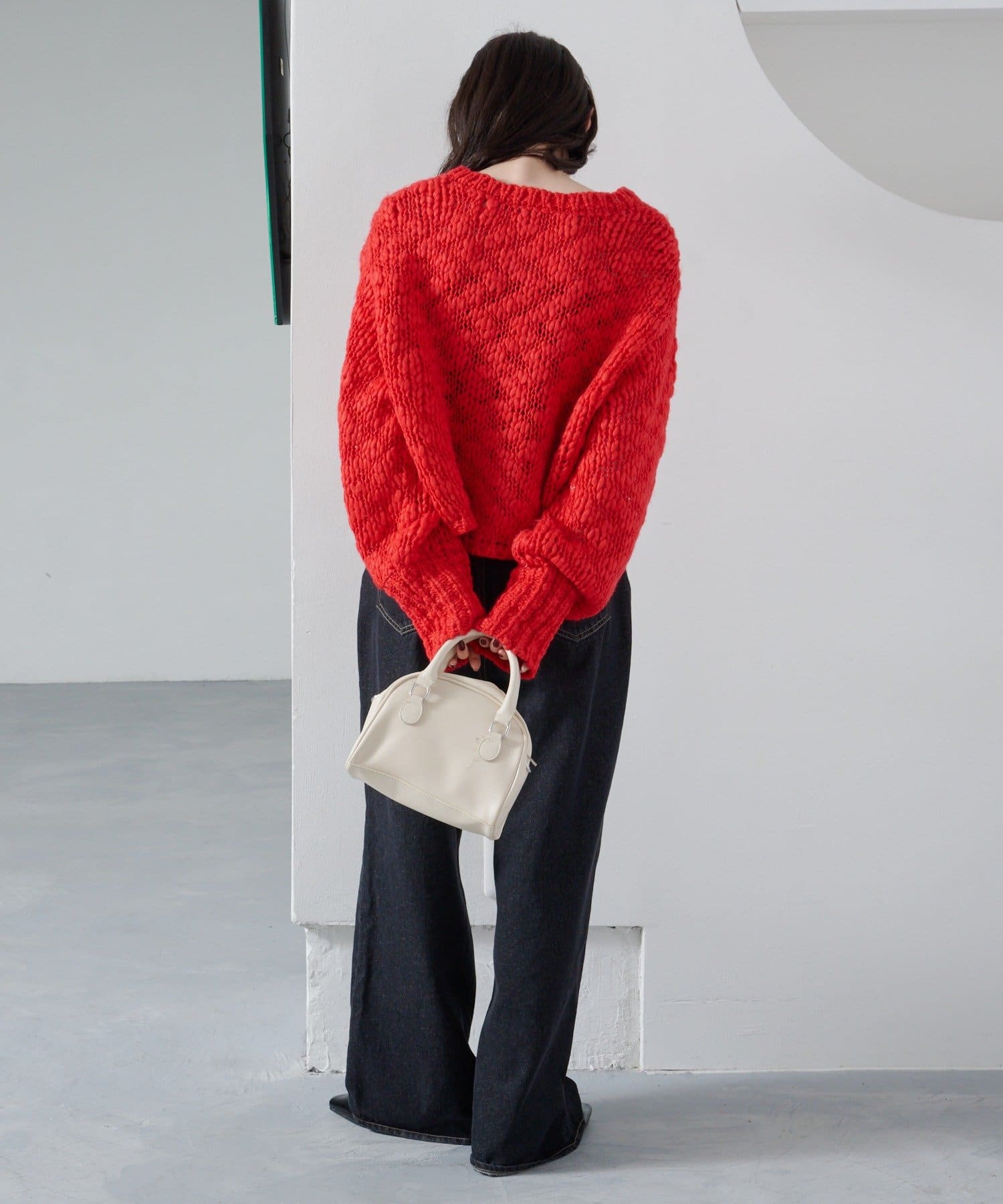 太さにムラのあるスラブ糸を使用し、ふんわりと柔らかく仕上げたざっくりニット。