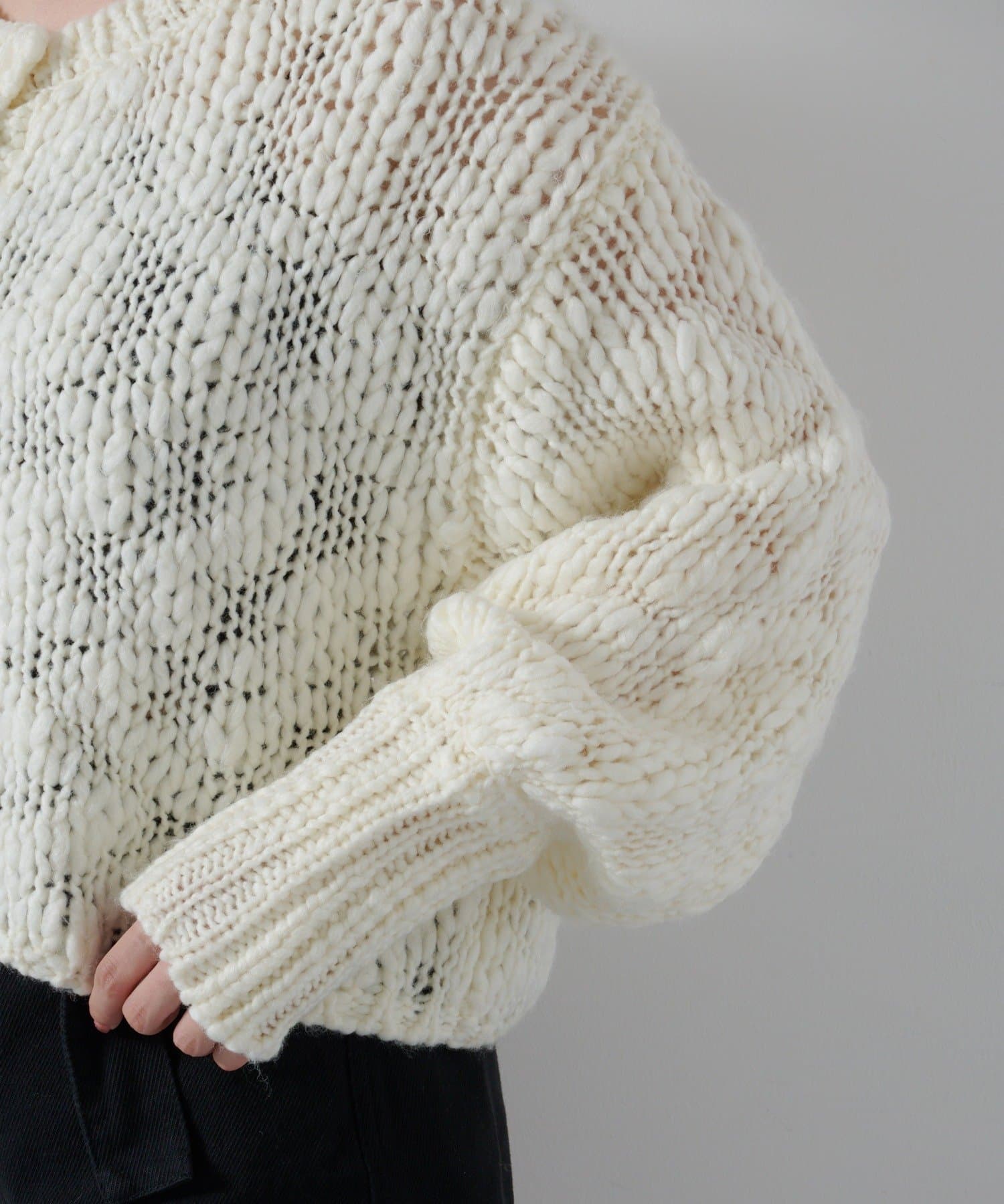 ボリュームのあるシルエットと手編みのような風合いが、こなれ感たっぷりの一枚。
