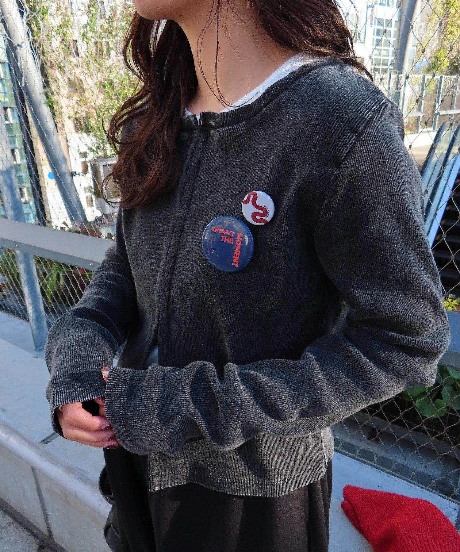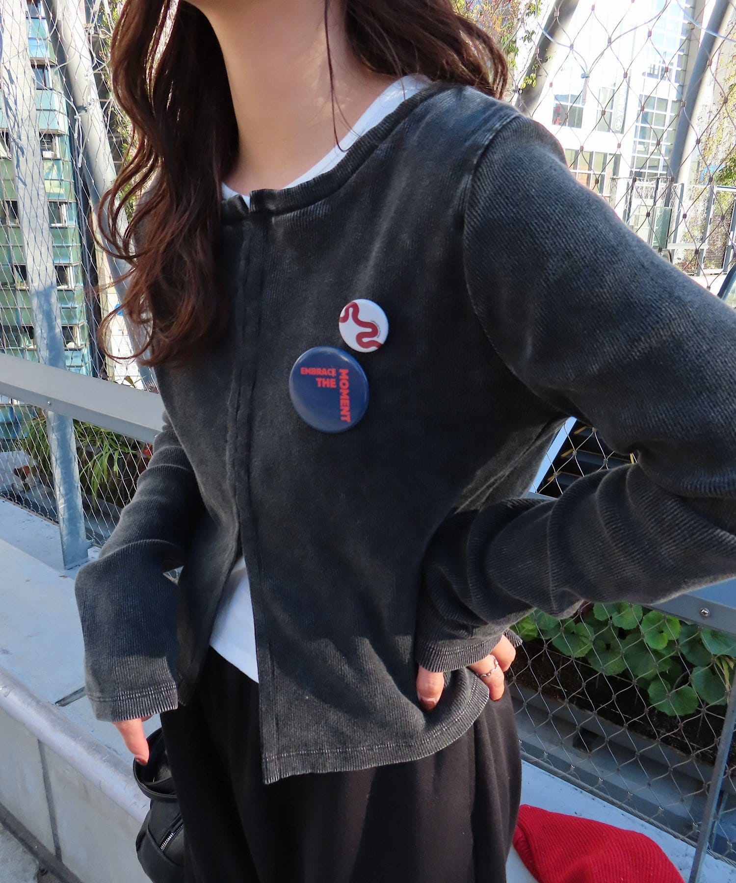 ホックを開けて羽織りとしても活躍。