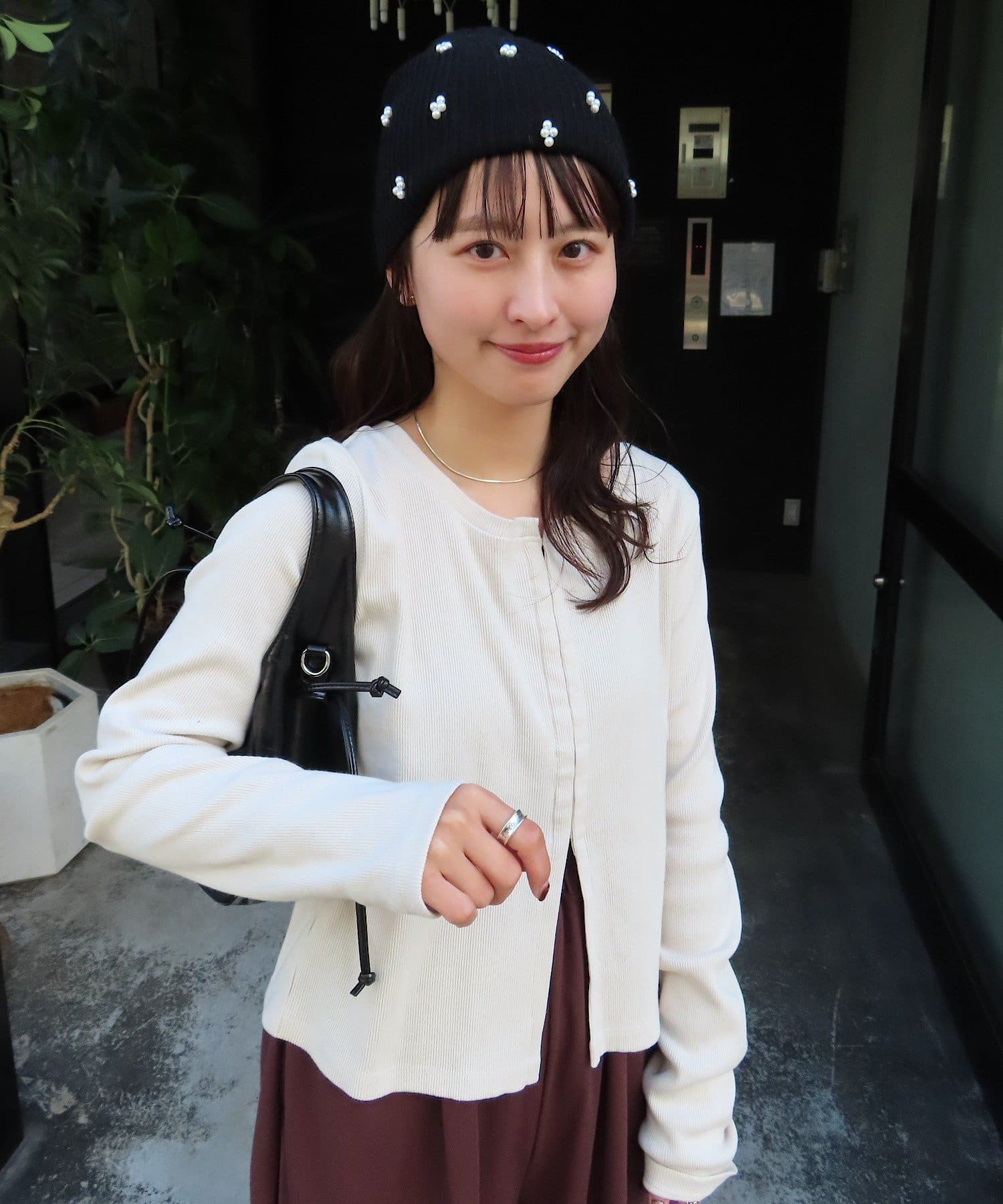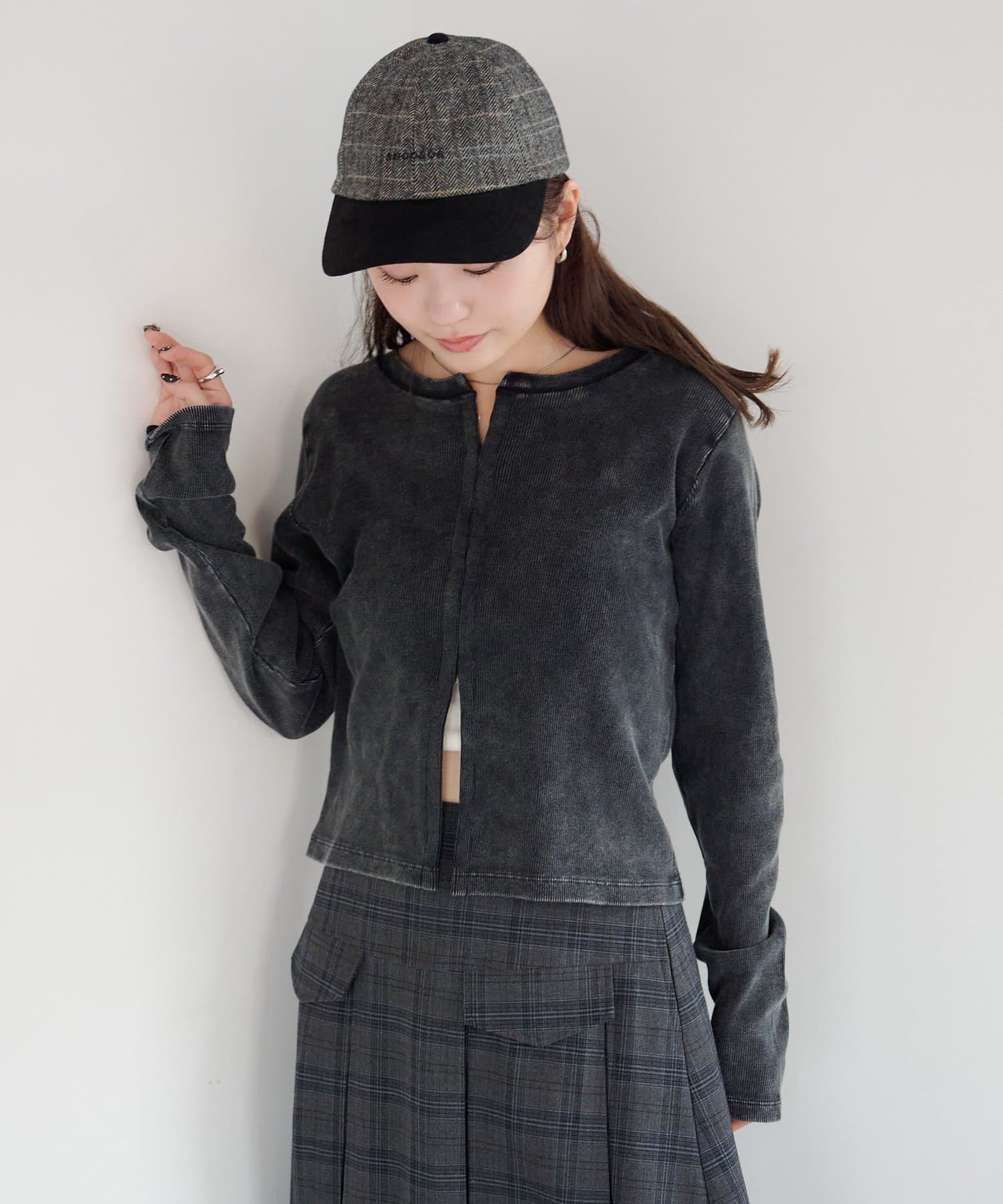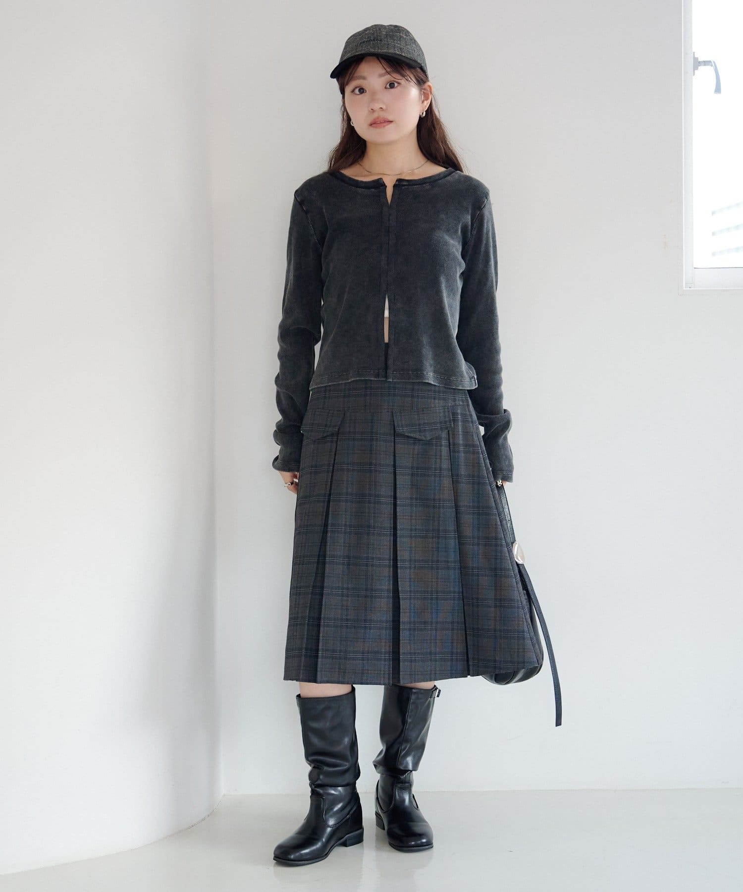 細かいリブ素材と程よくフィットするシルエットが女性らしい印象を演出。