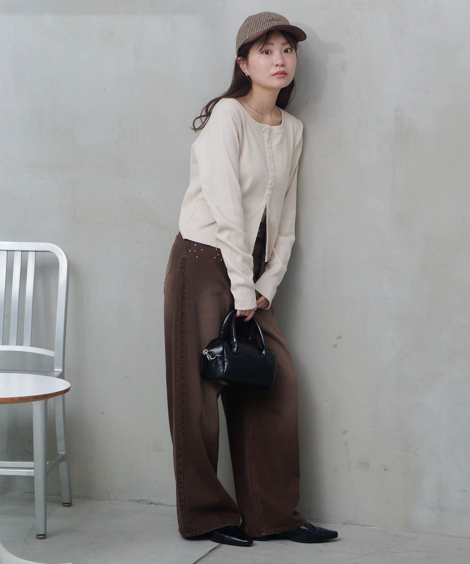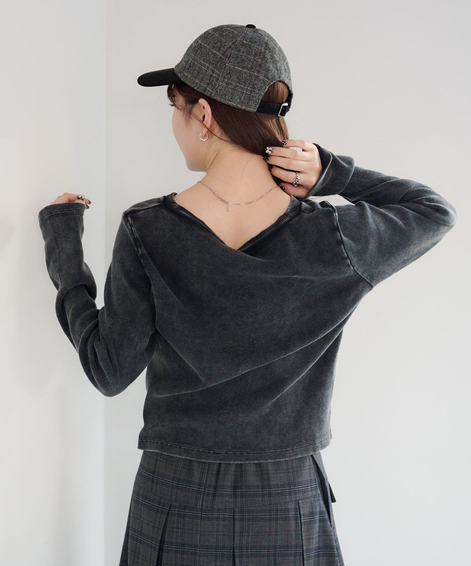 さりげないホックデザインで抜け感をプラス
