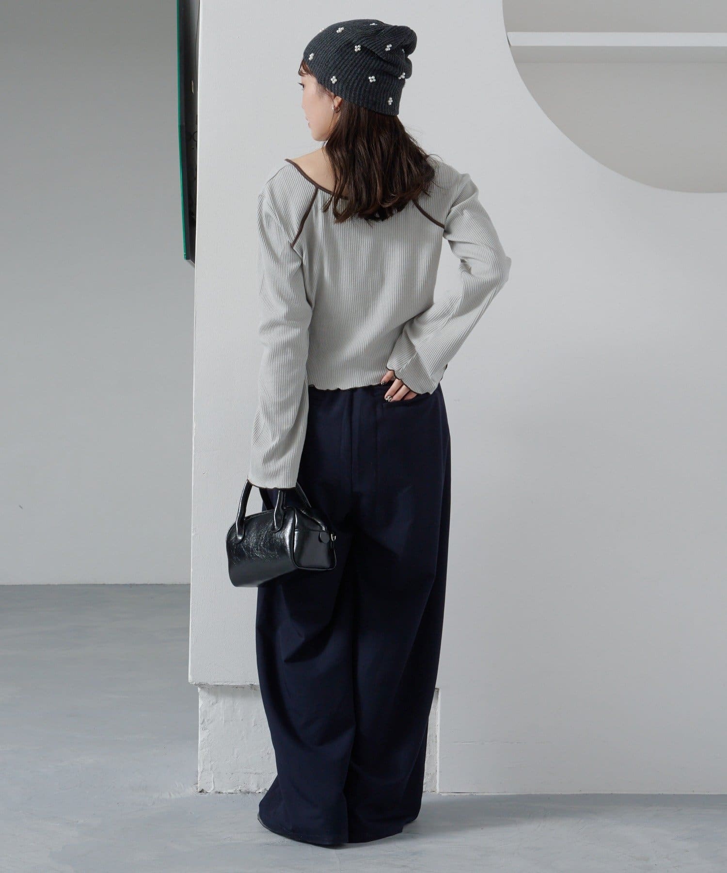 配色パイピングが目を惹くアメスリデザインのプルオーバー。