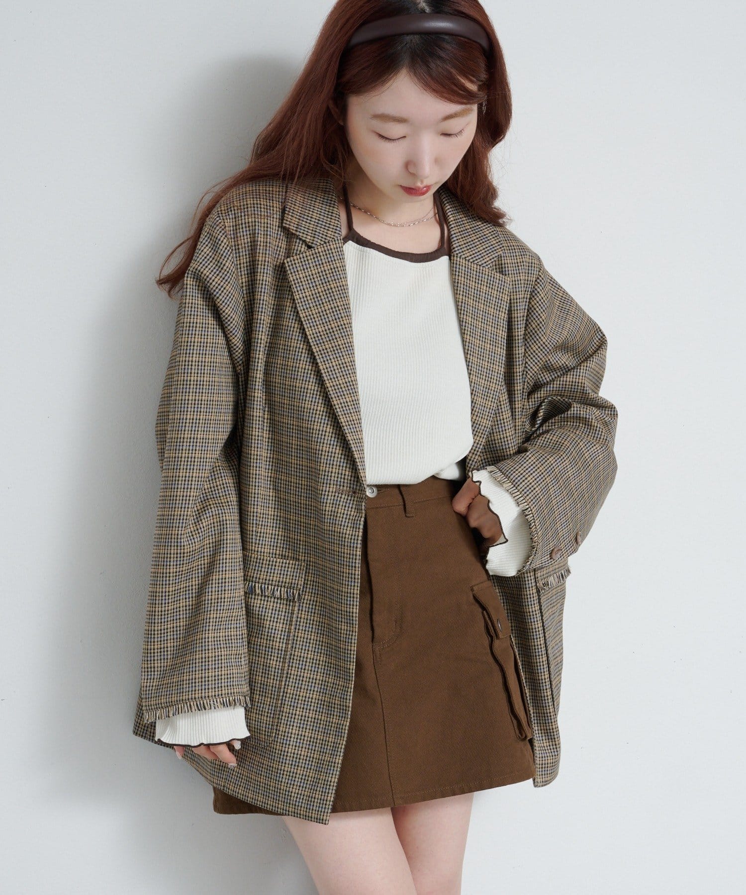 肩まわりのラインをきれいに見せてくれるシルエットで、一枚着はもちろんジレ素材。