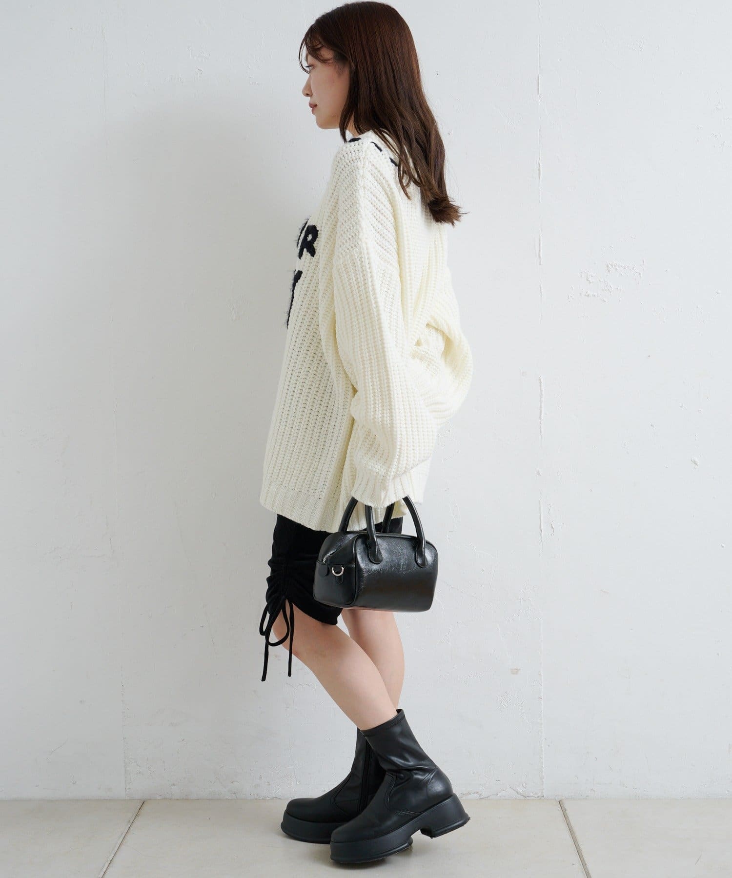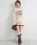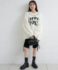 大きめシルエットなので、ミニ丈ボトムが今年らしいスタイリングに。