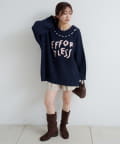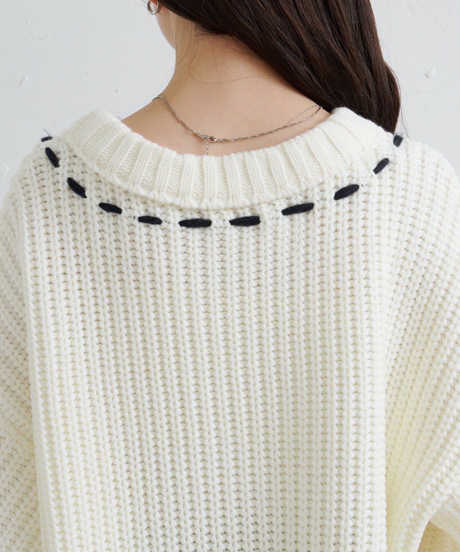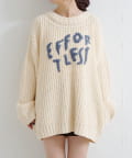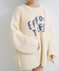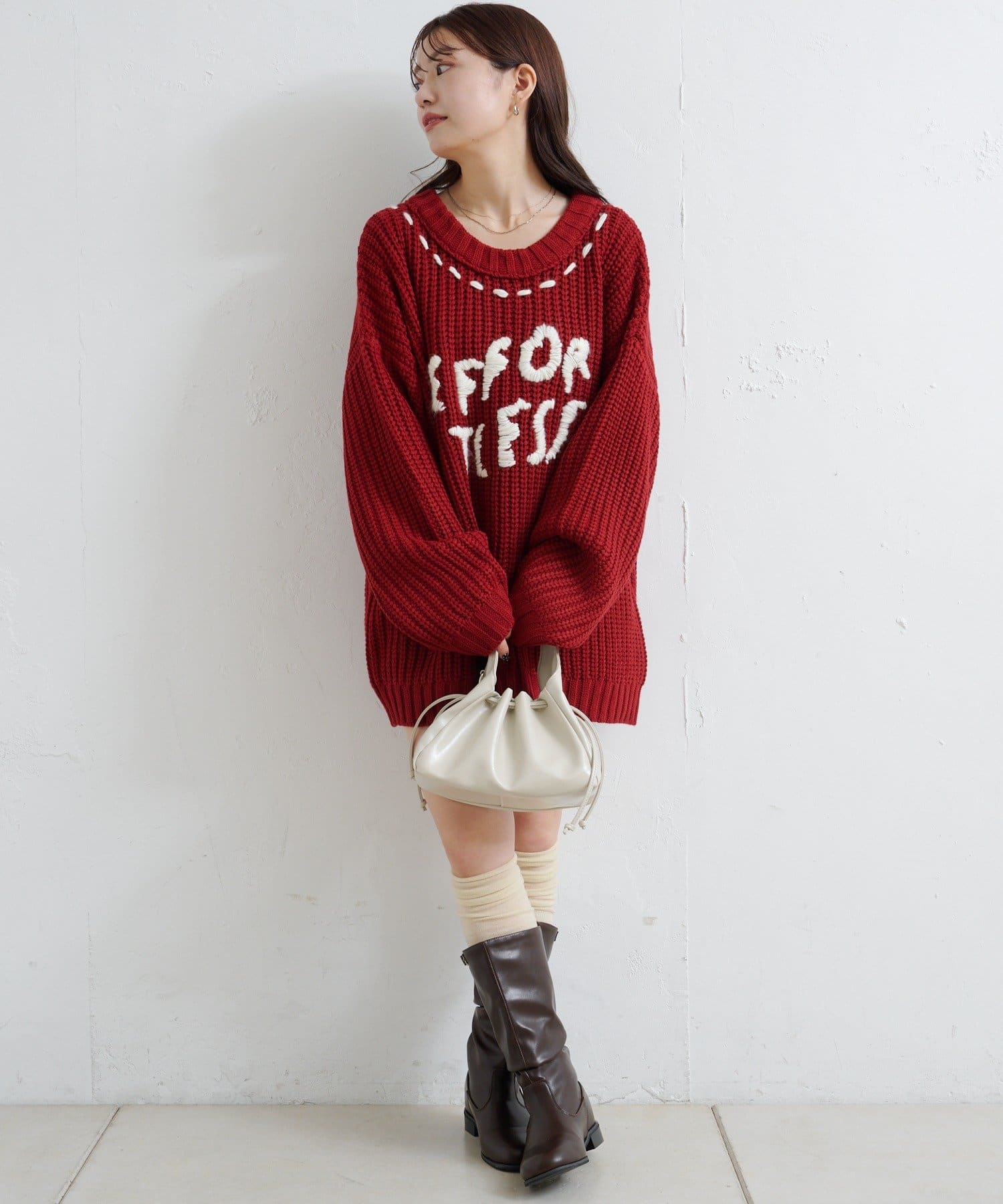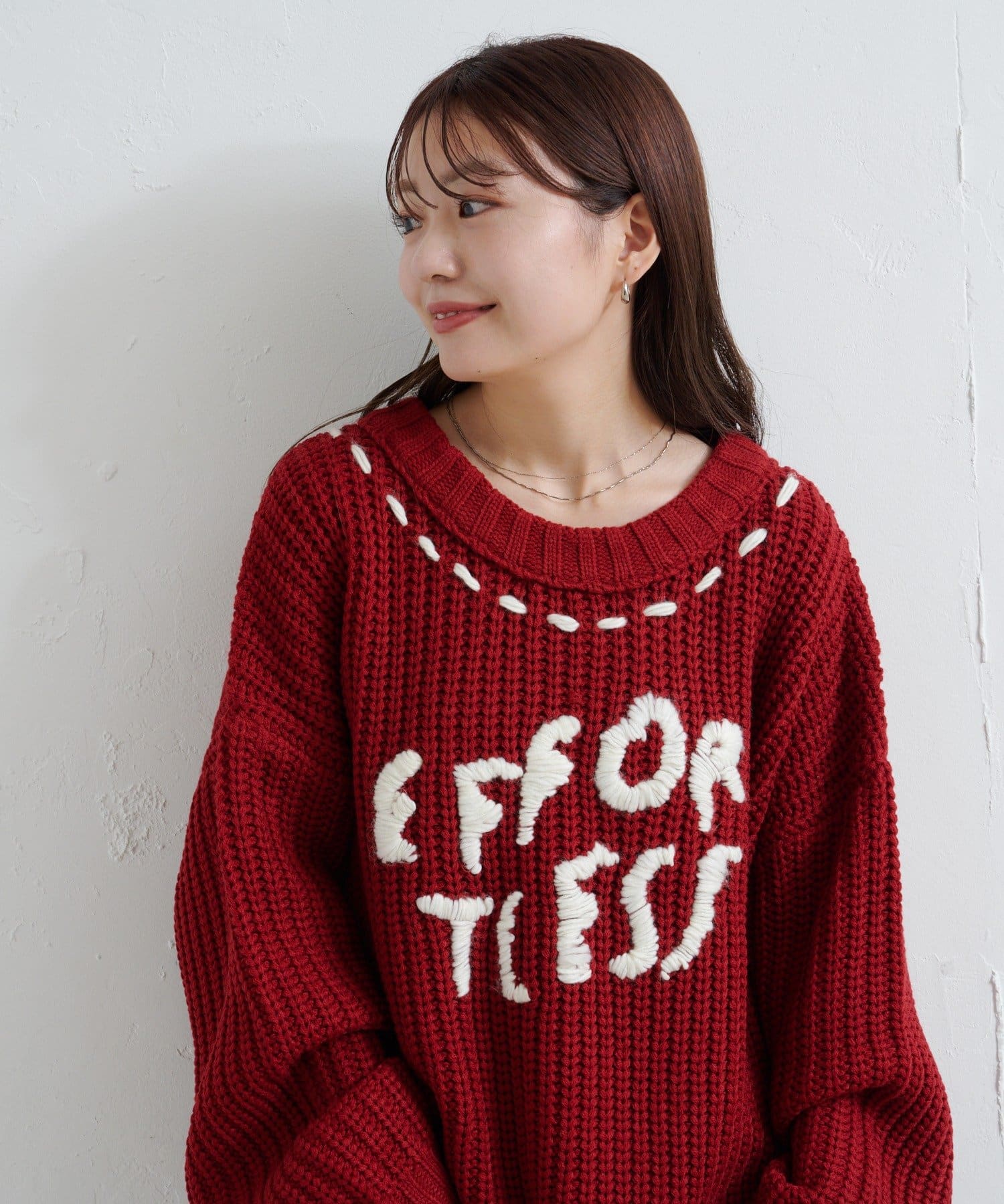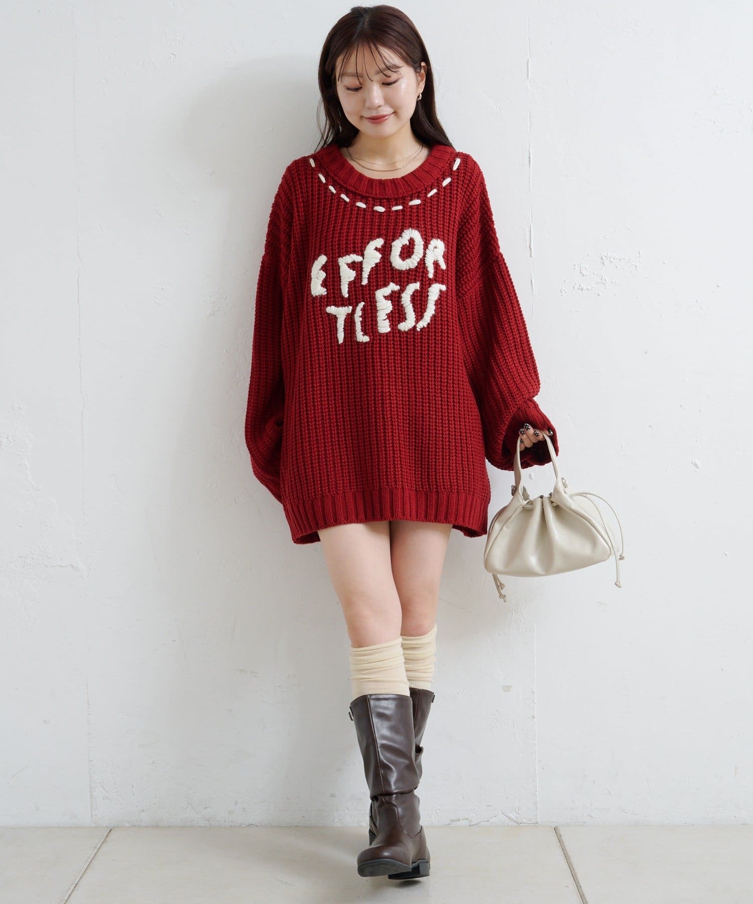 ゆったりとしたシルエットとざっくり編みの柔らかい素材感で、カジュアルながらもこなれた印象に。