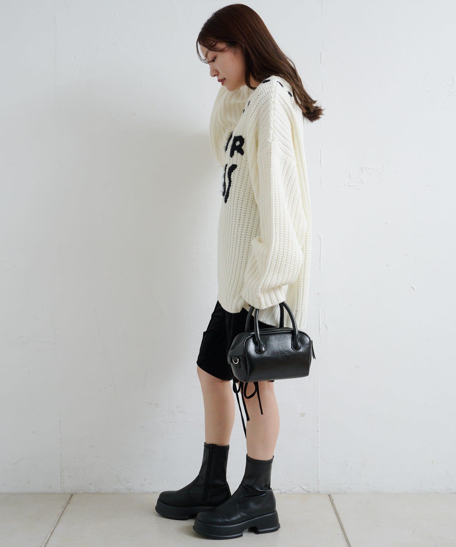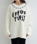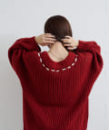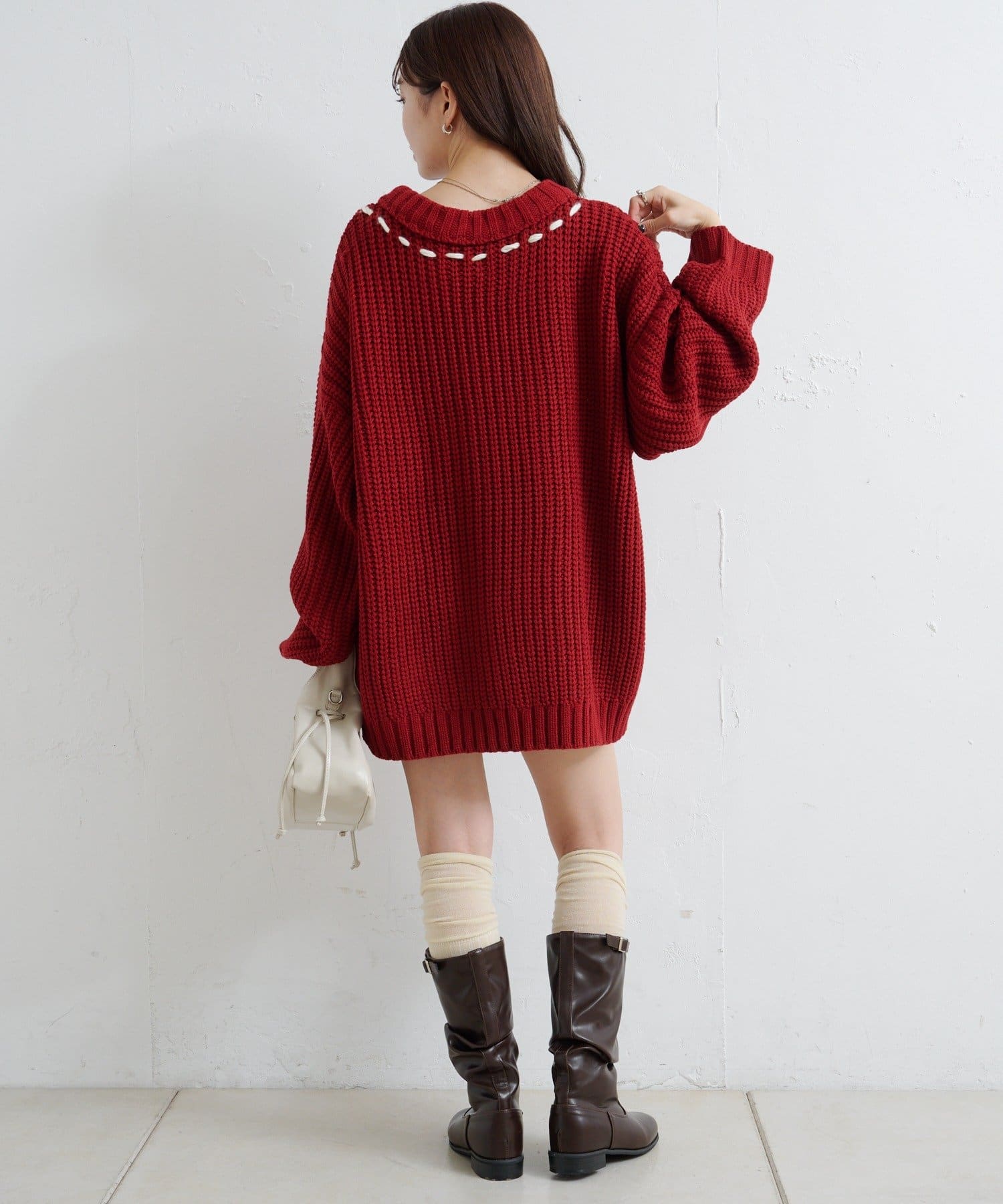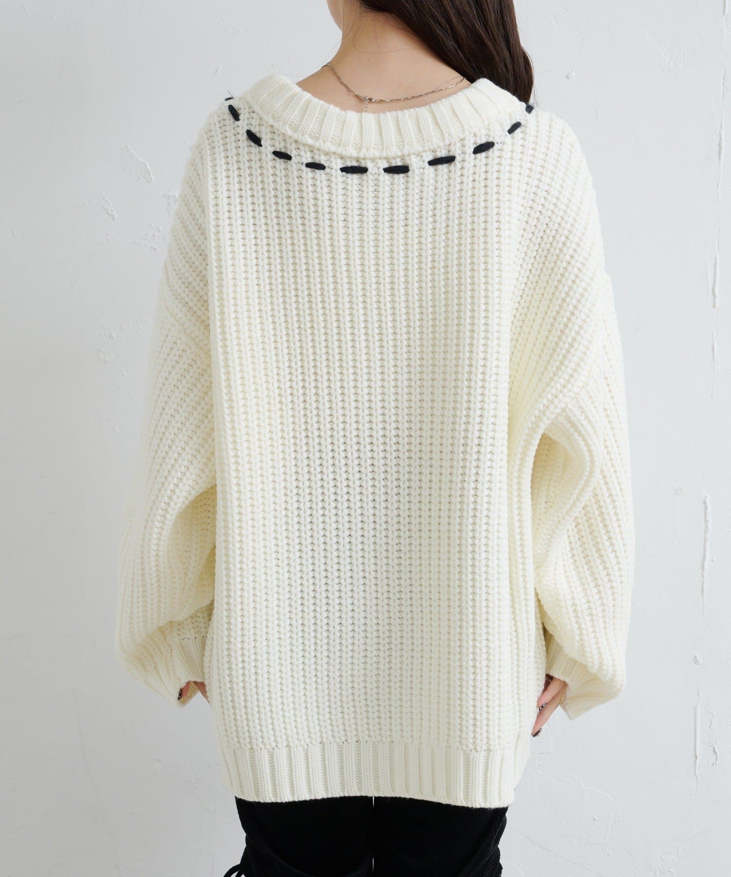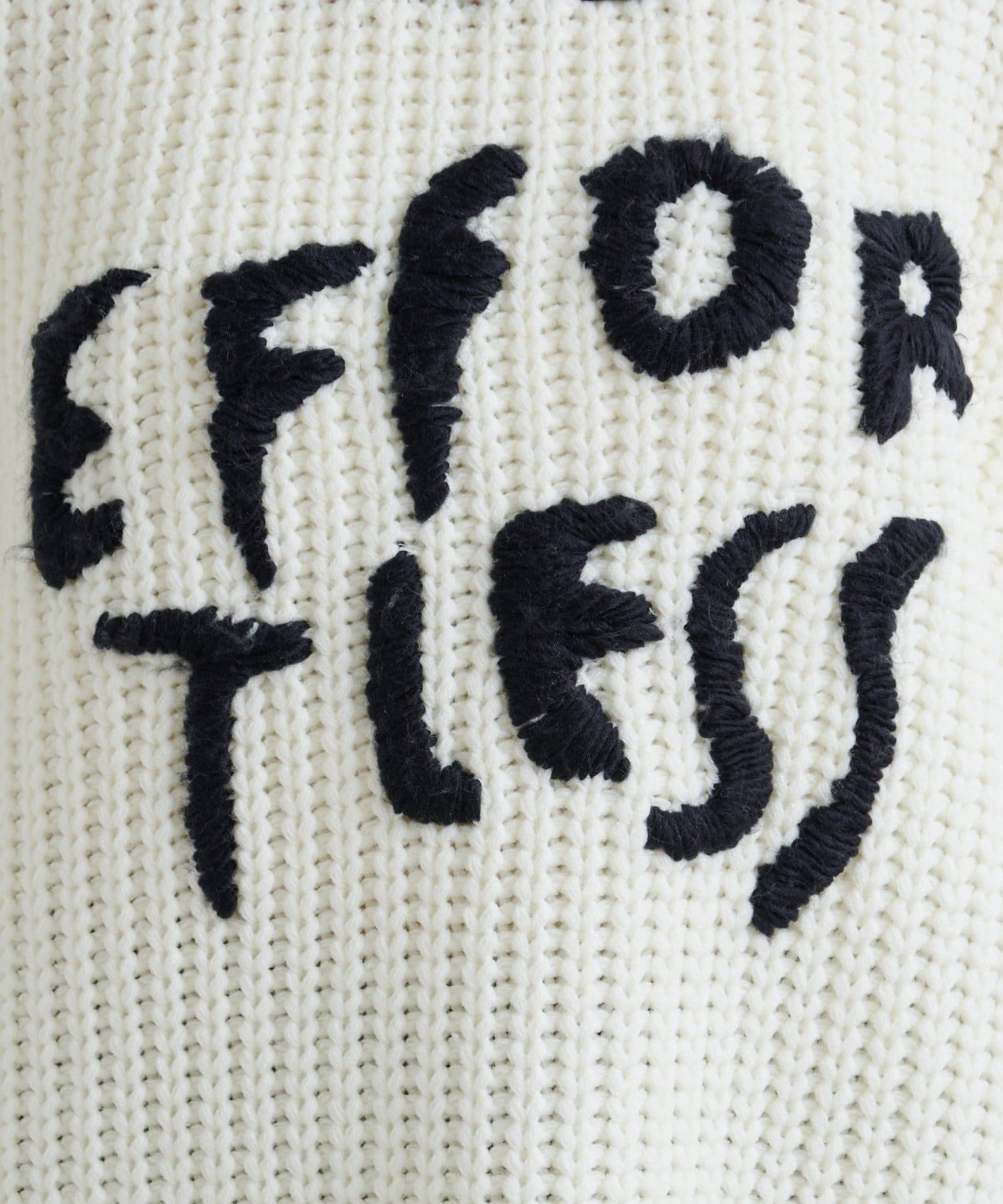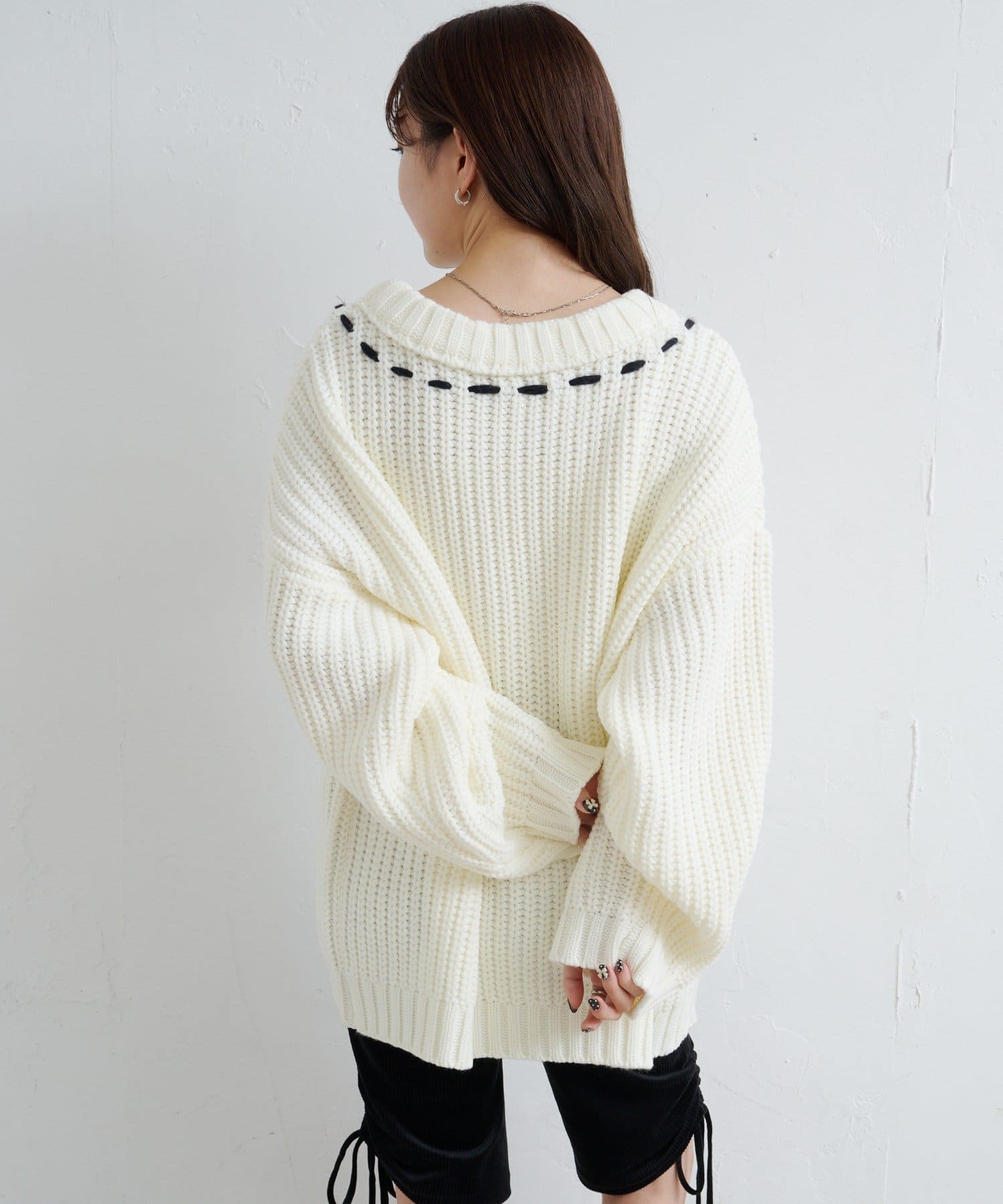 ゆったりとしたシルエットとざっくり編みの柔らかい素材感で、カジュアルながらもこなれた印象に。