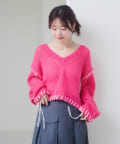 抜け感のあるVネックとクロップド丈で、ハイウエストボトムとも好相性。