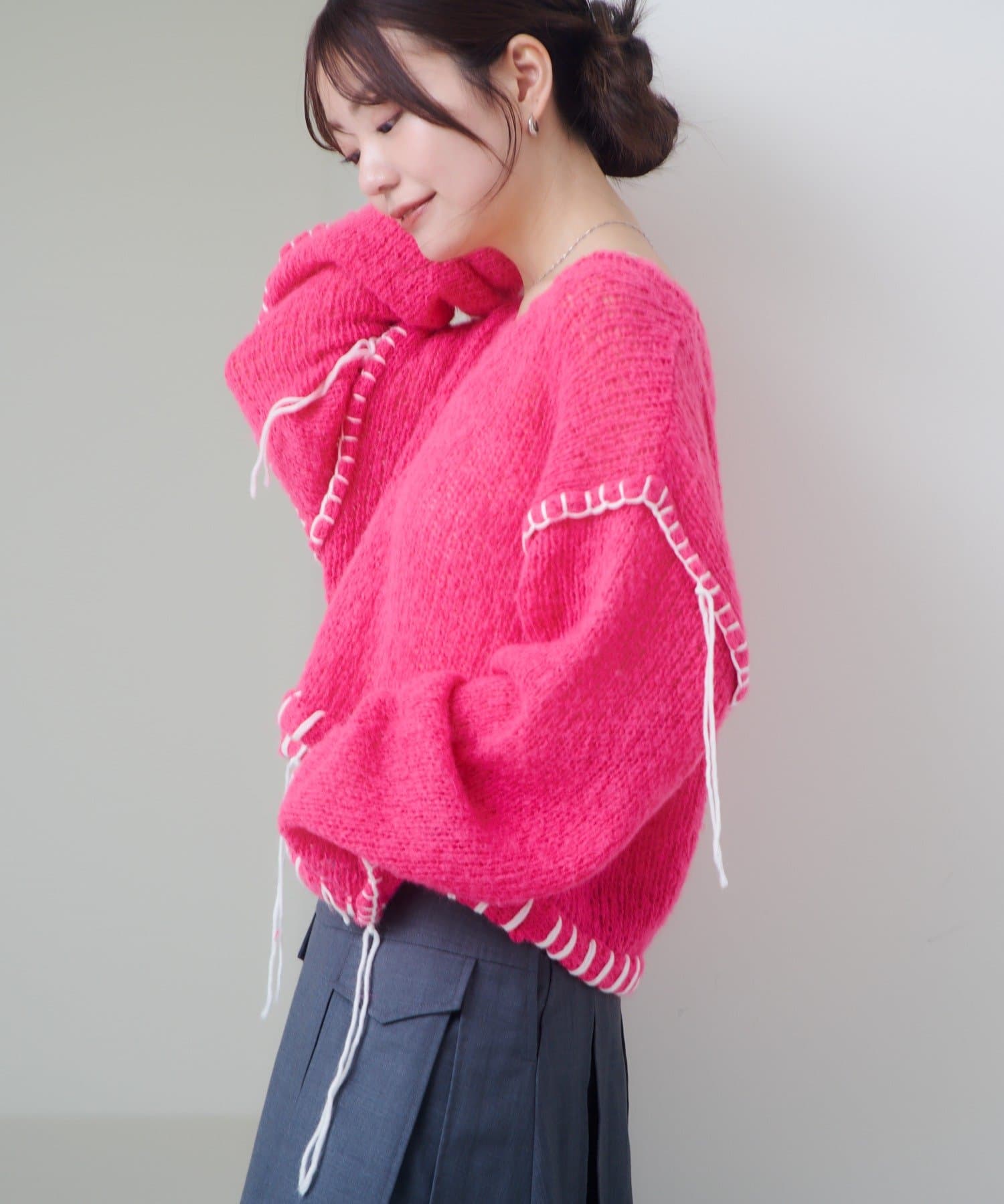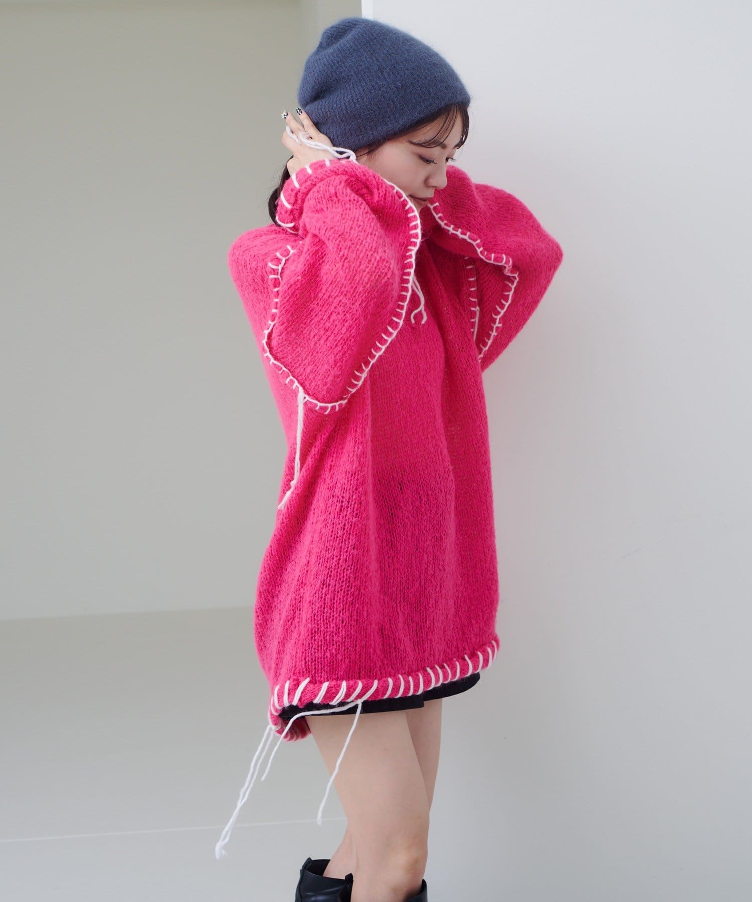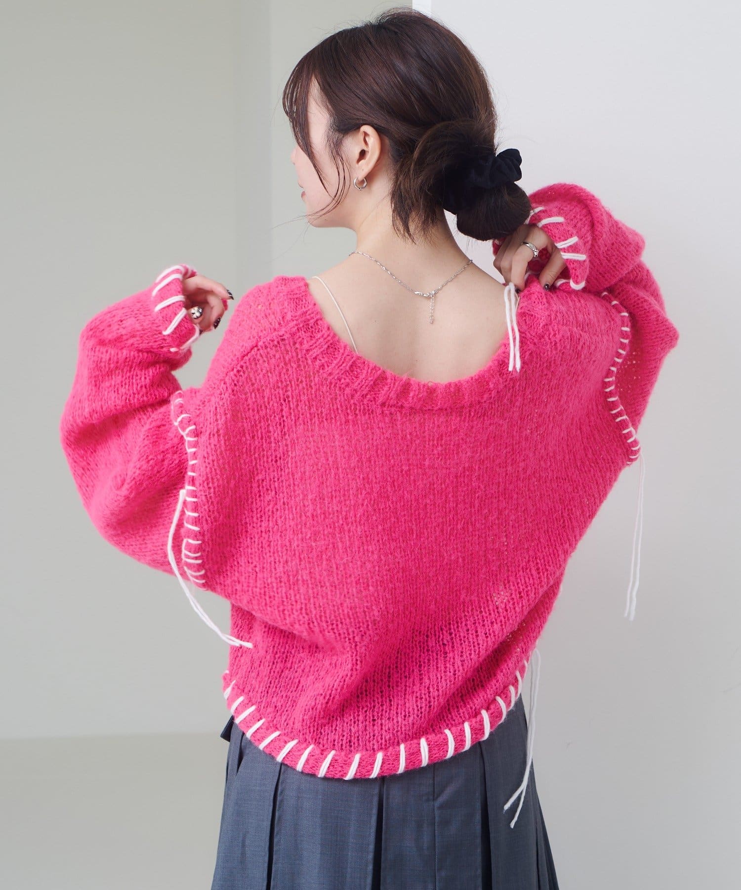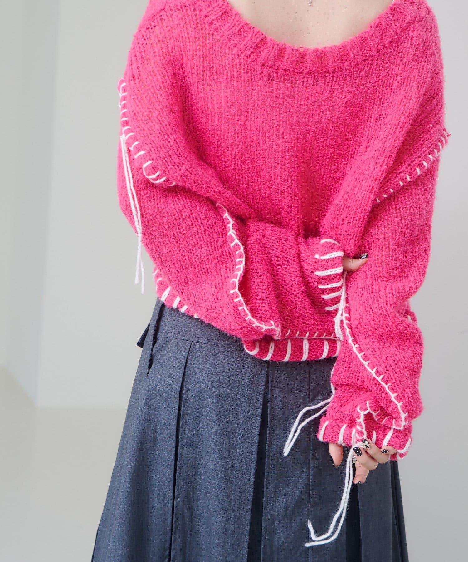 ステッチが主役のざっくりニット