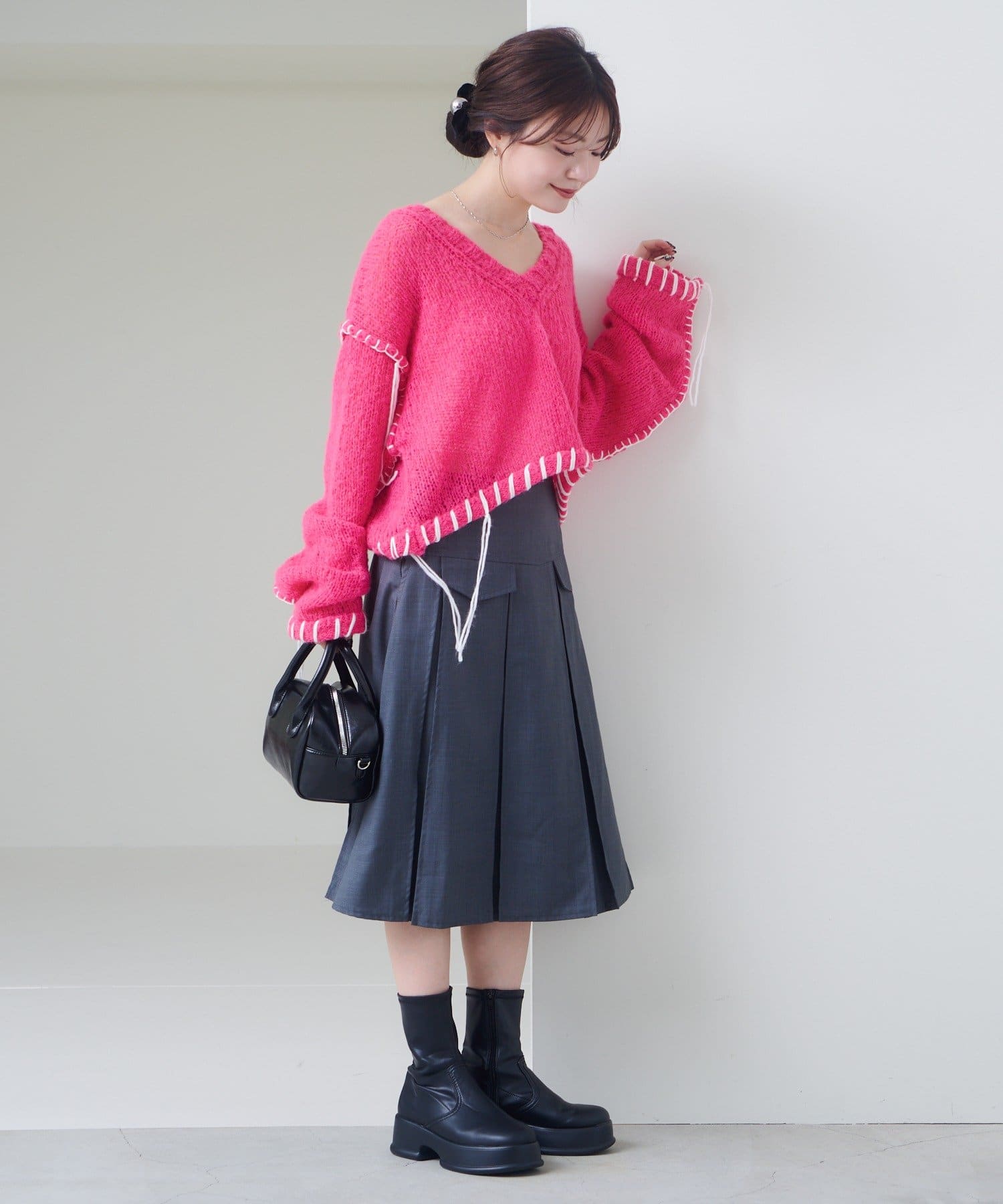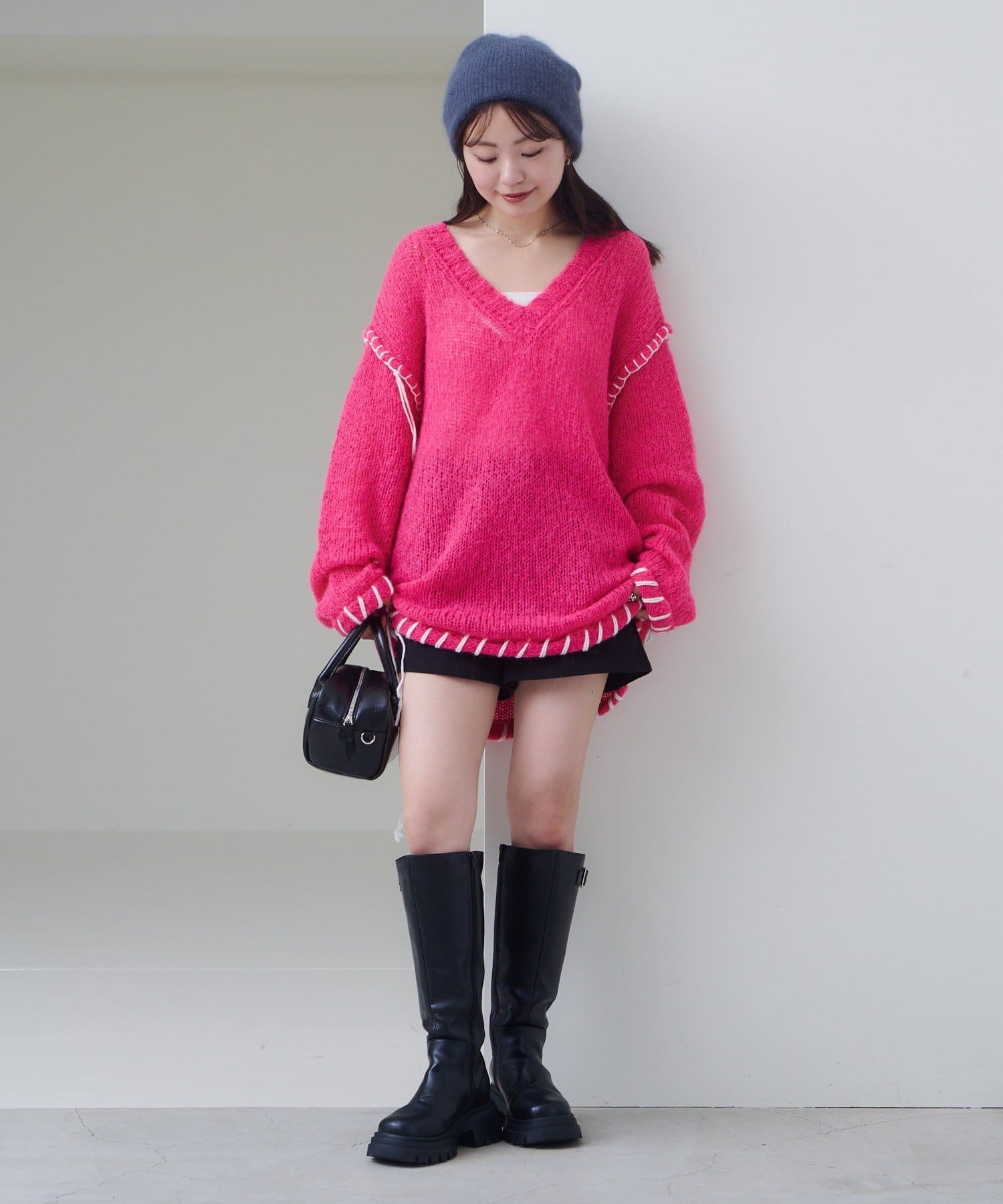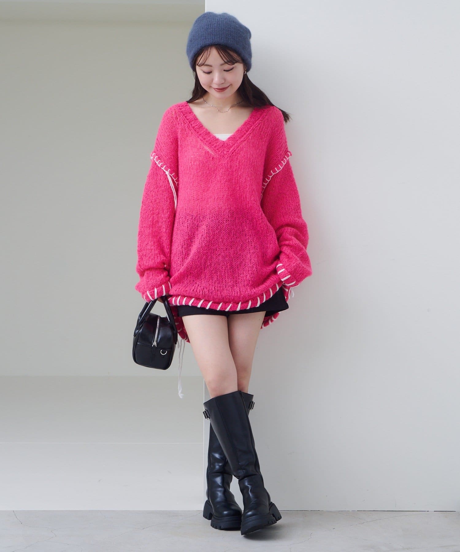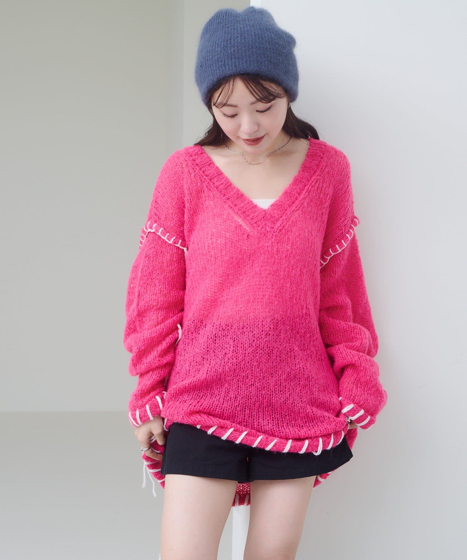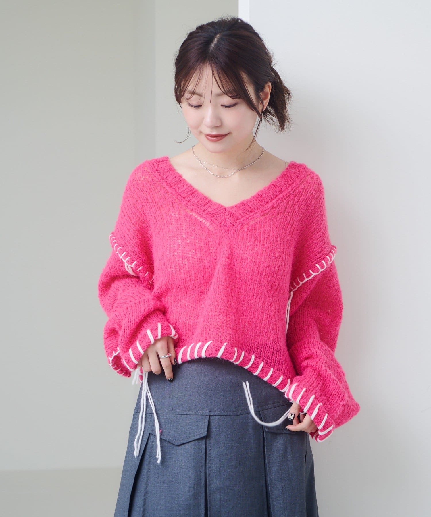ステッチが主役のざっくりニット