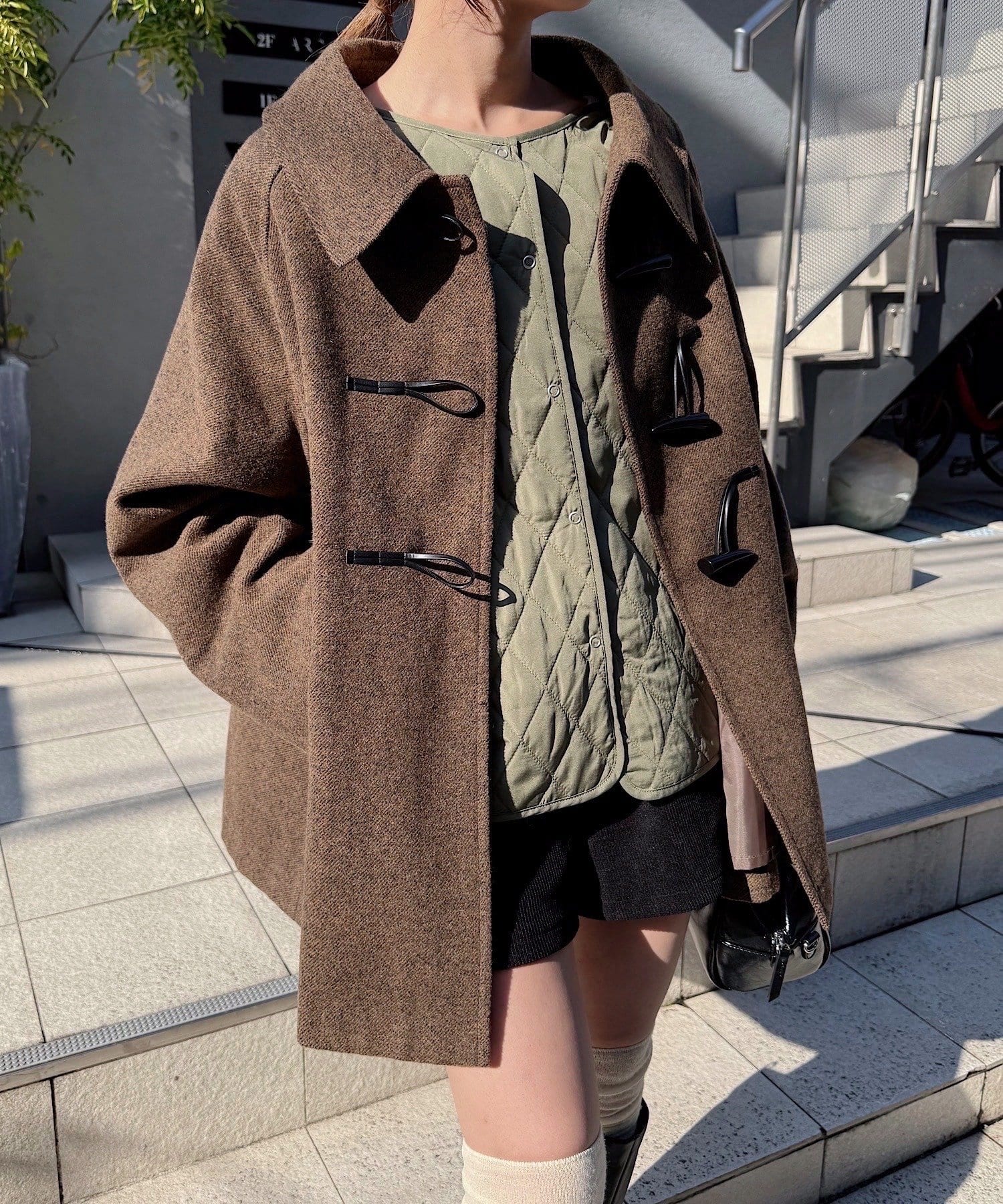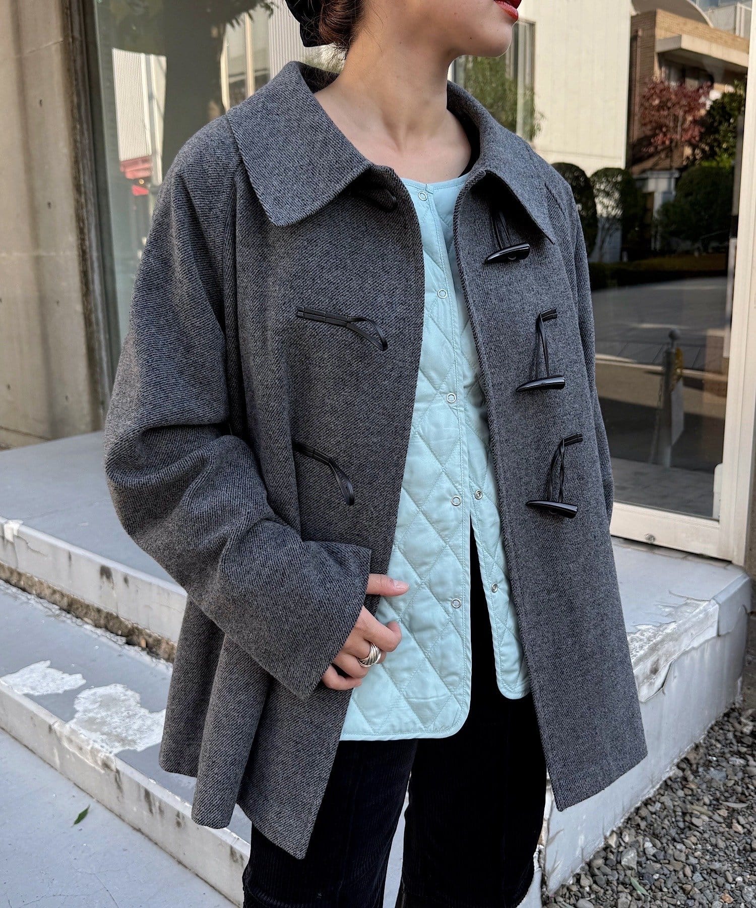フロントのトグルボタンが、トラッドな表情を演出しつつ、ウール混のしっかりとした生地感であたたかさも抜群。