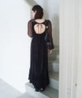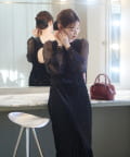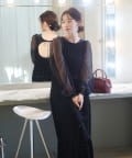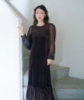 なめらかでしっとりとした肌触りのベロア素材に、繊細なチュール袖を組み合わせた異素材デザイン。