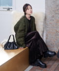 ヒールブーツやクラッチバッグを合わせて、華やかなオケージョンスタイルに。