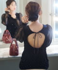 透け感のあるチュール袖がフェミニンさをプラスし、シーズンムードもアップ。