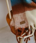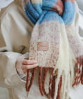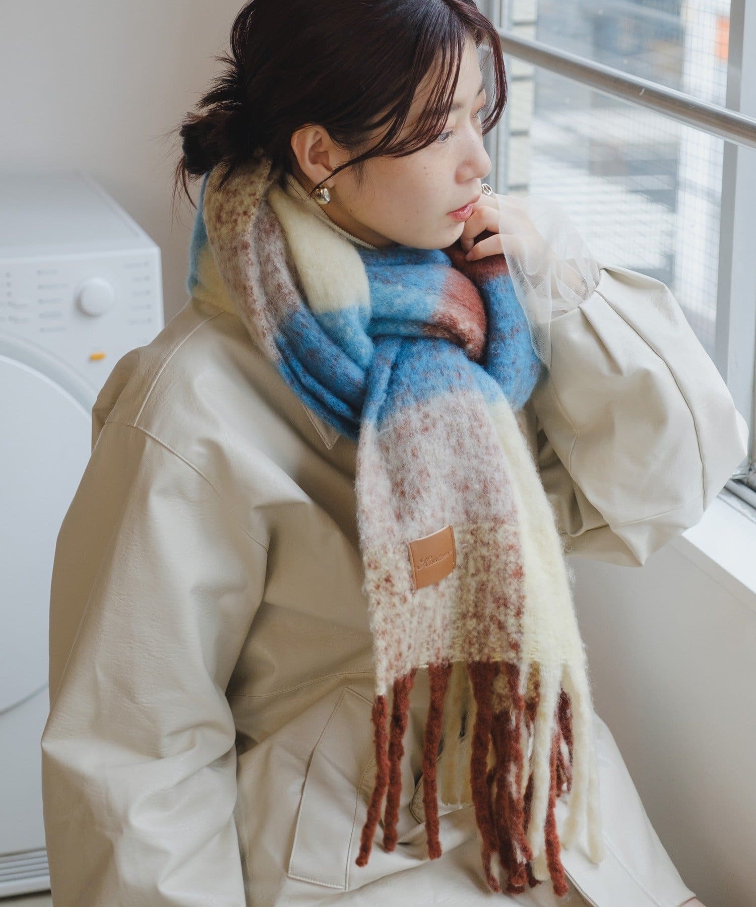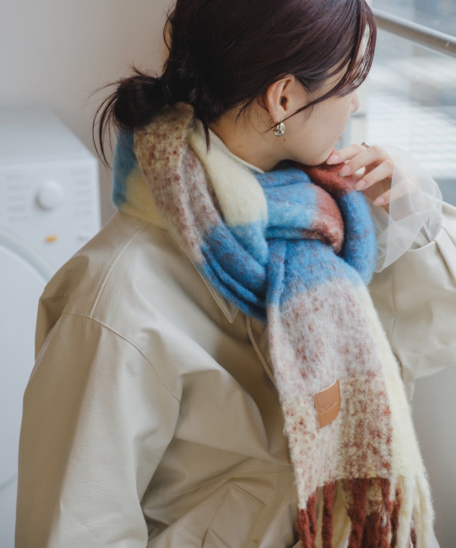 カラフルなチェック柄はシンプルなアウターと相性良く、ラフに巻くだけでスタイリングのアクセントになります。