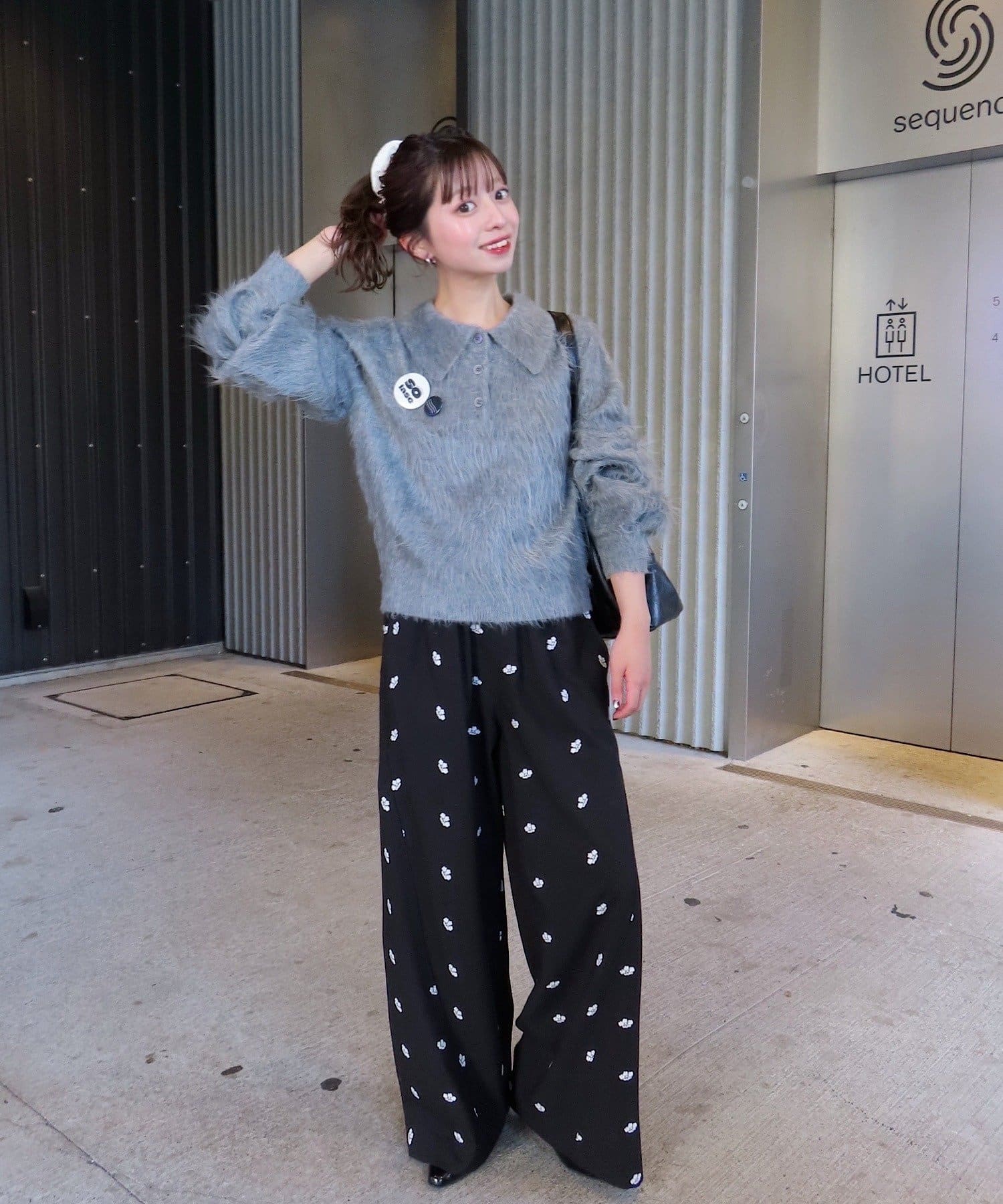 大きめの襟とゆったりしたシルエットが、甘さの中に大人っぽいニュアンスを添えてくれます。