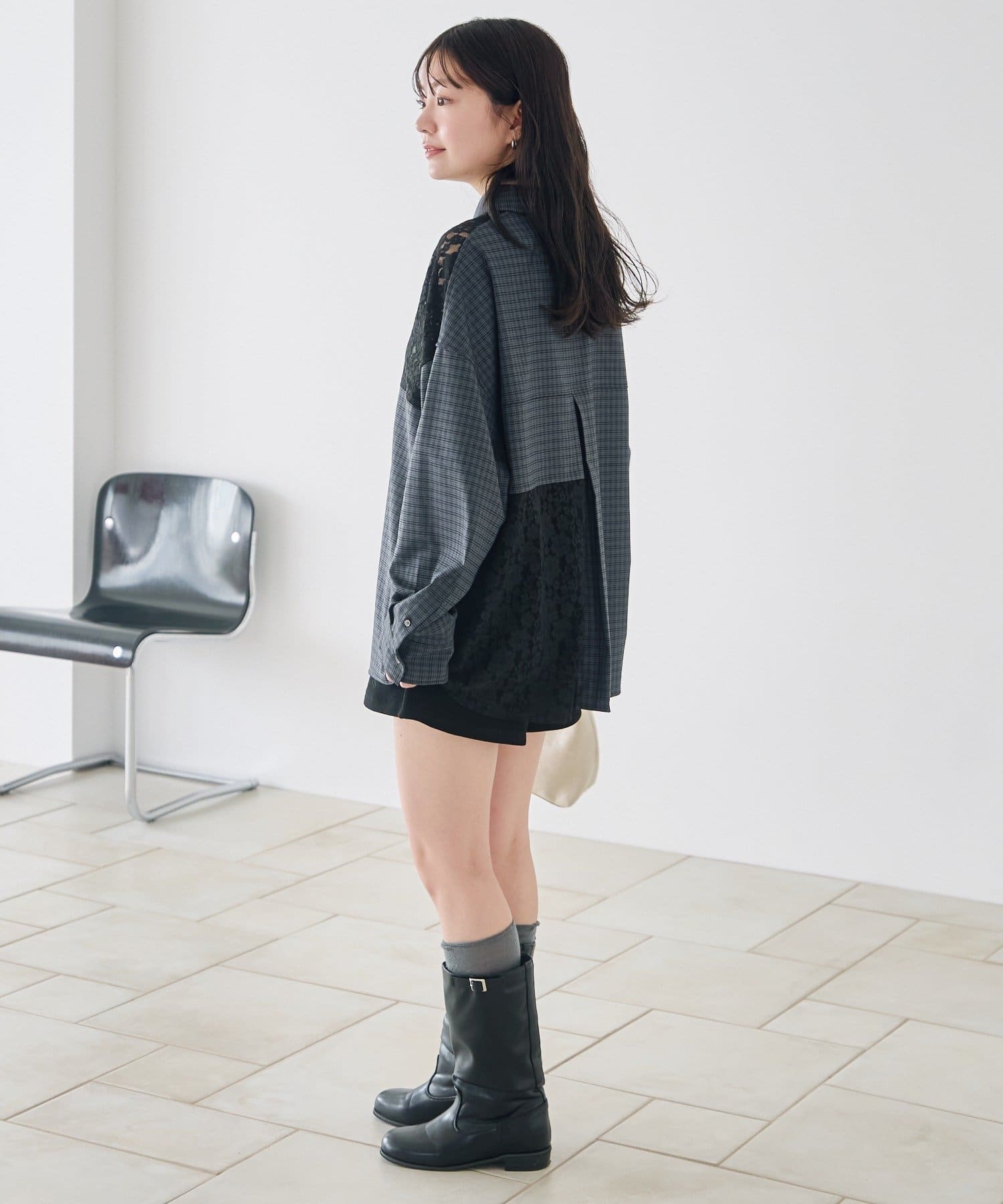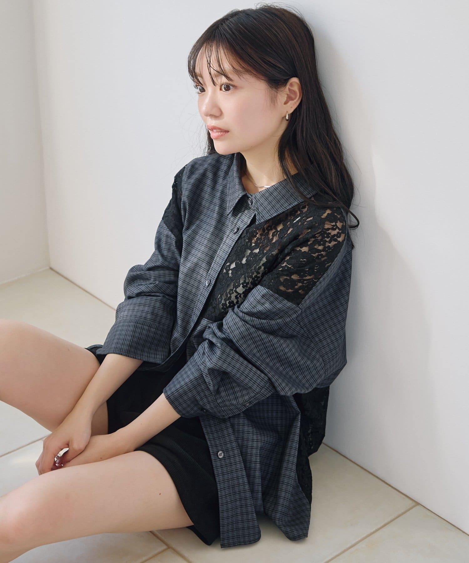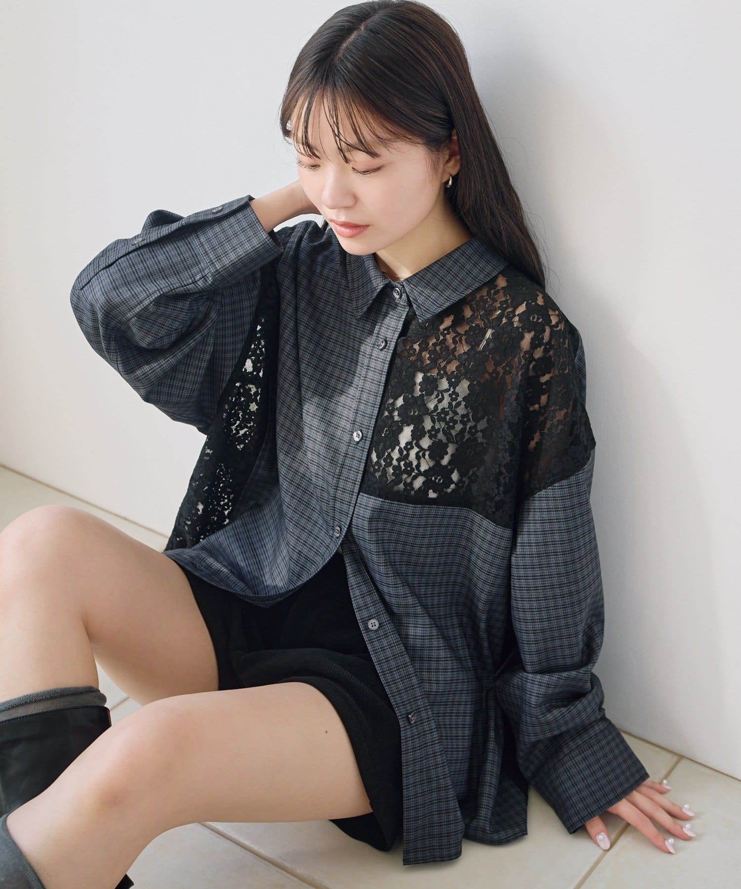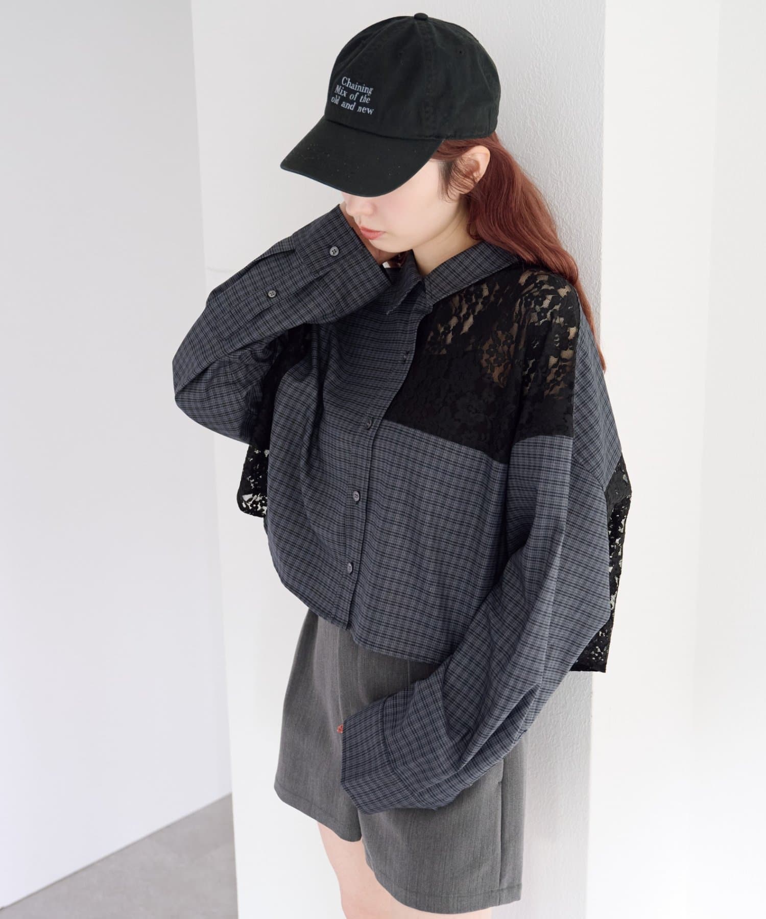 甘さのあるレースとマニッシュなチェックのコントラストが、1枚でこなれたスタイリングを完成させます。