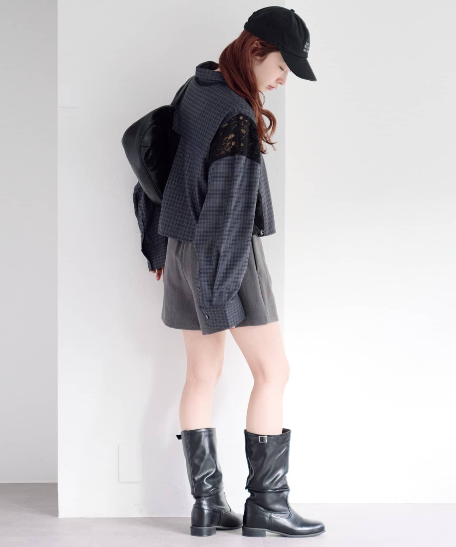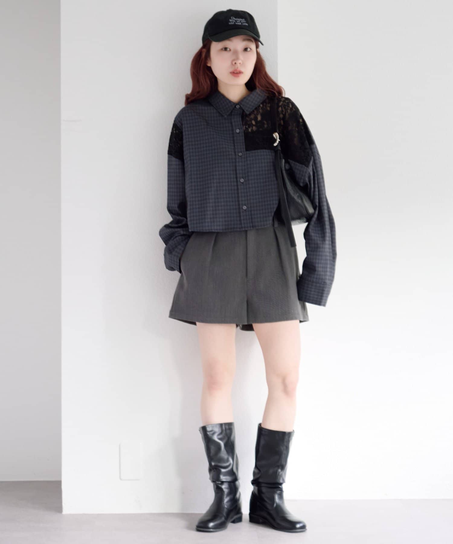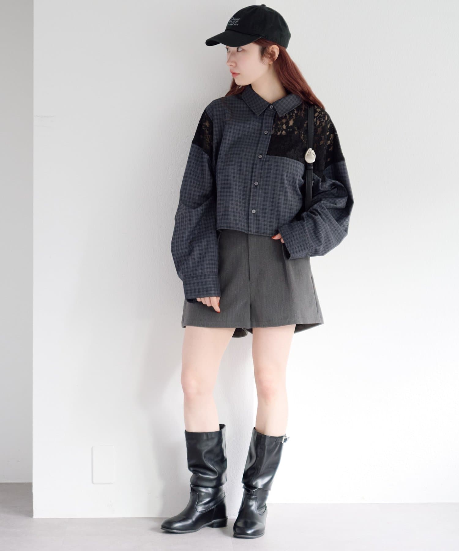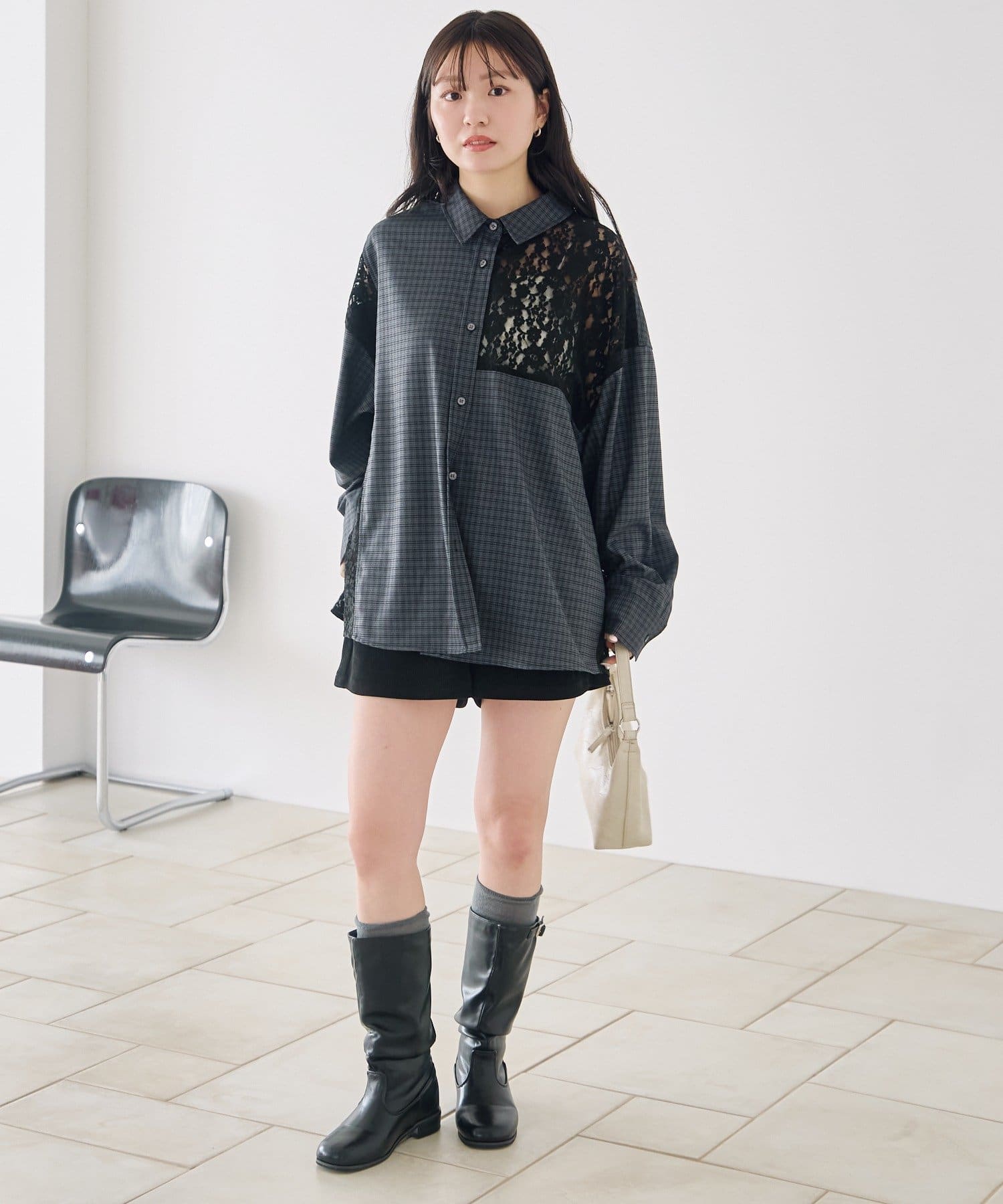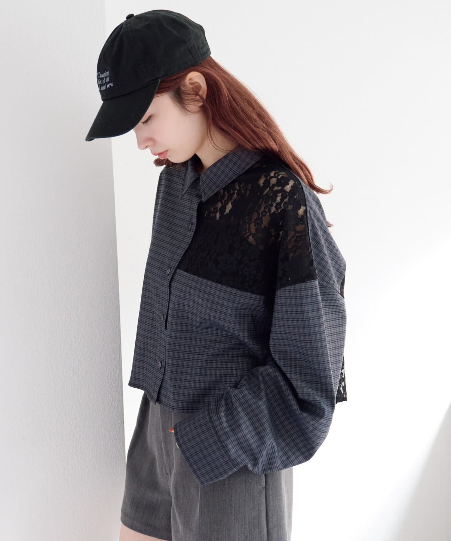 甘さのあるレースとマニッシュなチェックのコントラストが、1枚でこなれたスタイリングを完成させます。