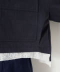 ショート丈のシャツジャケットに、ストライプとレースの異素材をレイヤードしたデザイン性のある一枚。