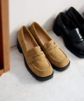 クラシックなローファーデザインに、程よい高さのヒールを組み合わせた大人顔の一足。