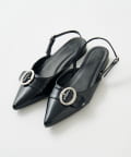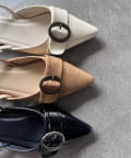 シャープなポインテッドトゥに、存在感のあるラインベルトをあしらったラインベルトパンプス。