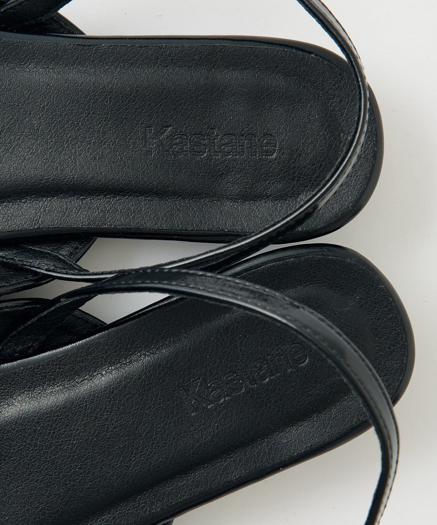 甲部分のベルトデザインが足元にアクセントをプラスし、シンプルながらも洗練された印象に。
