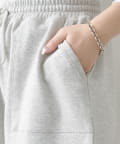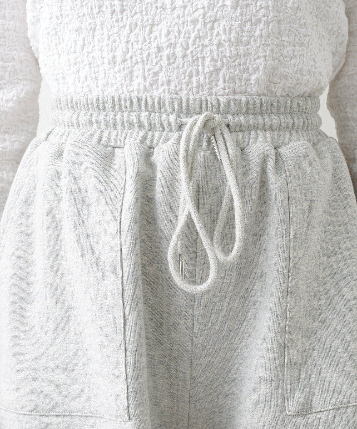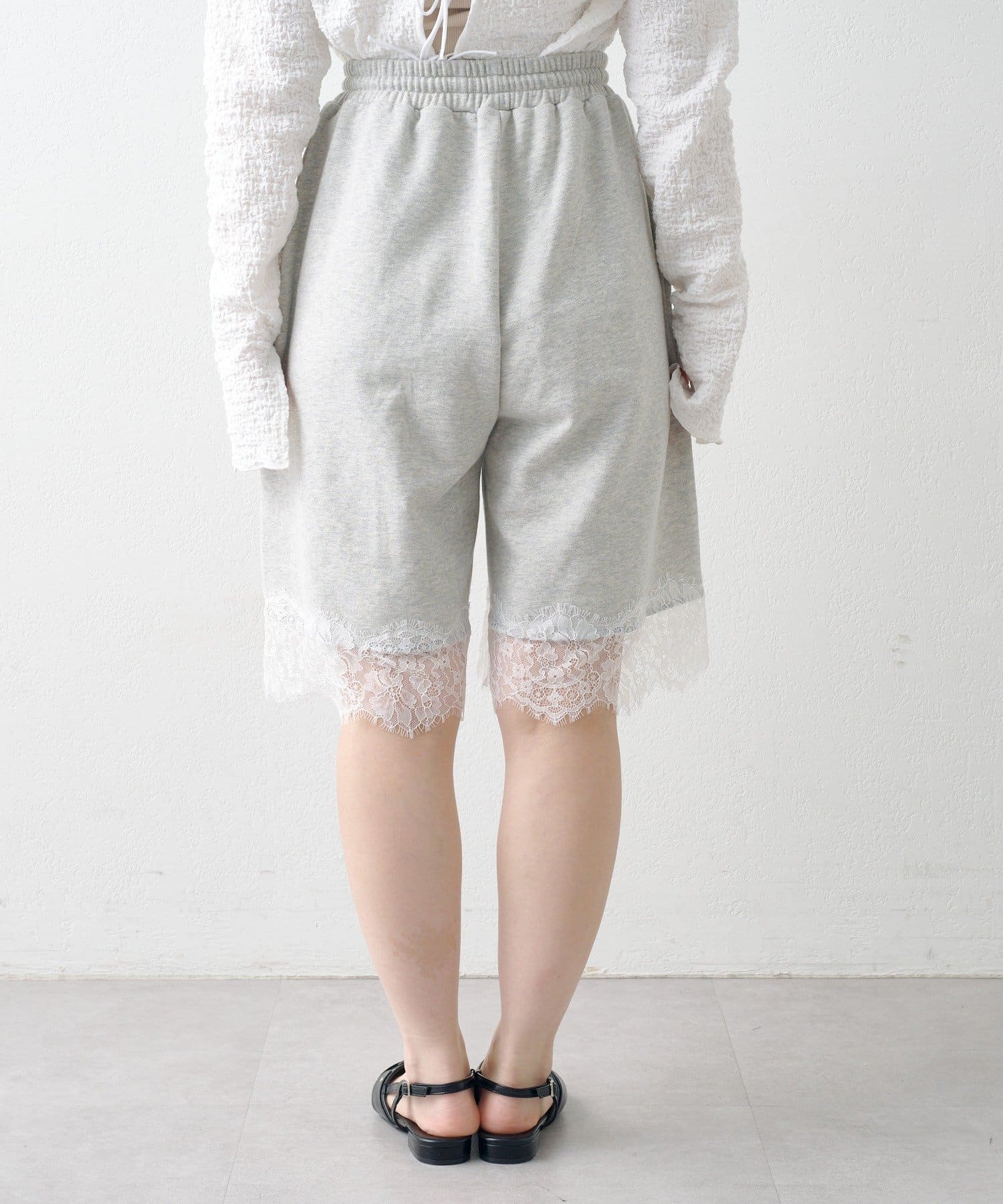 スウェット素材に裾のレースをプラスしたフェミニンさ漂うハーフパンツ