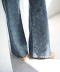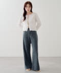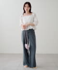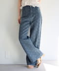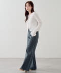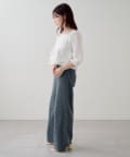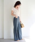 ストレートに近いワイドシルエットで、脚のラインを拾いにくく、すっきりとした縦ラインを演出。