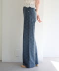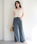 【2026SSカタログ/低身長サイズ/2サイズ展開/ウエスト調節可】フラワーエンブロイダリーデニム