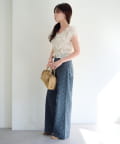 花柄を落ち着いたトーンのデニムに落とし込むことで、大人っぽく洗練された印象に。