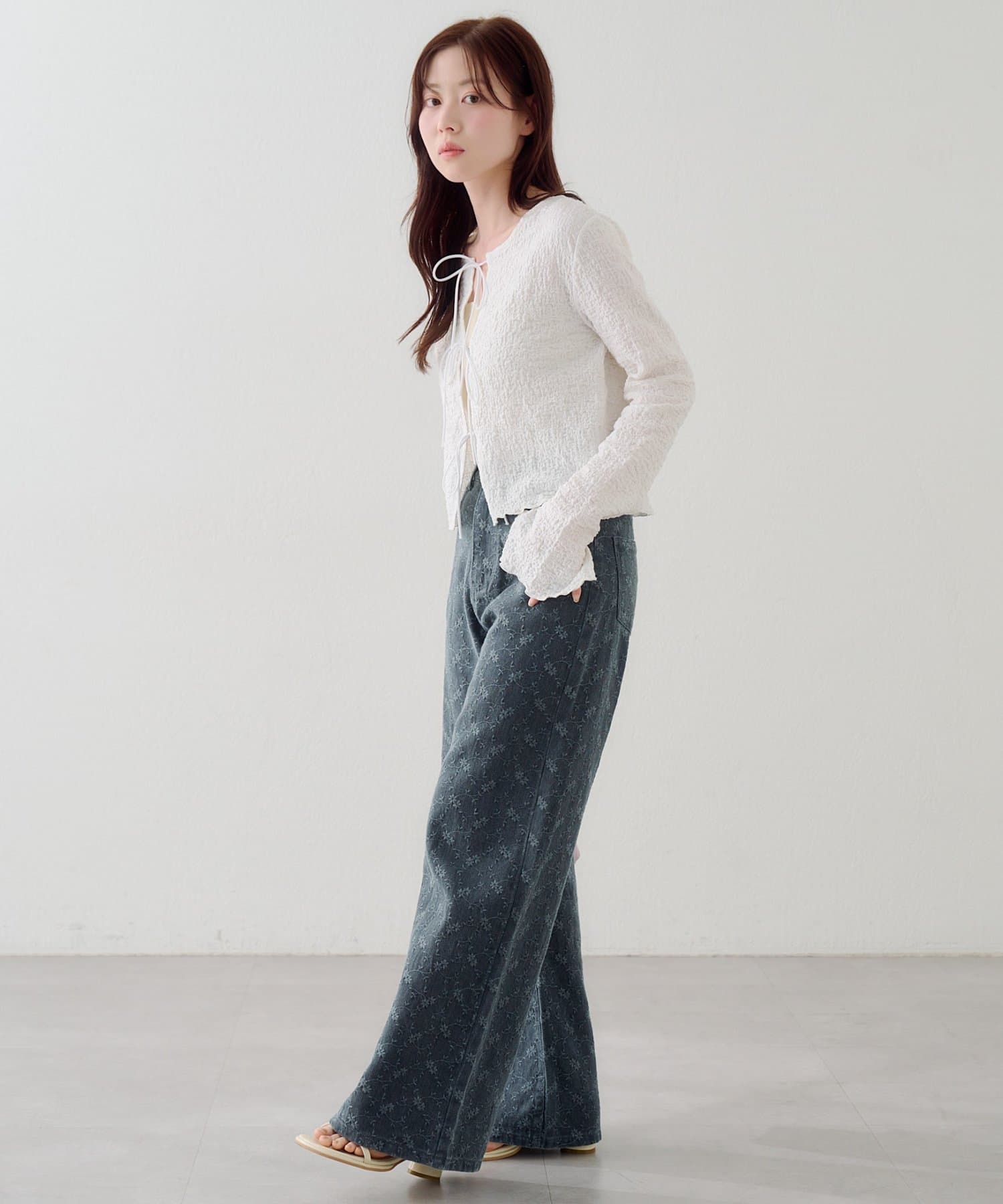 【2026SSカタログ/低身長サイズ/2サイズ展開/ウエスト調節可】フラワーエンブロイダリーデニム