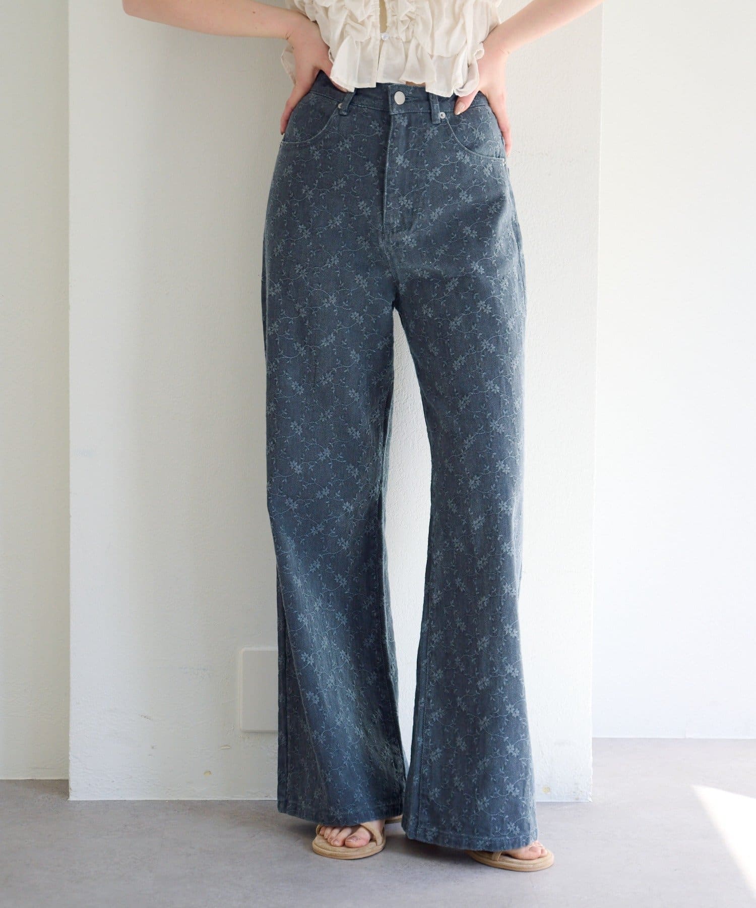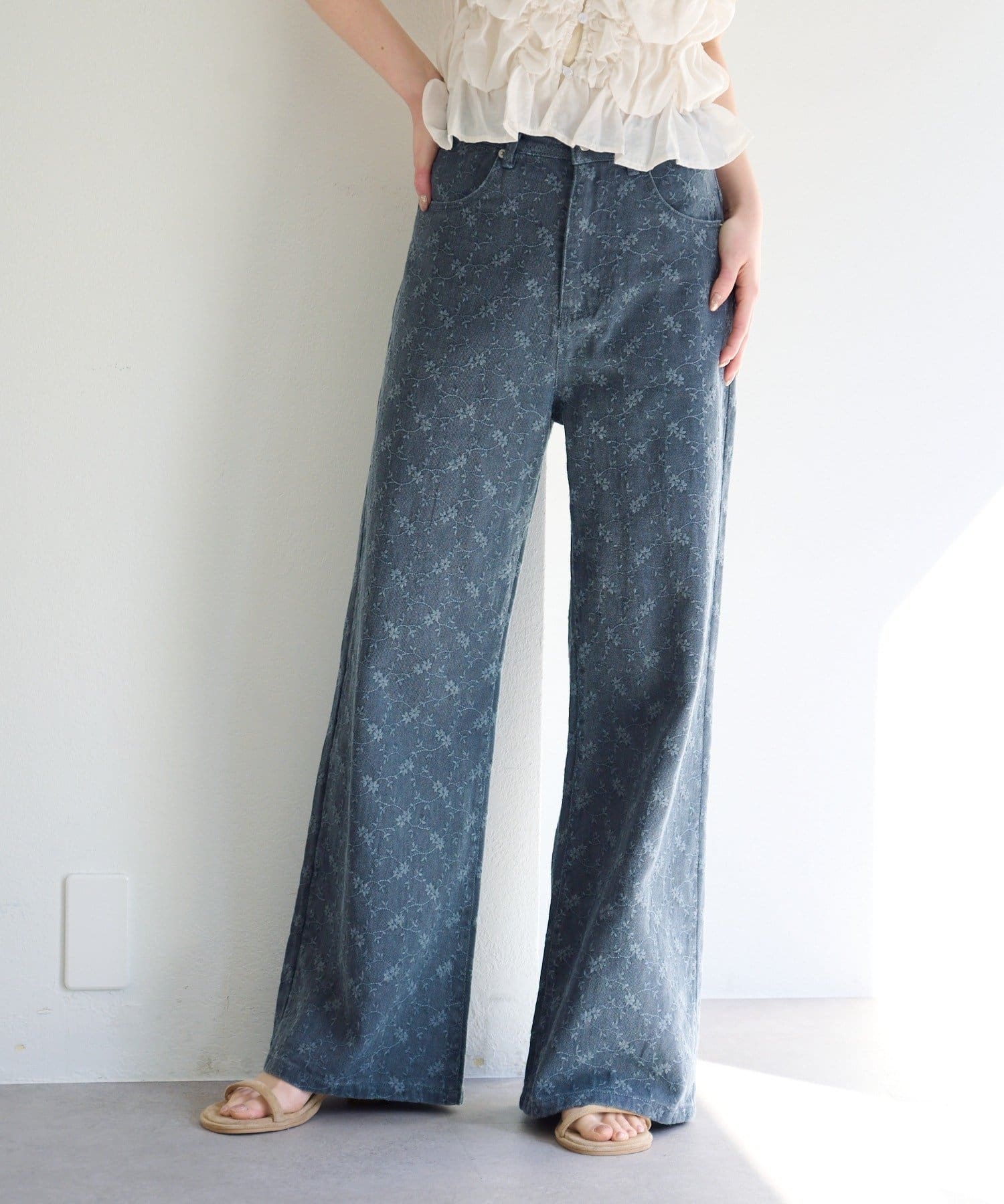 繊細なフラワー刺繍を全面に施した、存在感のあるデニムパンツ