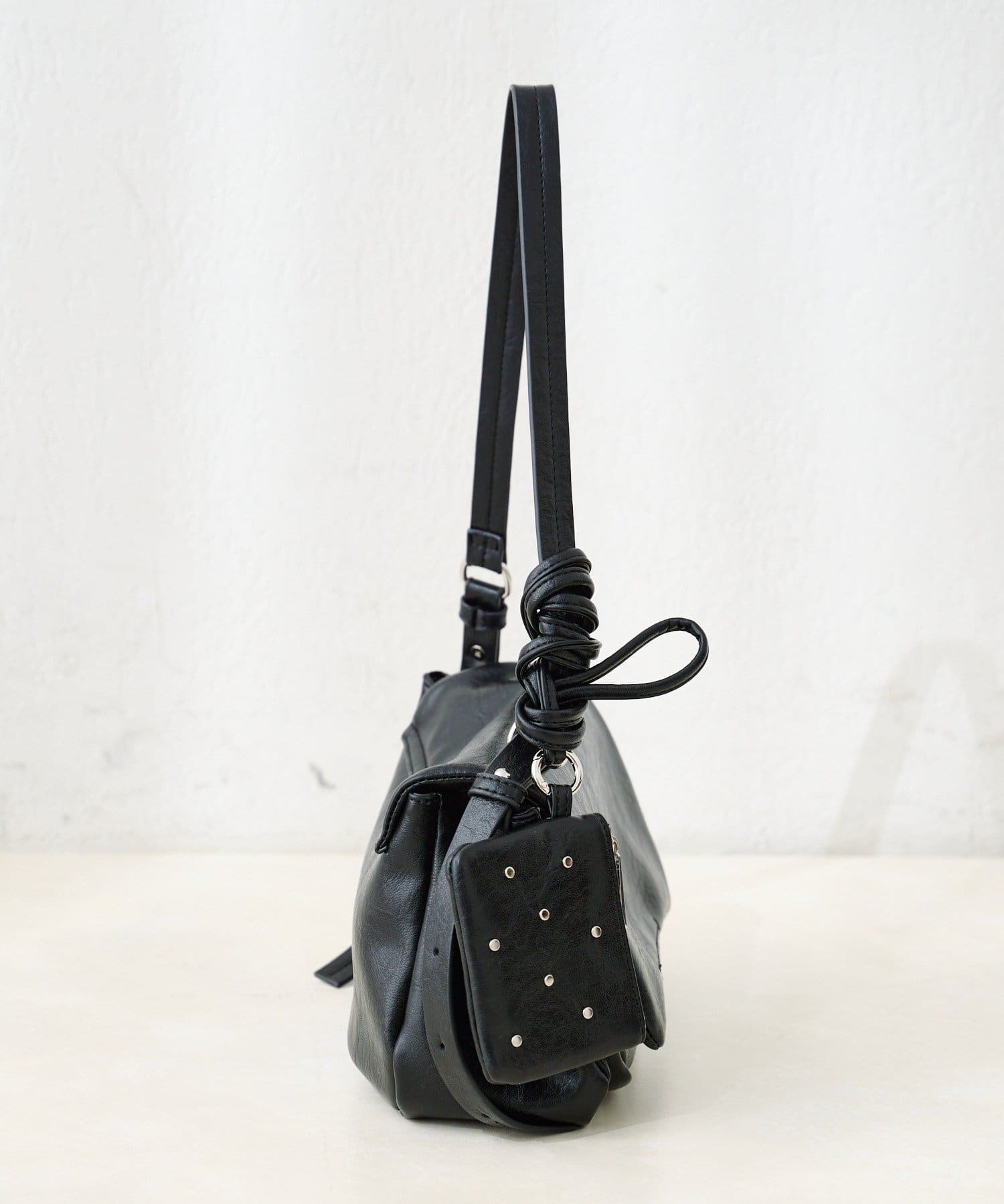 ワンショルダーバッグとスタッズ付きポーチがセットになった、使い方を楽しめるバッグ。