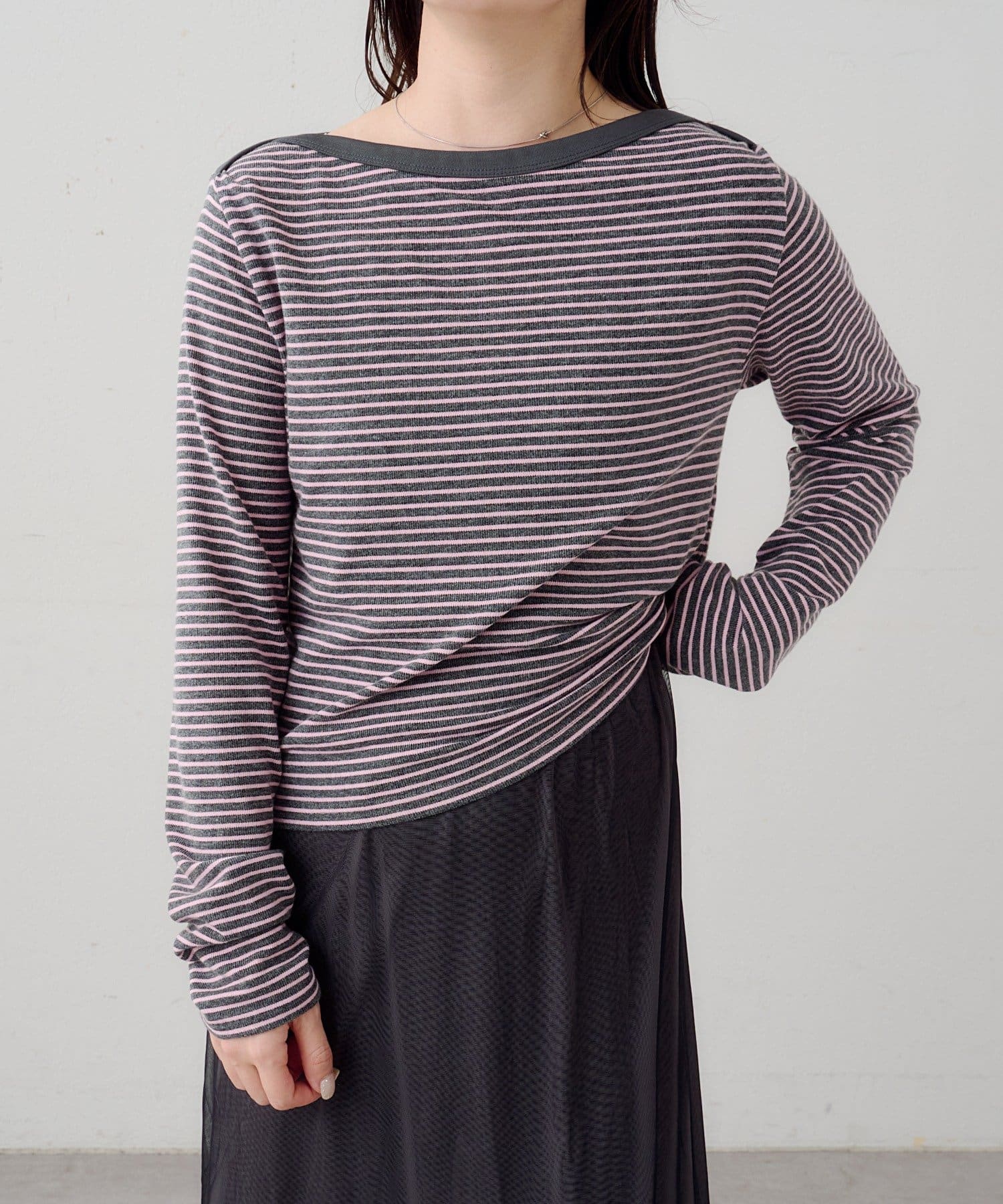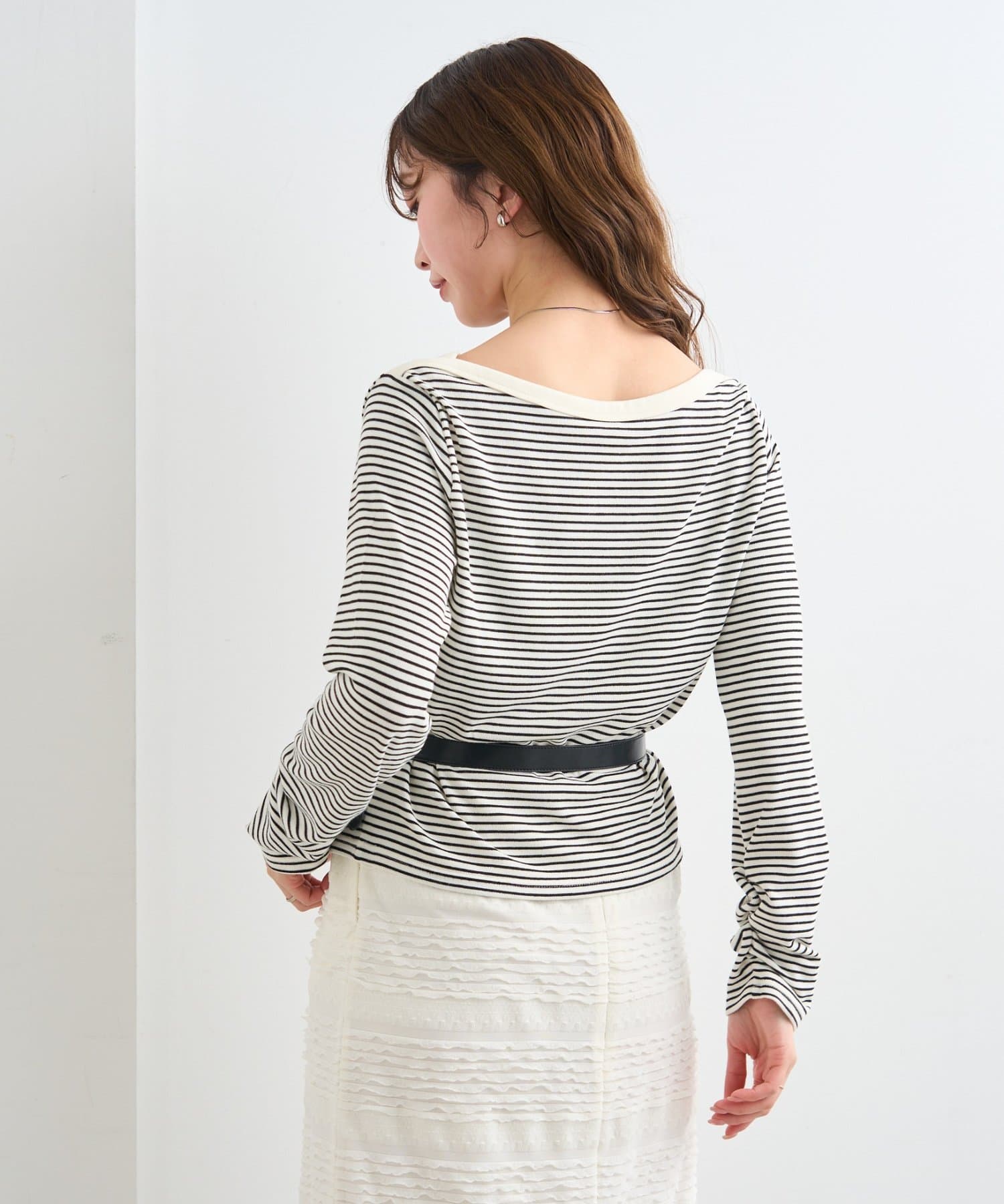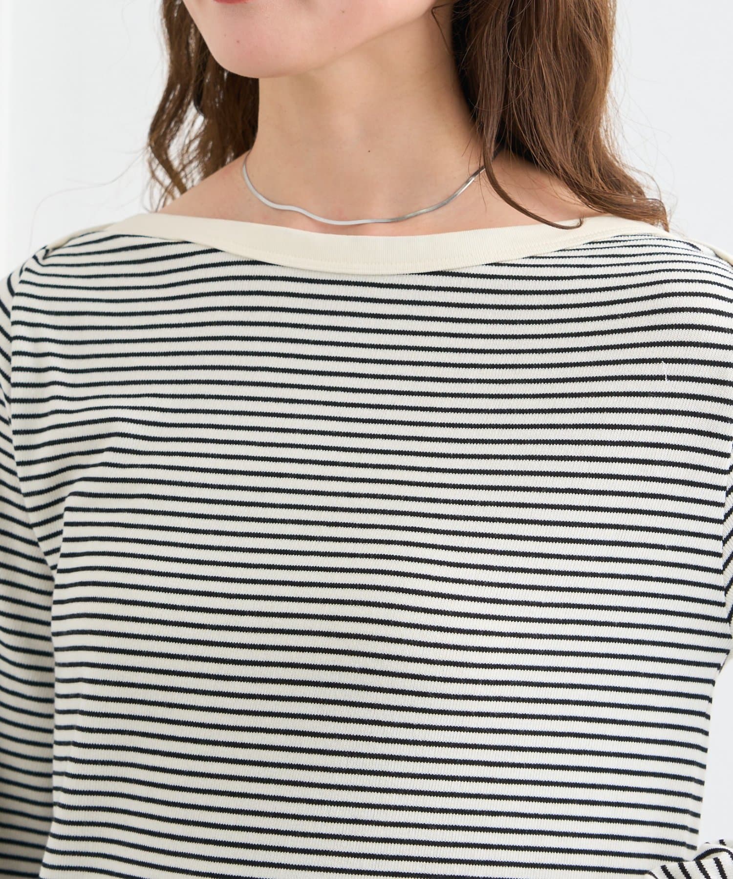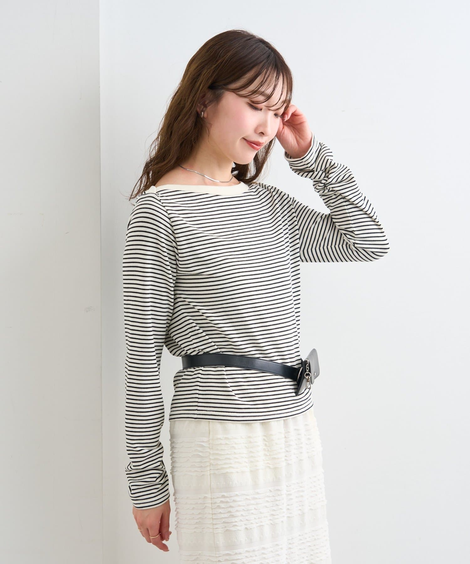 TOP > Kastane > レディース > トップス > Tシャツ/カットソー > 【3.12(木)12:00発売】B ボーダークロスショルダーロンTEE