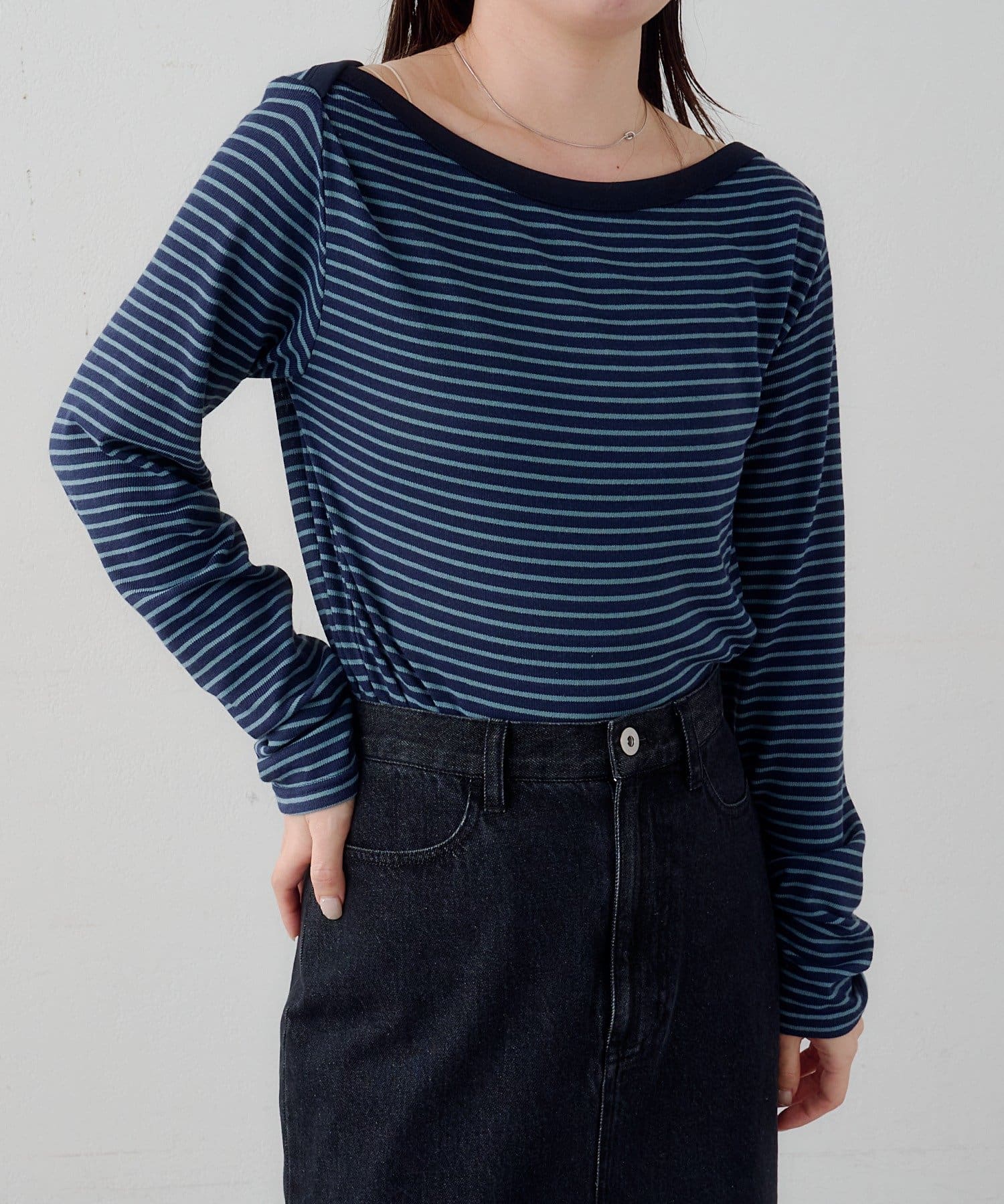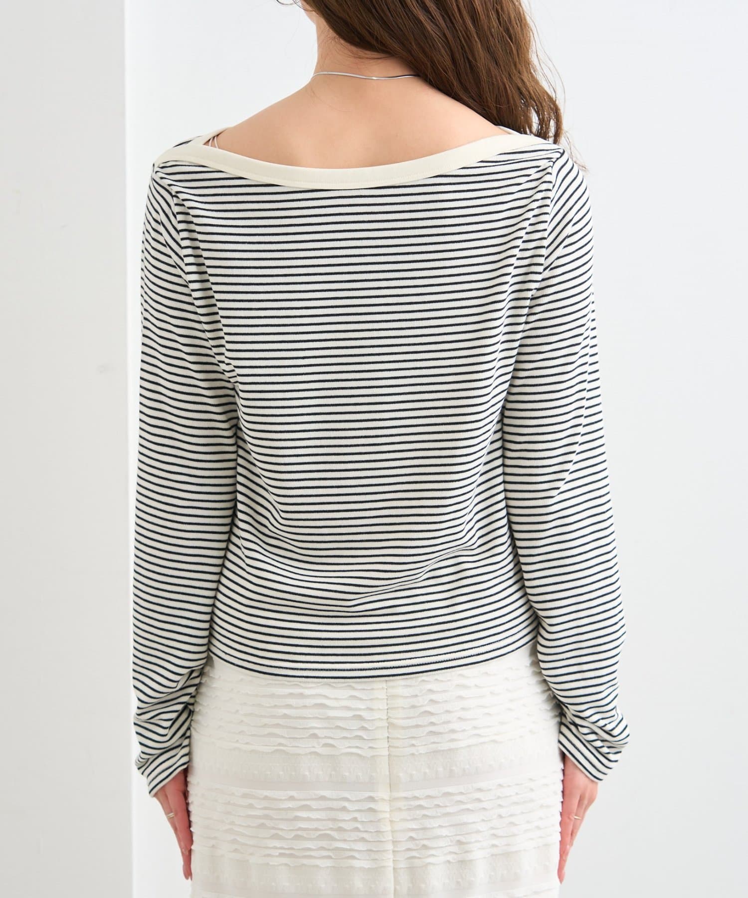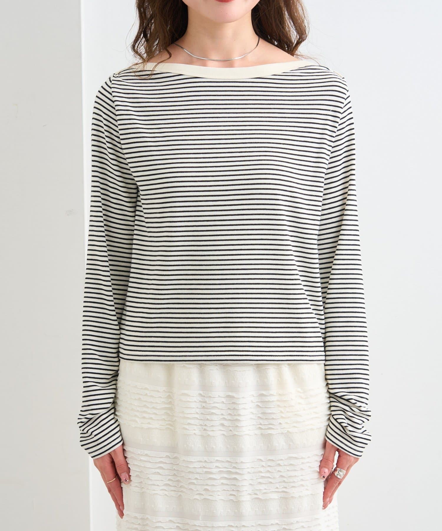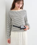 TOP > Kastane > レディース > トップス > Tシャツ/カットソー > 【3.12(木)12:00発売】B ボーダークロスショルダーロンTEE
