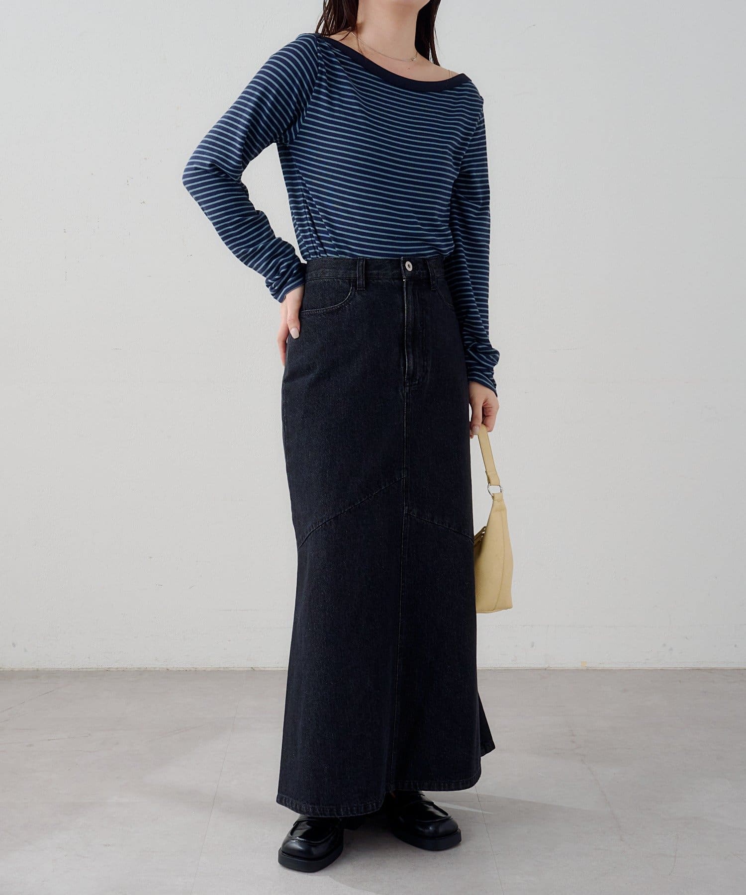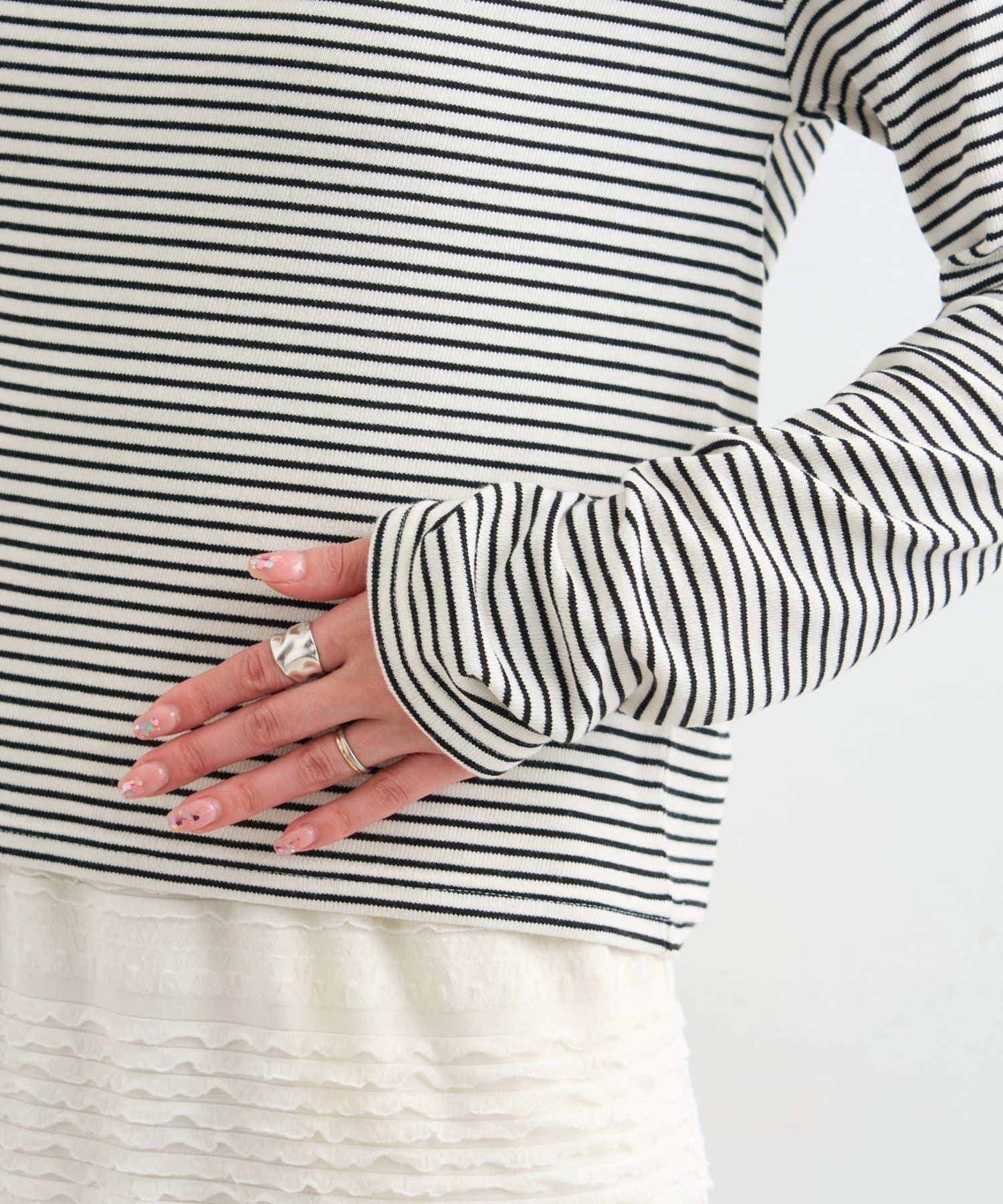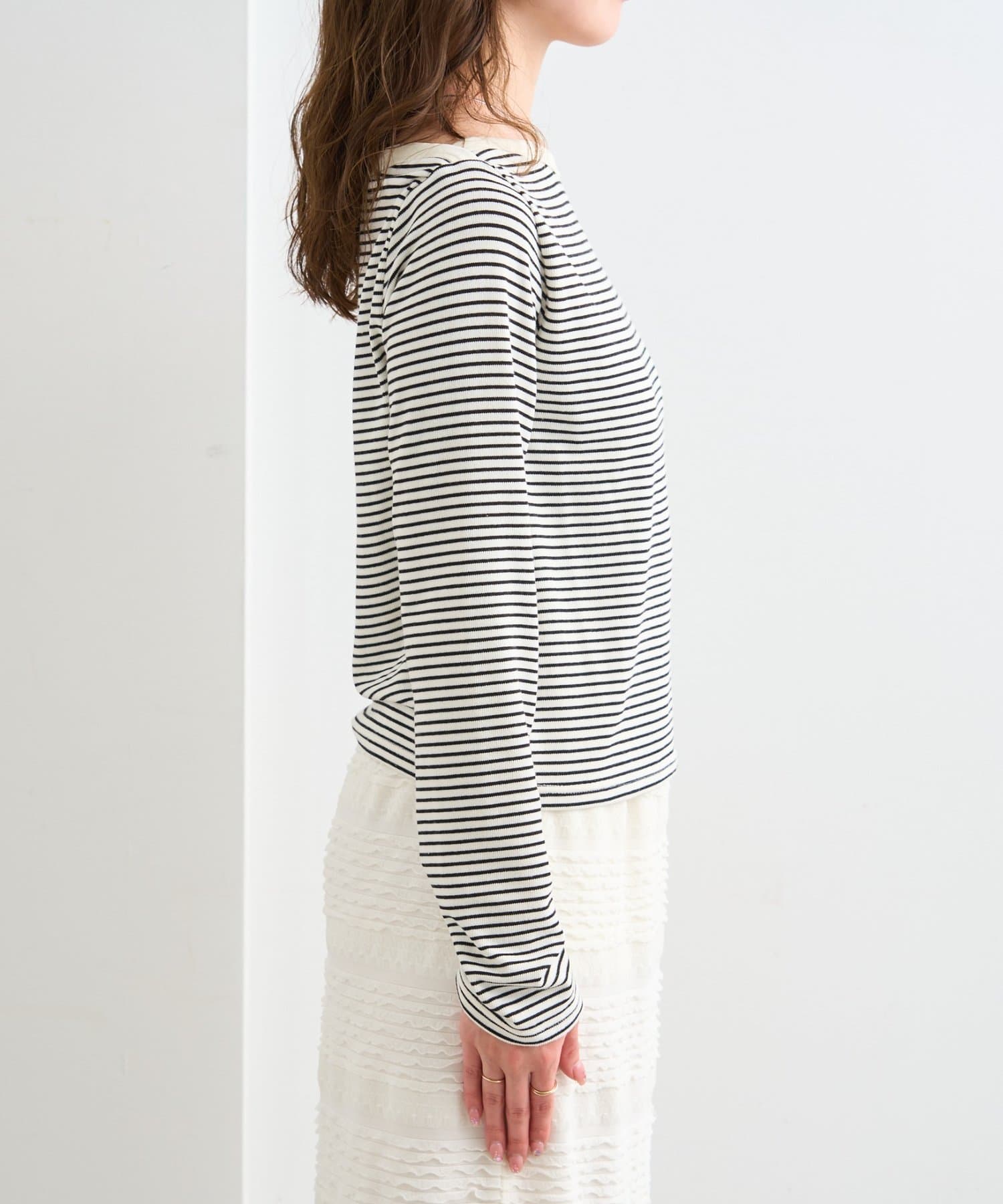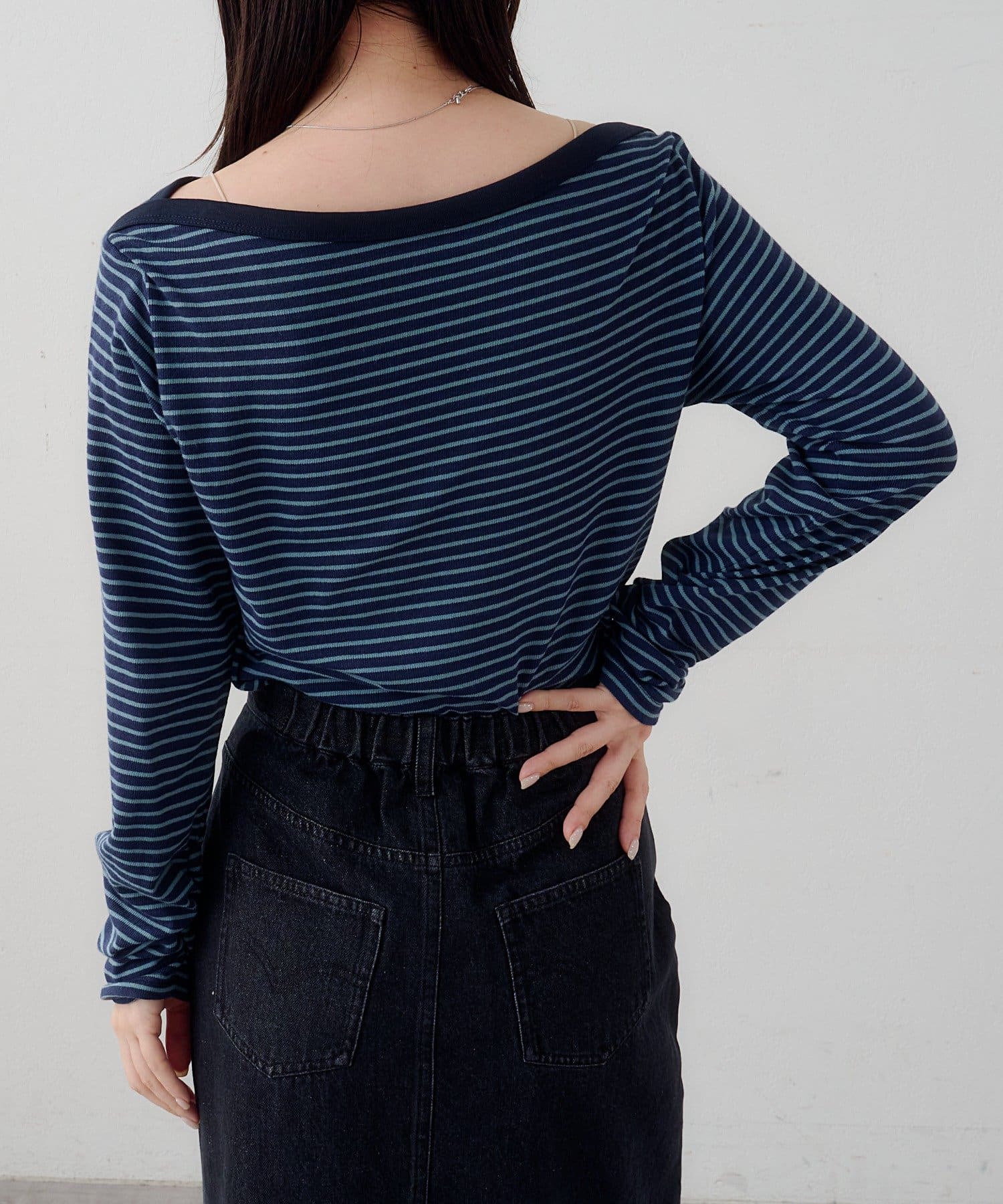 TOP > Kastane > レディース > トップス > Tシャツ/カットソー > 【3.12(木)12:00発売】B ボーダークロスショルダーロンTEE