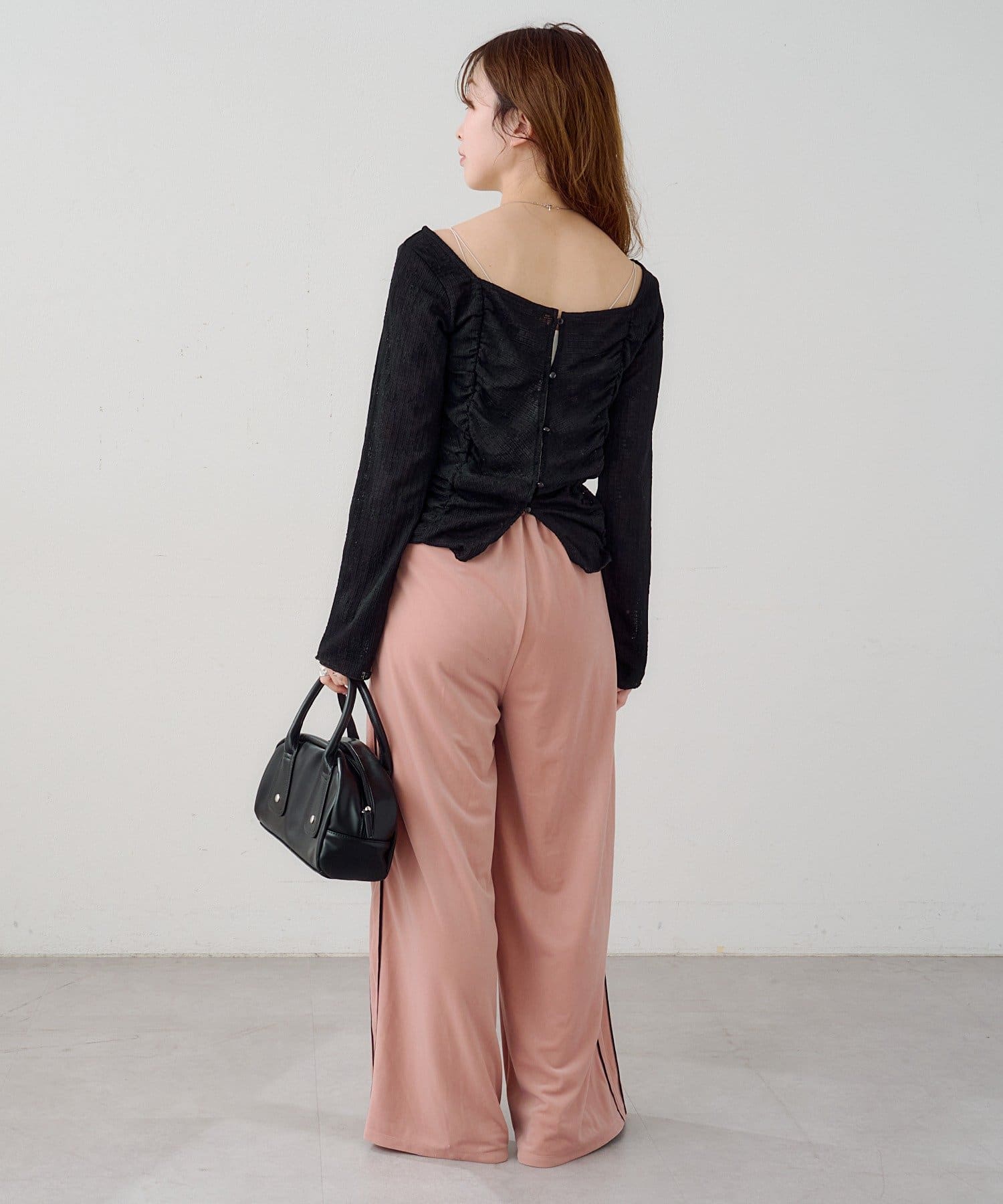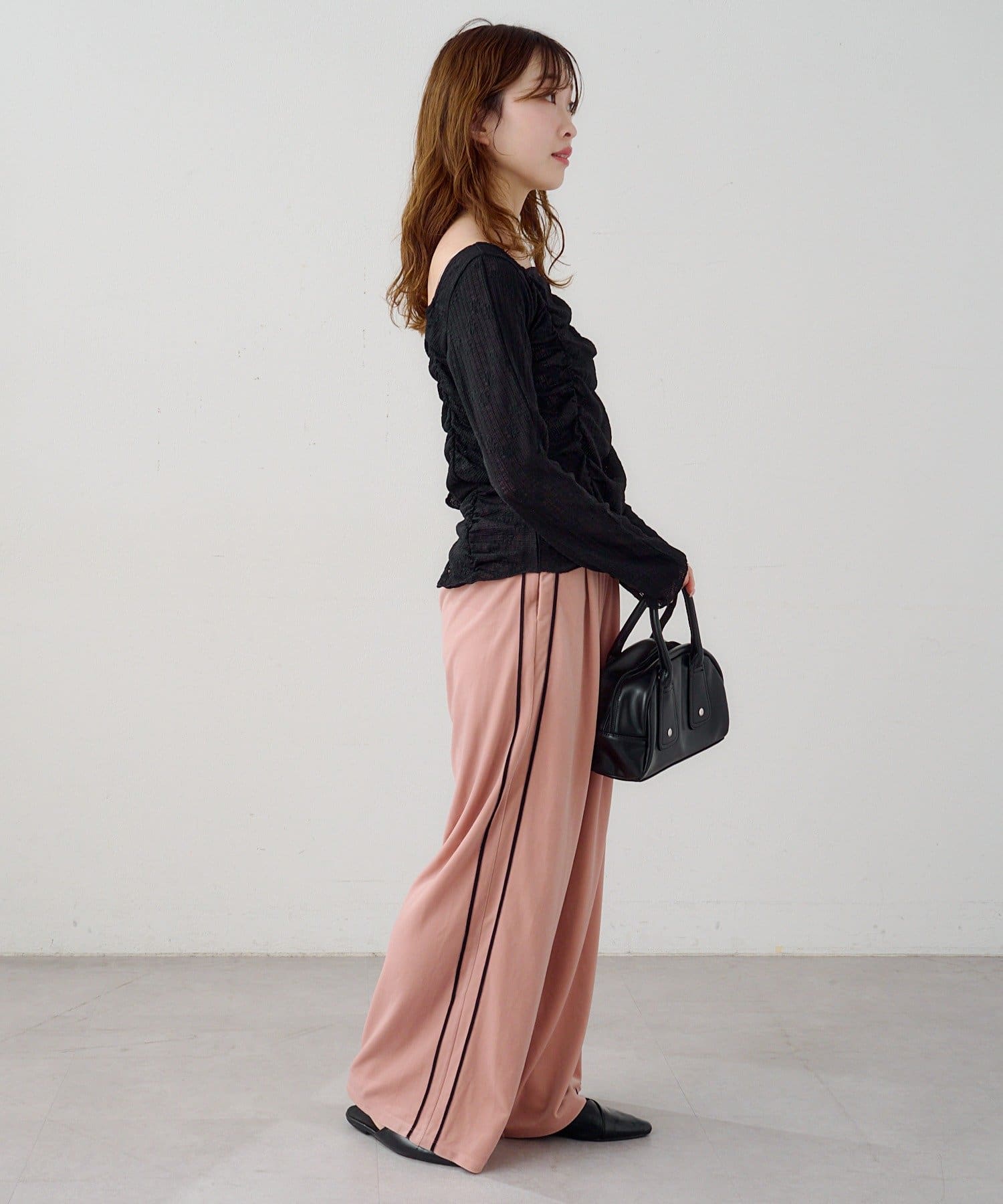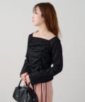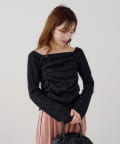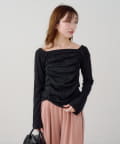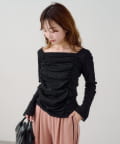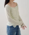 【4色展開】B フラワーカットソーギャザーカーディガン