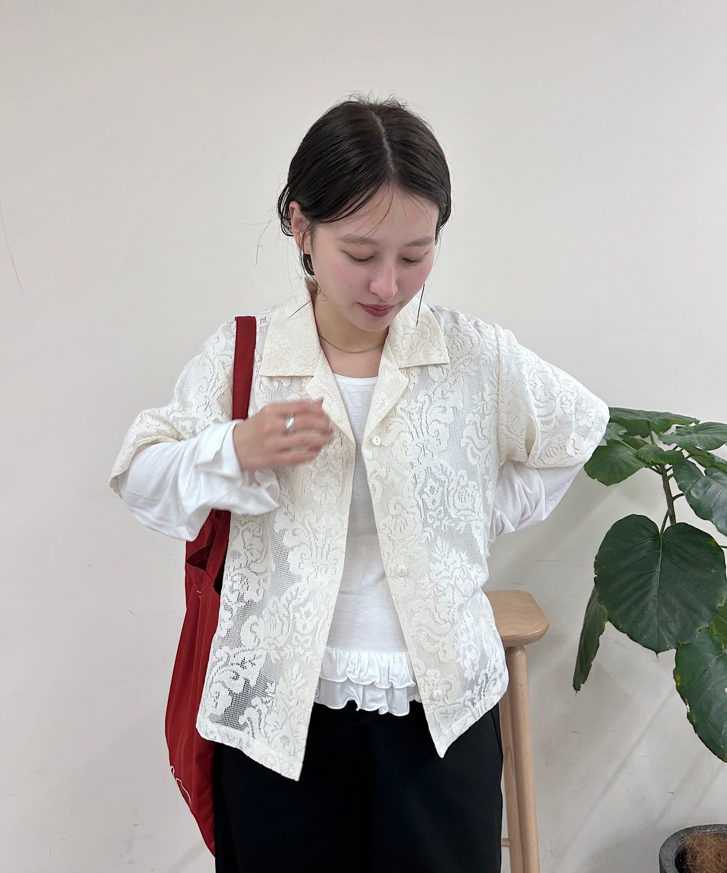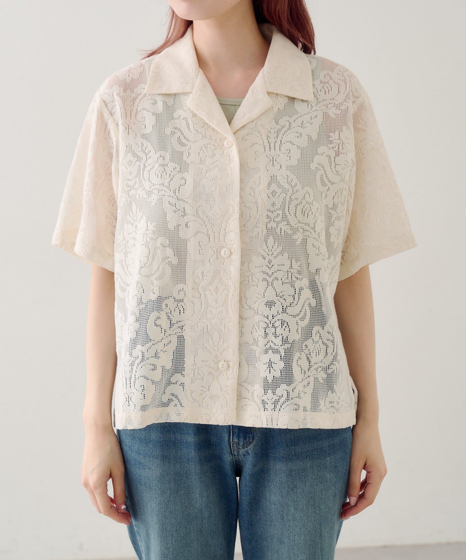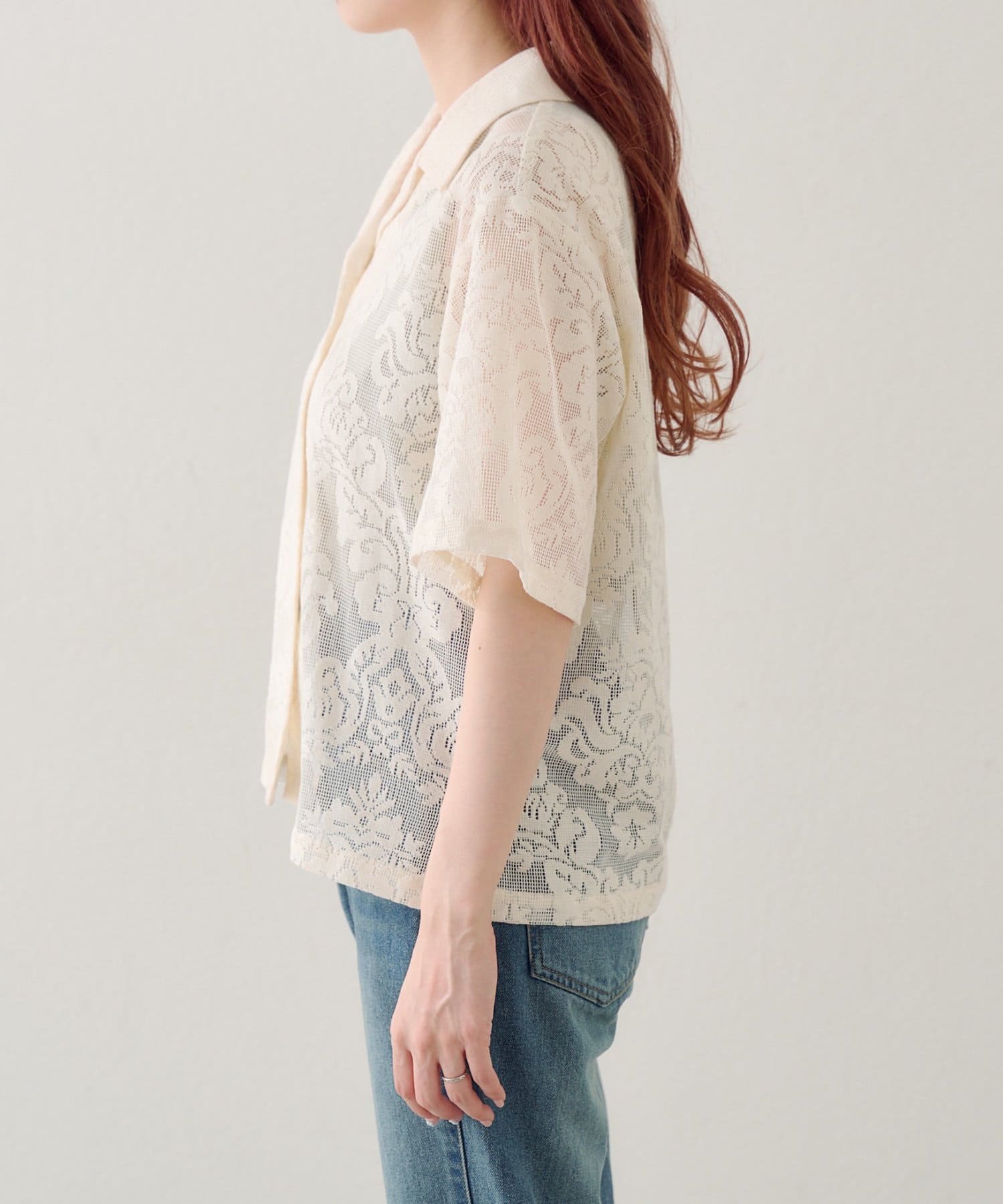 繊細なレース素材が目を惹く開襟半袖シャツ!