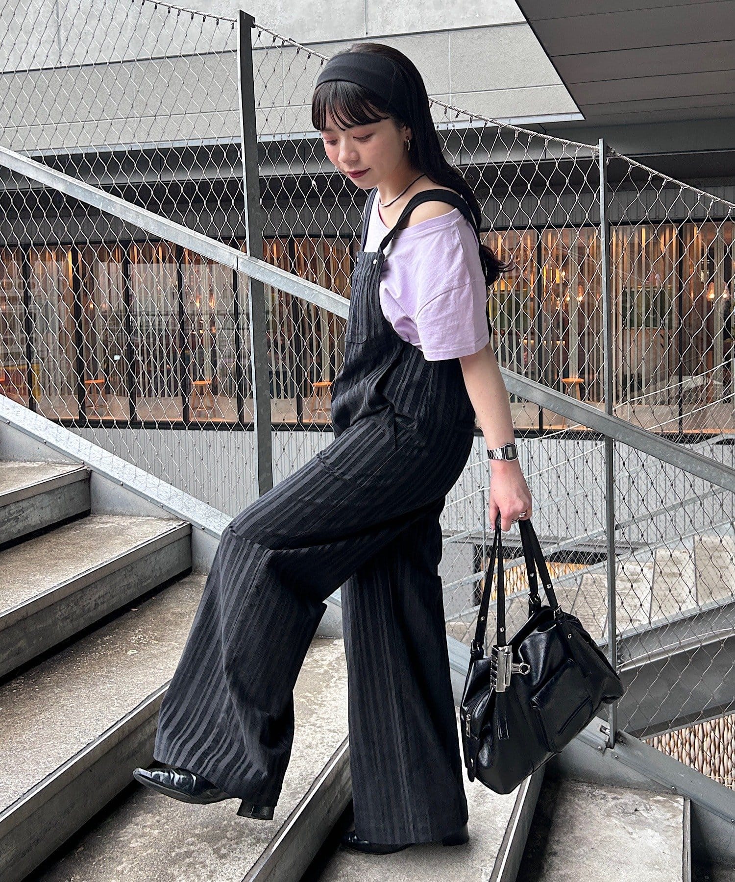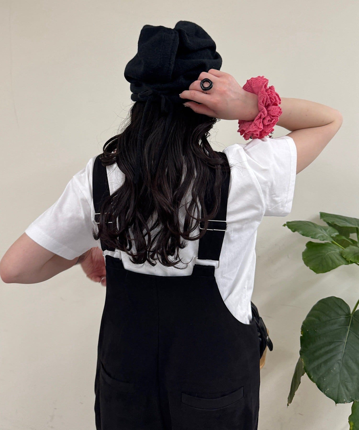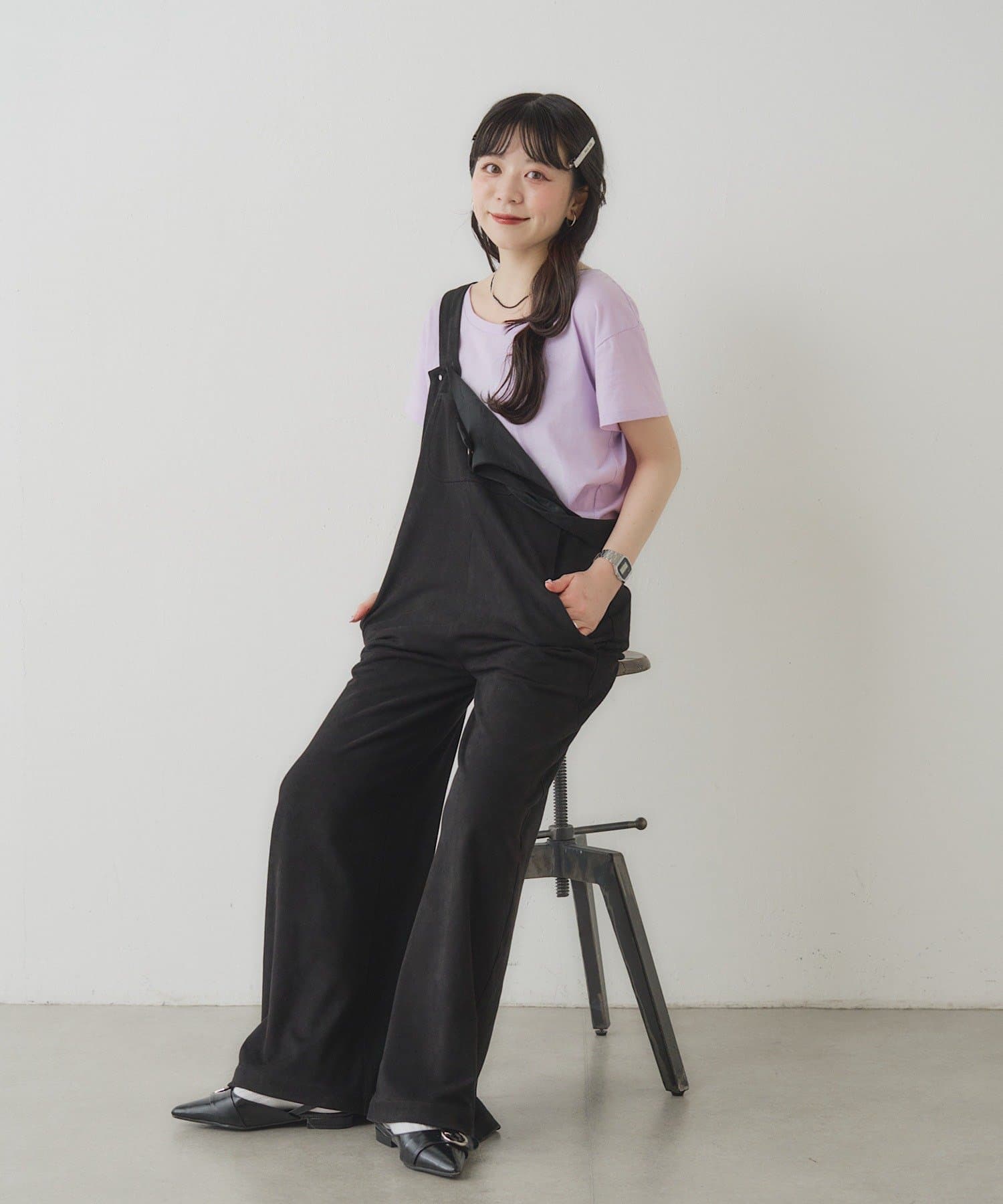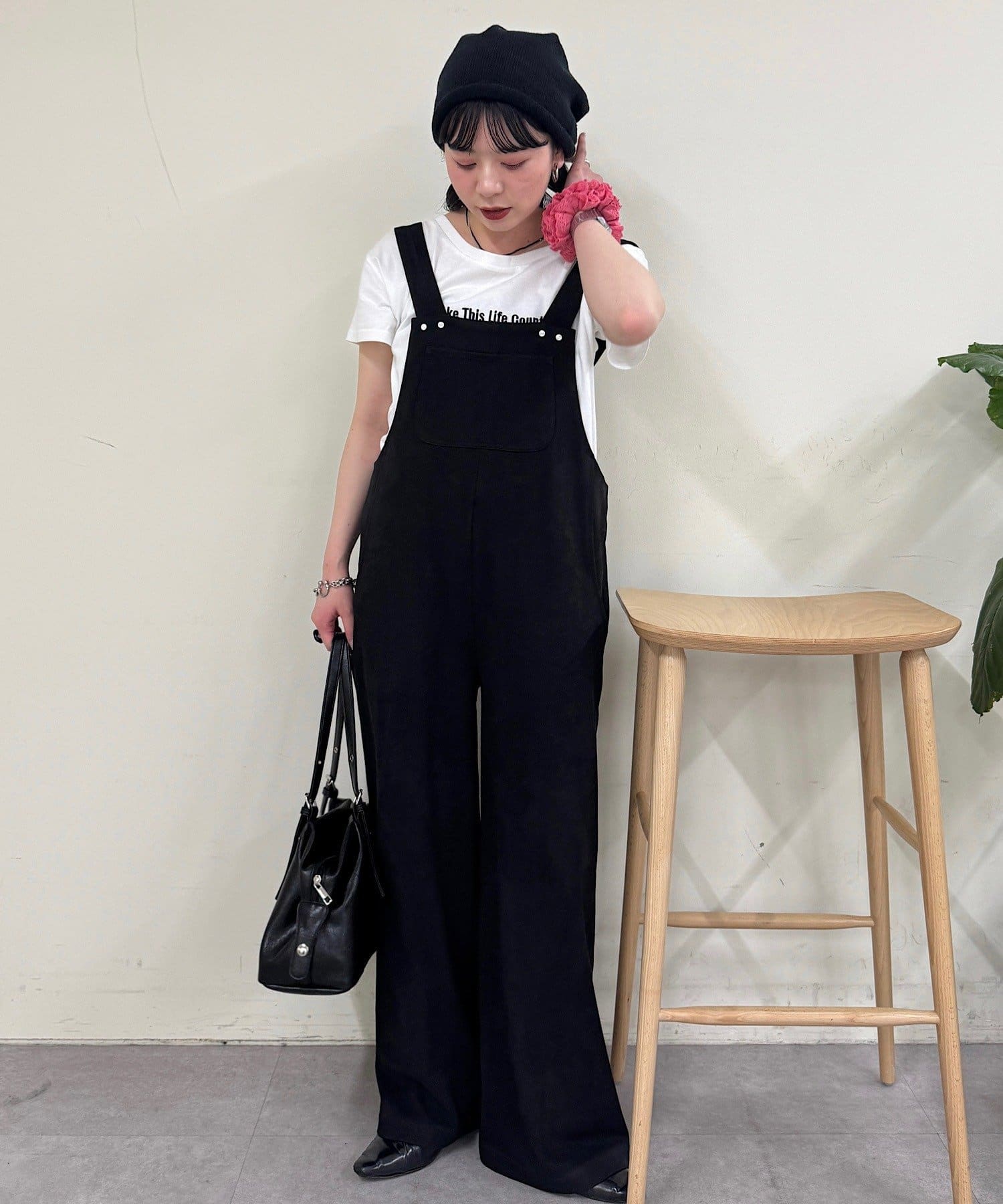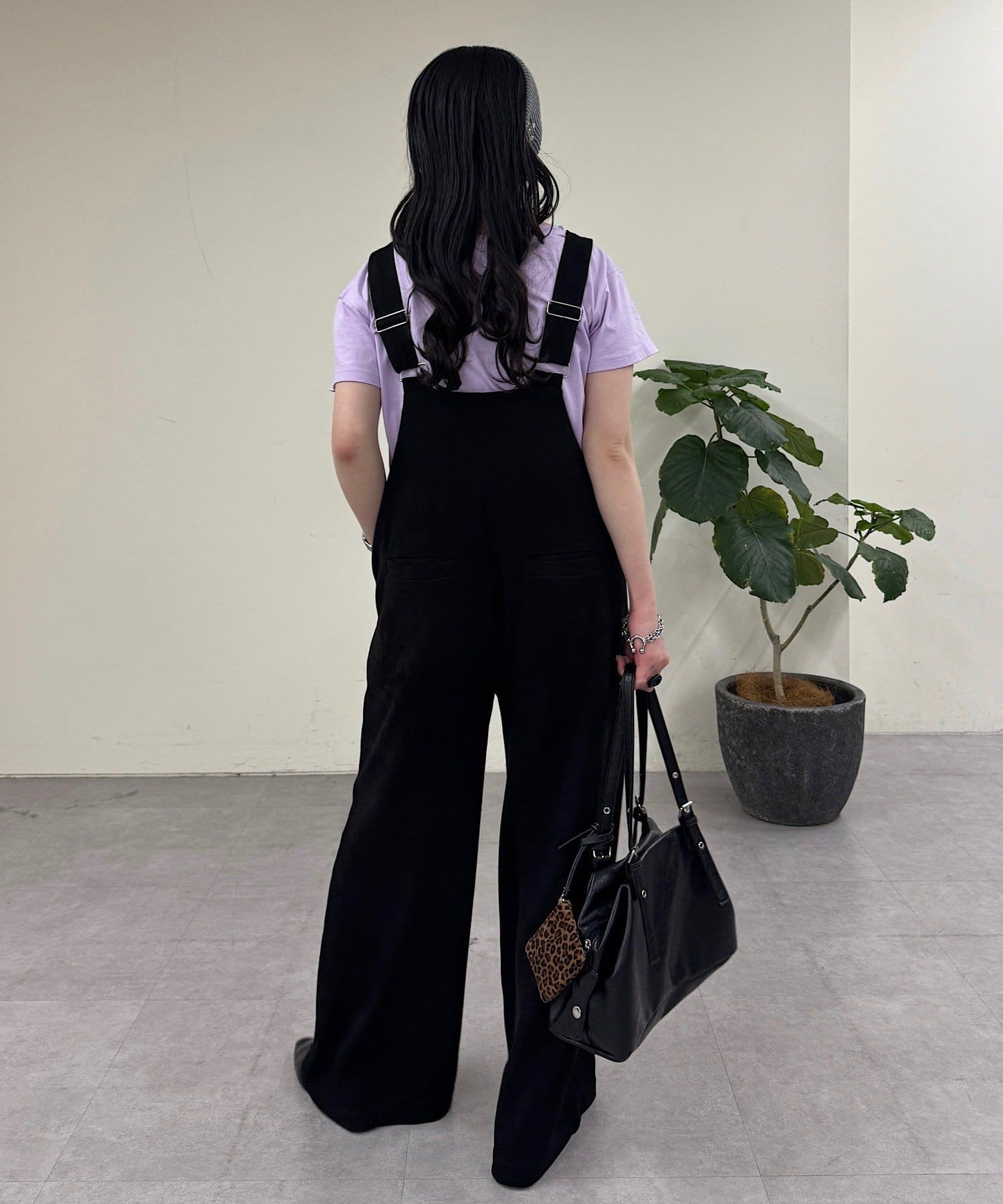 ニュアンスブラックワイドサロペット