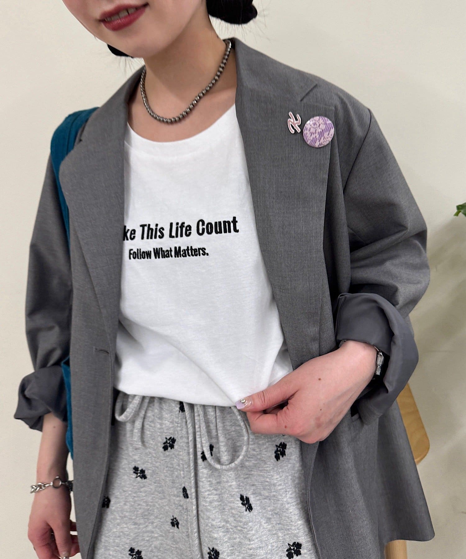 ベーシックに使えるシンプル白Tと、カラーがアクセントになるカラーTデザインの組み合わせ。