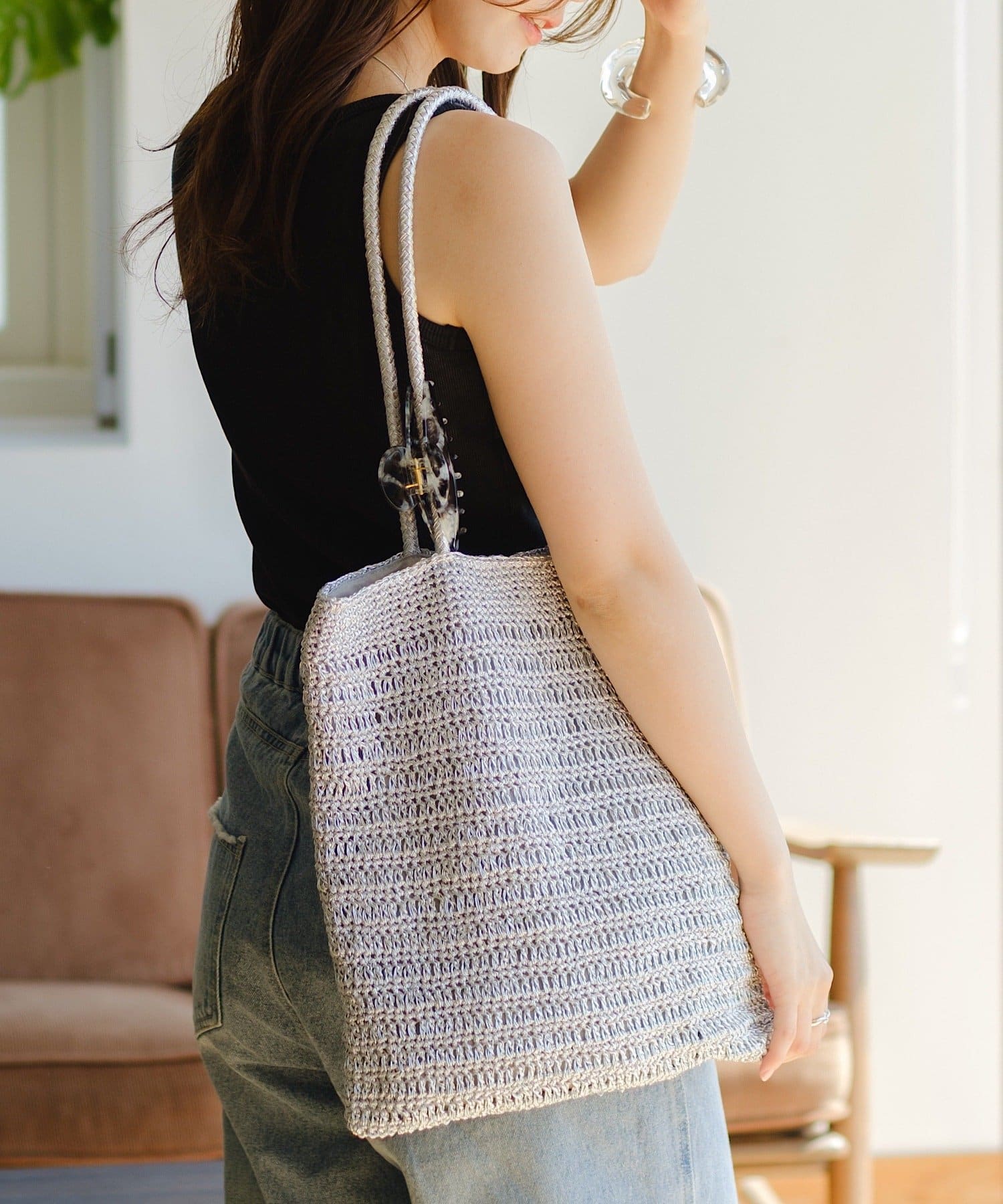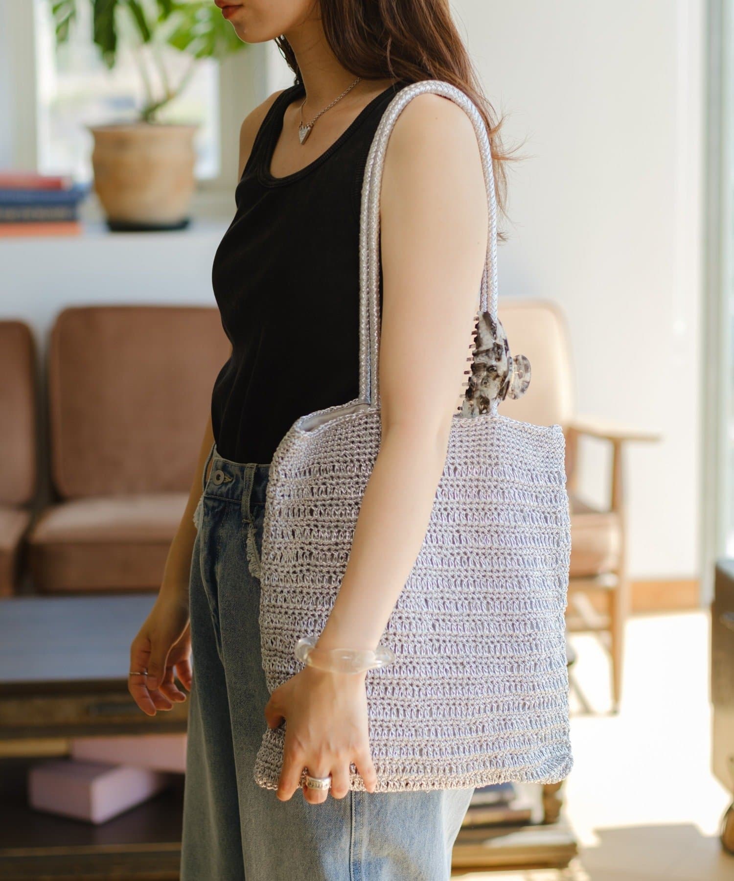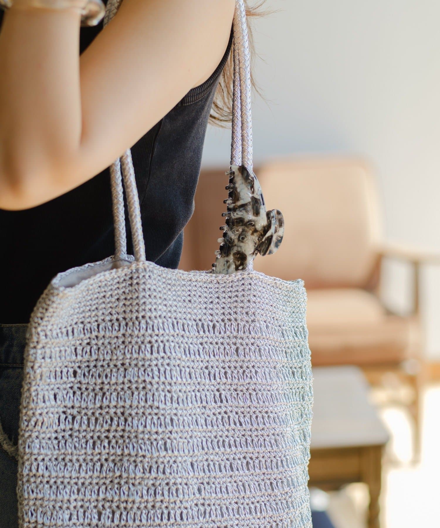 ラメ糸を編み込んだ、大人可愛いクロシェ編みトートバッグ