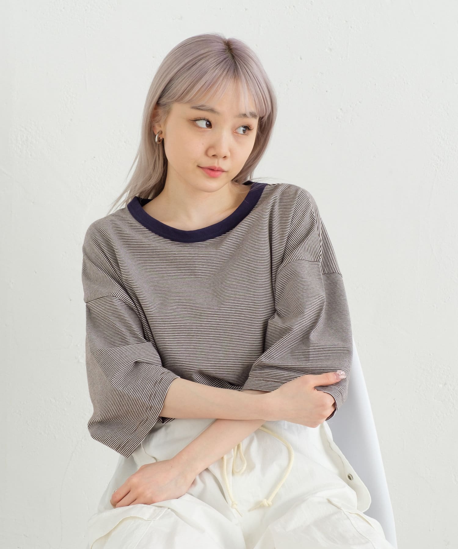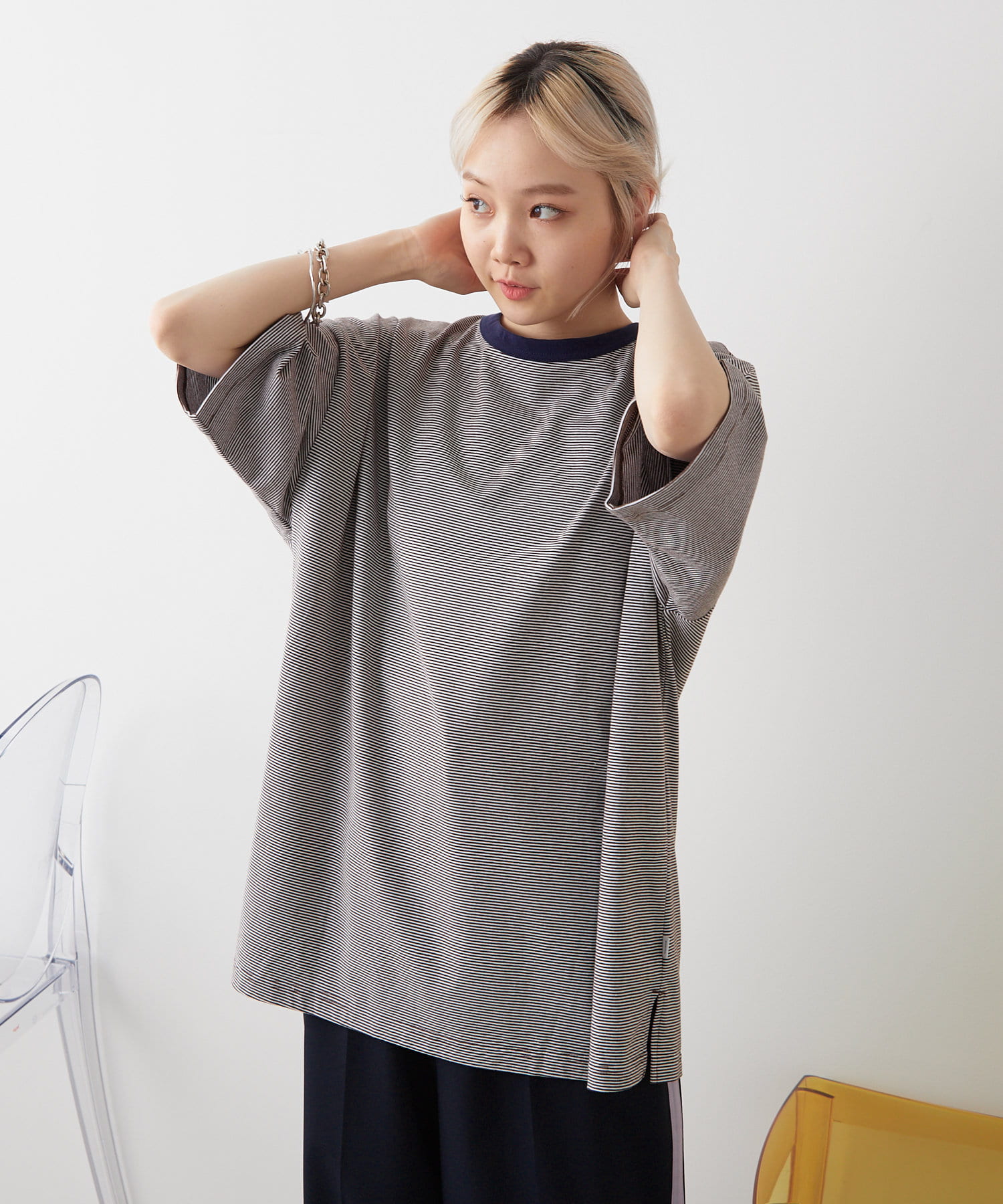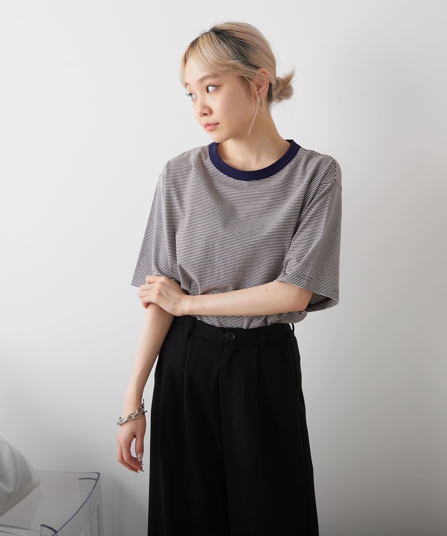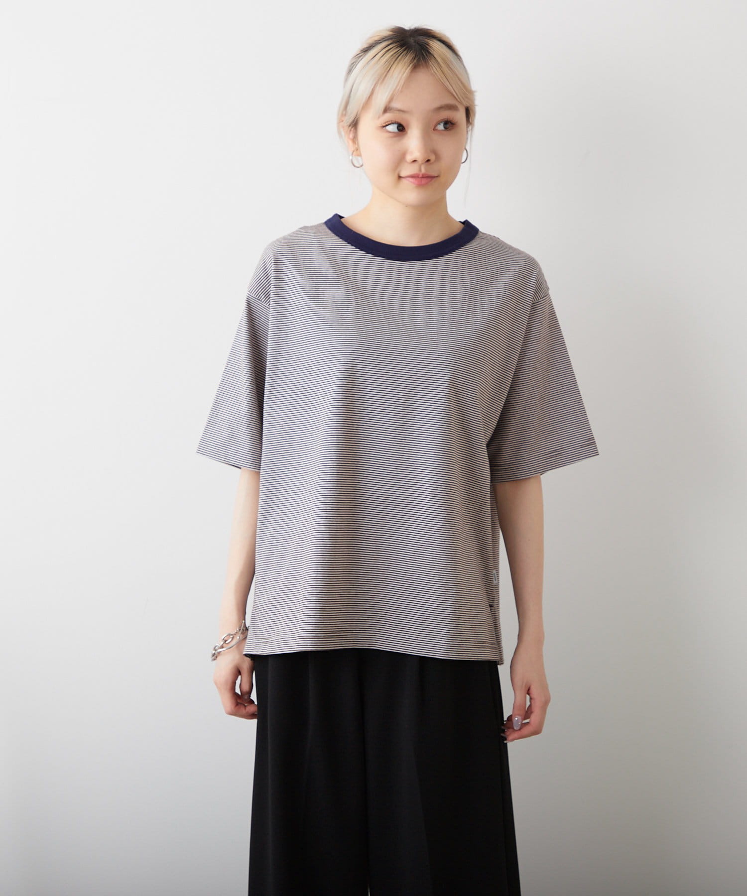 【WHIMSIC/新色追加】COLOR RIB BORDER T-SHIRT