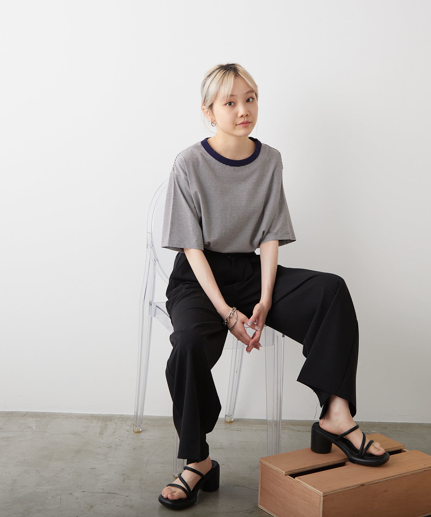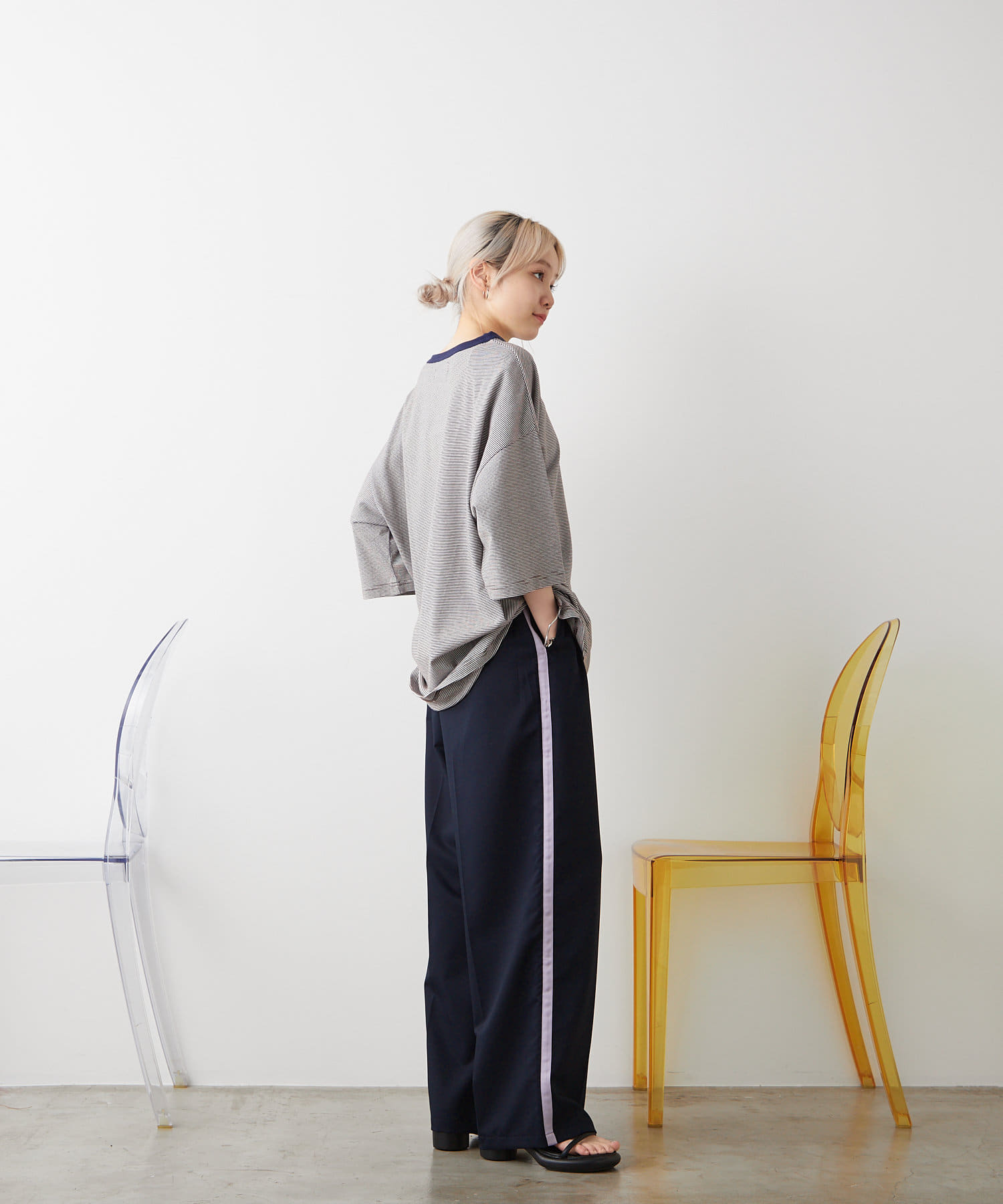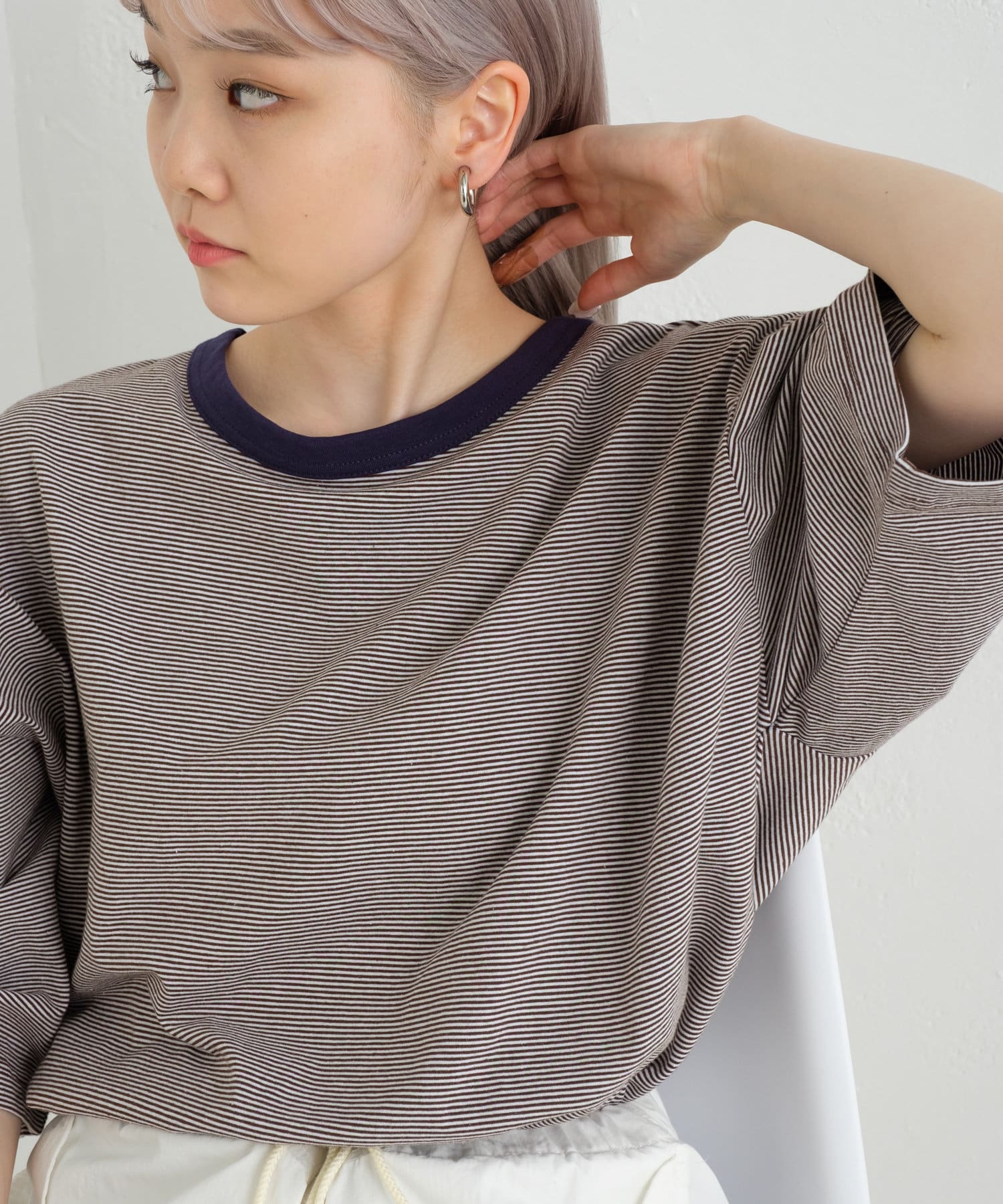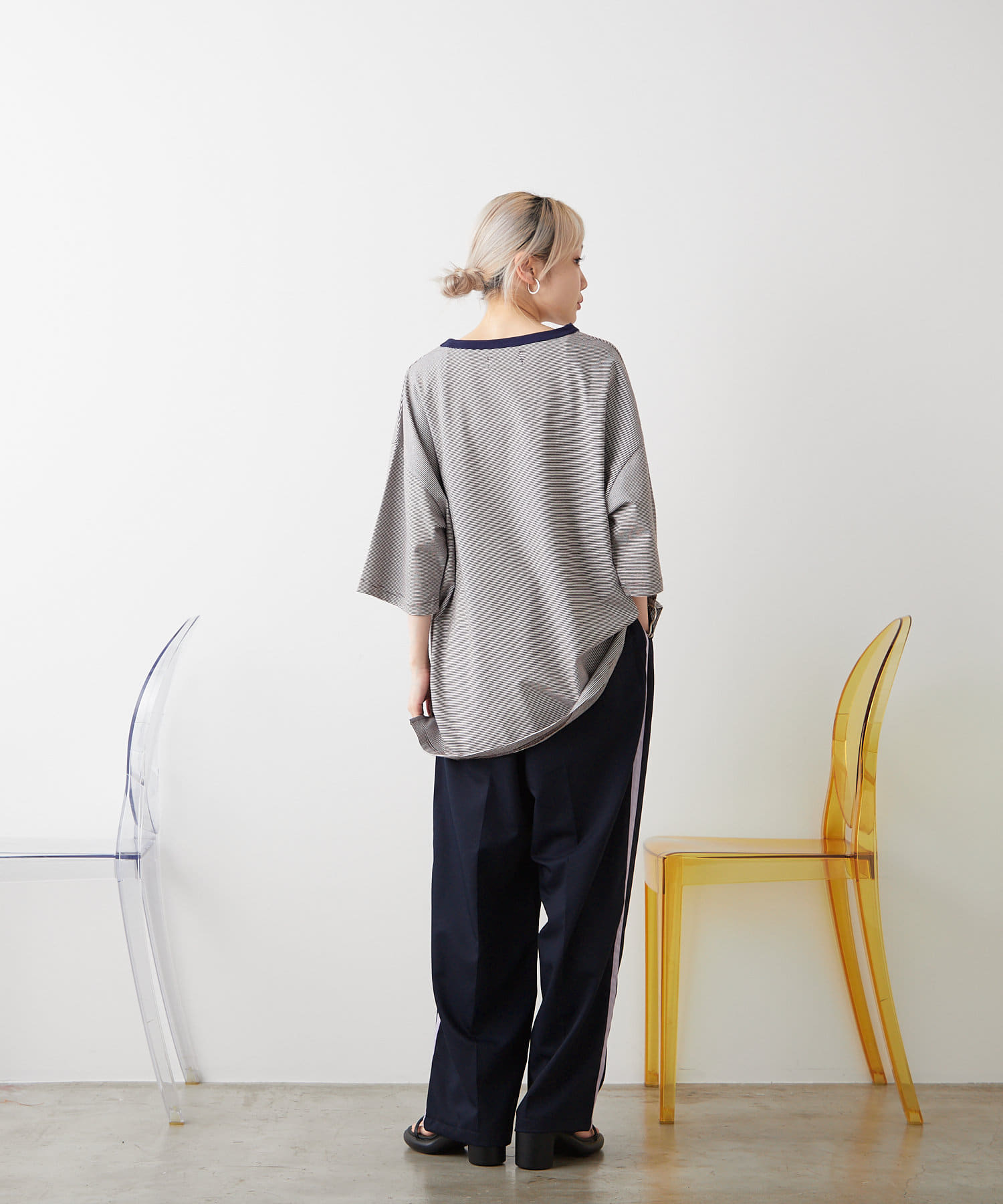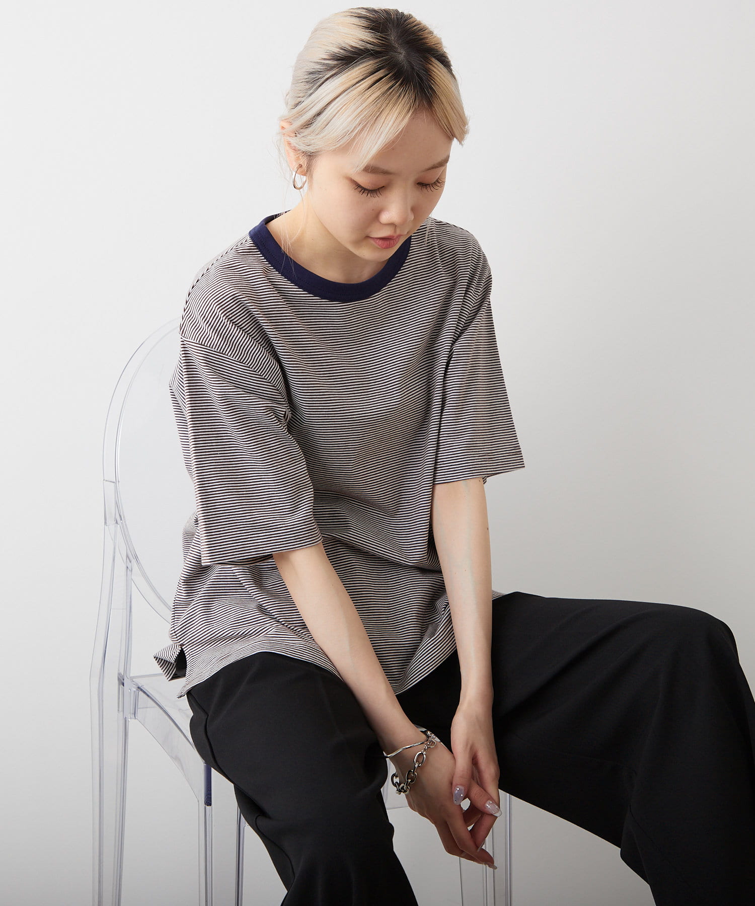 【WHIMSIC/新色追加】COLOR RIB BORDER T-SHIRT
