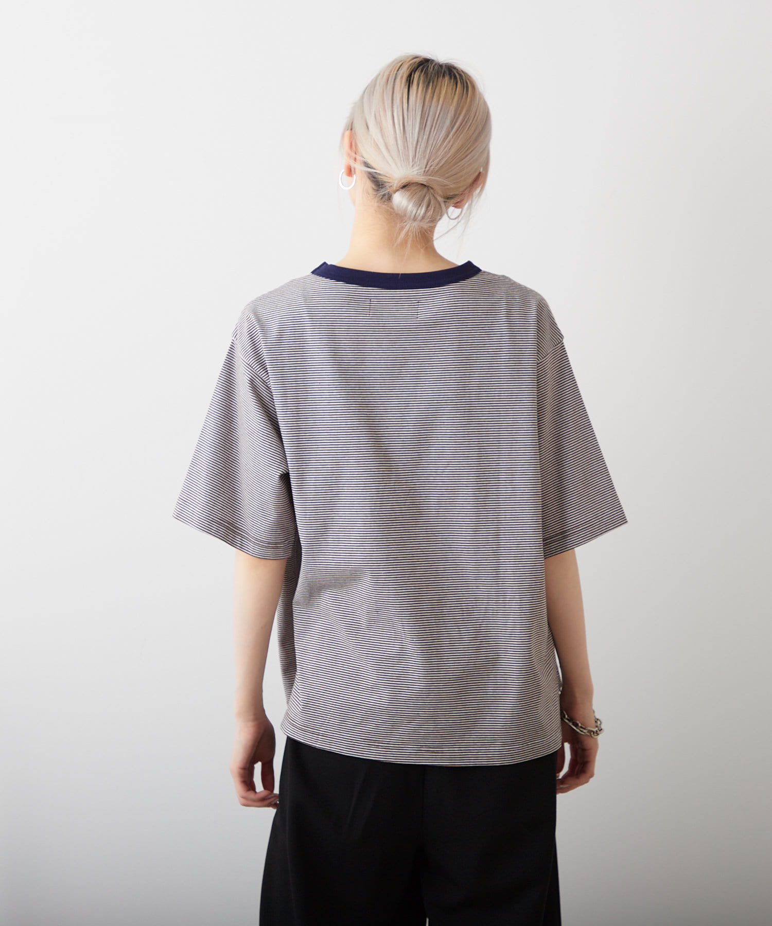 適度な厚みと肌触りの良いコットン生地を使用し、リブとボディーカラーの配色バランスがとれたマイクロボーダーTシャツです。
