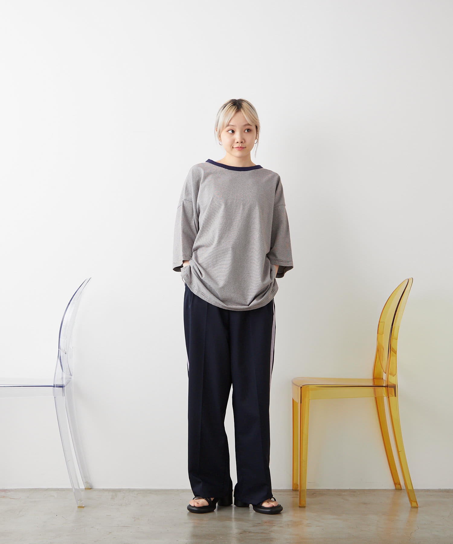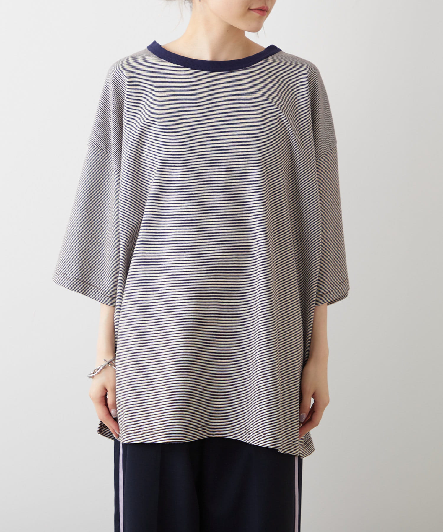 細いボーダーは子供っぽく見えずシンプル思考の方にもおすすめ。