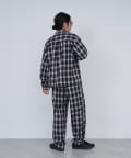 モノトーンのチェック柄がシンプルながらもアクセントになり、カジュアルからきれいめまで幅広いスタイルに合わせやすいデザインです。