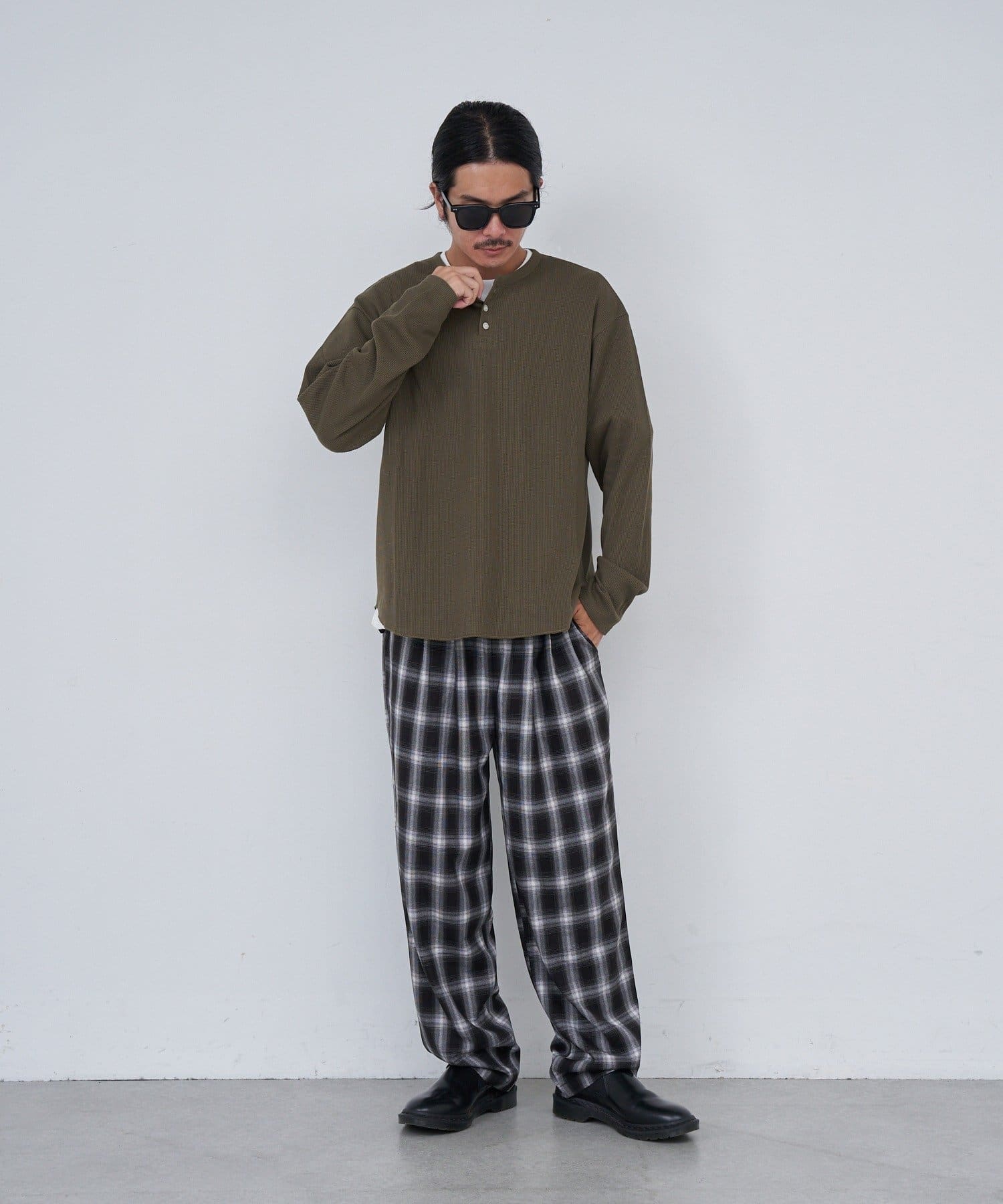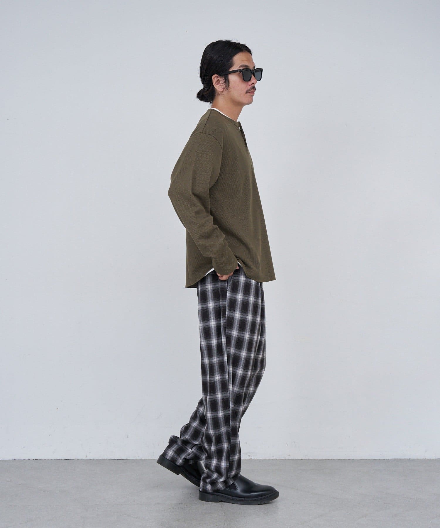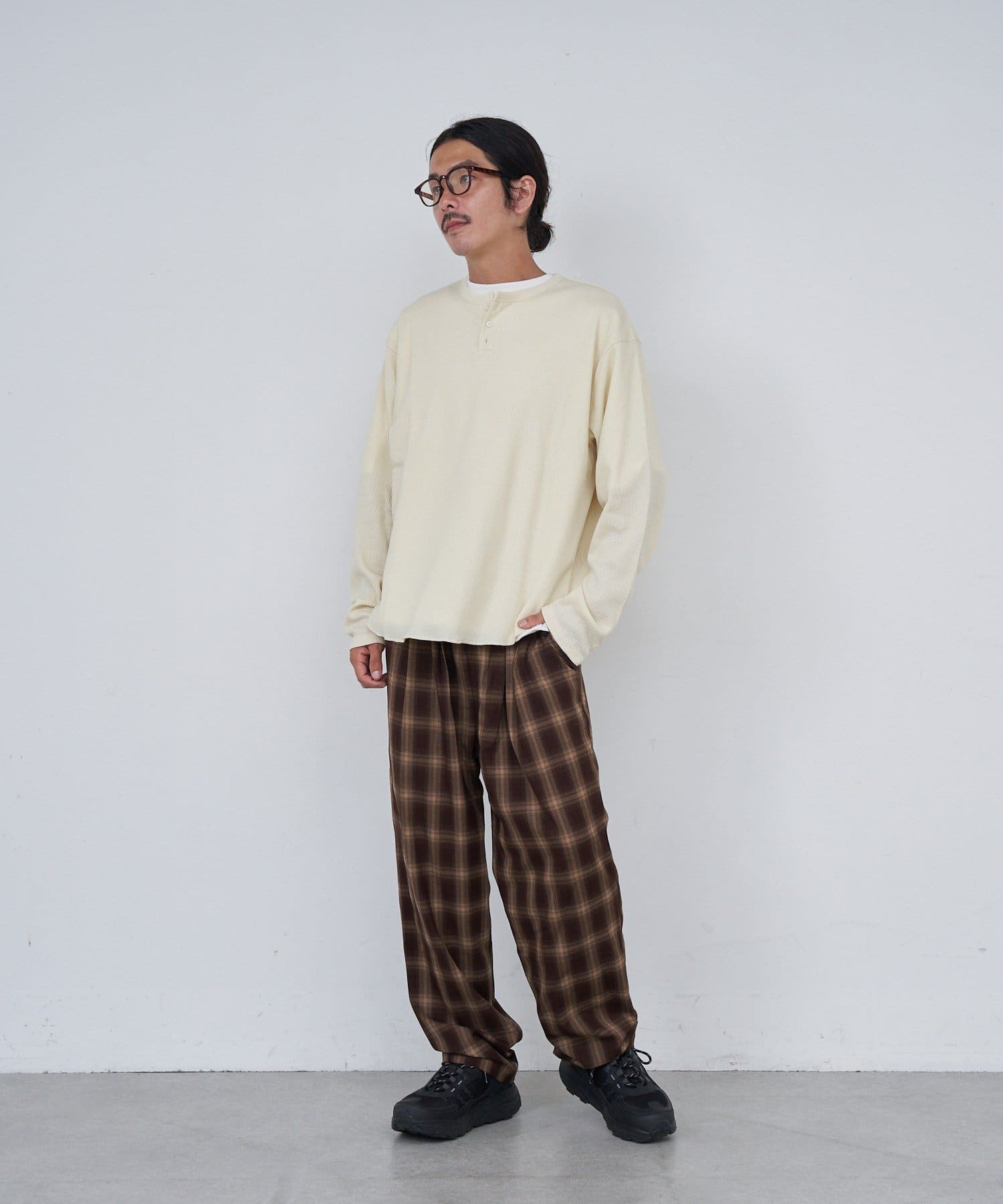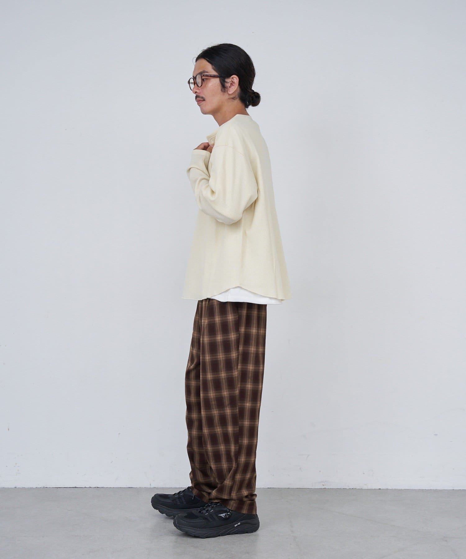 柔らかな素材感でリラックスした履き心地が特徴のイージーパンツ。