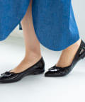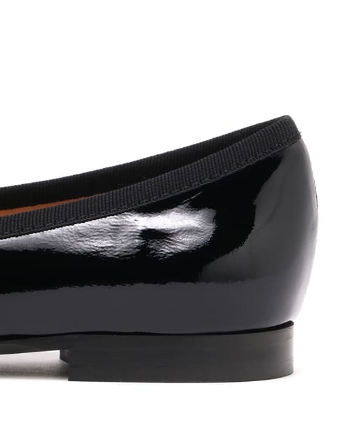 光沢感のある上質なレザーの高級感たっぷりに仕上げたフェミニンなバレエシューズです。